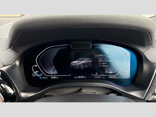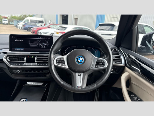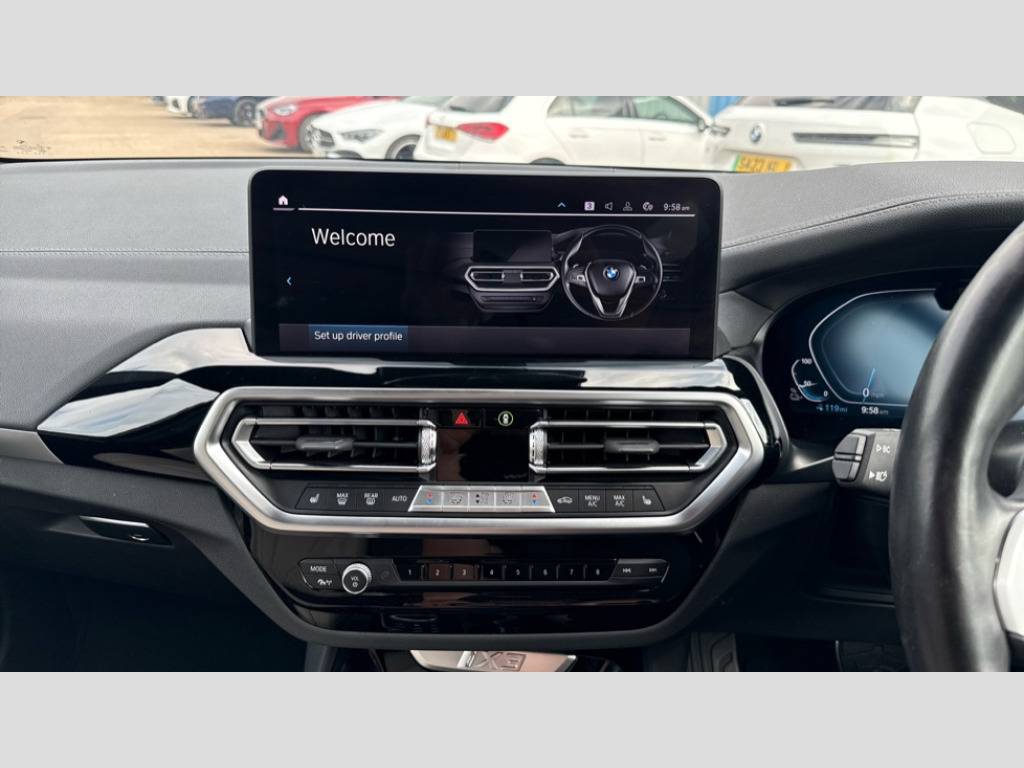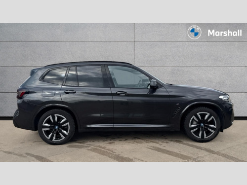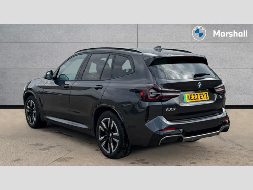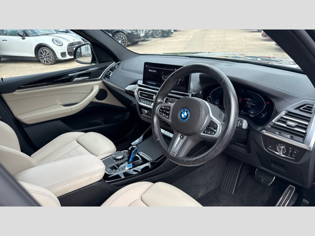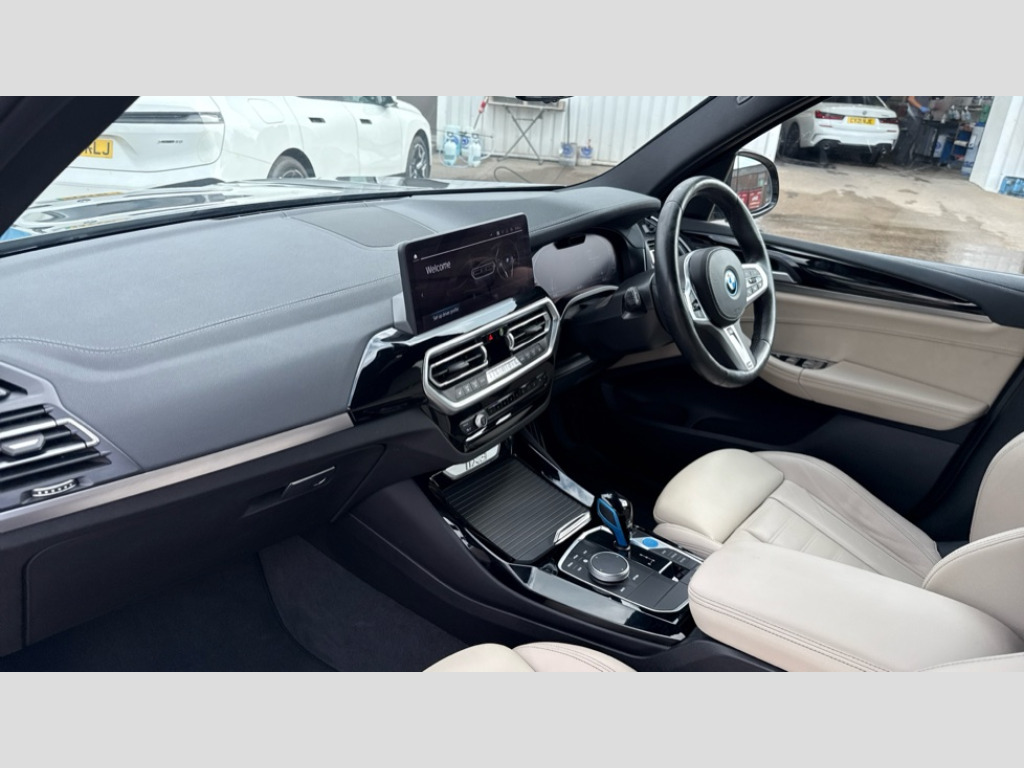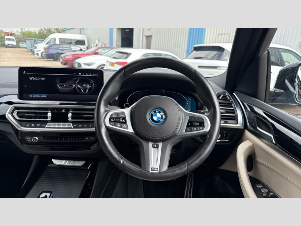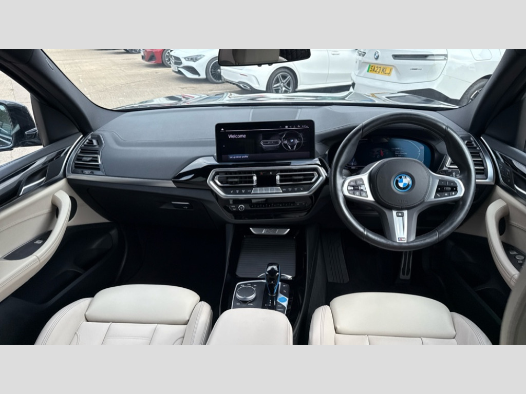BMW Ix3 210kW M Sport 80kWh 5dr Auto Active guard plus incl speed limit assist, lane departure warning with steering impulse and front collision warning with brake intervention, Apple car play and Android auto, Attentiveness assist, Automatic tailgate operation with remote opening and closing by key, opening distance adjustable with iDrive controller, BMW Live Cockpit Professional with 12.3" instrument display + 12.3" high resolution centre display nav function and Intelligent Voice Assistant, BMW Online services, BMW Teleservices, Brake pad wear indicator, Check control system, Condition based service - BMW service history, electronic service booklet, integrated owner's handbook, Cruise control with brake function + speed limiter, Driving experience switch, Enhanced bluetooth with wireless charging, Front/rear Parking distance control, Language version English, Lateral parking aid, Parking assistant, PAS, Personal Profile, Reversing assistant, Reversing camera, Servotronic system, Start/stop button in blue, Wi-Fi hotspot, Double joint spring strut front axle, eDrive exterior sound, Mode 3 charging cable 22kW, Multiple control arm rear axle, Safety battery terminal clamp, 2x USB sockets in front, DAB radio, Stereo speaker system with 6 speakers, Air breathers with BMW i logo, Automatic headlights, Blue ring around BMW logos, BMW i badge on the kidney grille, BMW Individual high gloss shadow line with extended contents, Body colour door handles, Body coloured bumpers, Chrome kidney frame, Dynamic brake lights, Electric windows with trap release and convenient opening/closing feature, Exterior mirror housing finished in body colour, Exterior mirrors electrically adjustable, foldable, heated with memory, auto-dimming drivers side and aspherical on passengers side, Follow me home headlight function, Front and rear bumper system with replaceable deformation elements, Full LED rear lights, Green tinted heat protection glazing glass, Headlight beam throw control, Heated washer jets, High beam assistant, High gloss black shadow line roof rails, High gloss shadowline exterior trim, Integrated direction indicators, LED third brake light, M aerodynamic exterior, M badging on the front side (left and right), M design rear apron with high-gloss black inlays with Frozen grey trim panel, M Sport entry door sill strips, M Sport front bumper with iX3 specific design with blue contents, Metallic paint, Mirror base in black matt, Model logo on left tailgate, Model specific design elements - Frozen grey decorative elements and pearl chrome decorative strip, Panoramic glass sunroof, two parts, electric actuation, sliding function, wind deflector, sun protection with floating headliner, Rain sensor and automatic driving lights control, Rear diffuser in Blue, Rear side wing doors, Rear wiper, Reversing light, Sun protection glass, Visible VIN plate, Welcome lighting, 12V power socket in front centre console, 2 cupholders in front centre console, 3 zone automatic air conditioning, 40:20:40 split folding 3 bench rear seats in 2nd row, 6 pre-defined selectable light designs in various colours with contour and ambient lighting, Ambient centre stack lighting, Ambient instrument panel lighting, Ambient light design projected onto the left and right entering and exiting area, Anthracite headlining, Blue accent around the logo on the steering wheel, Blue accent on the gear selector, Centre console storage tray, Contour lighting front and rear door trim panel, Driver and front passenger heated seats, Driver seat backrest width adjustment, Driver/passenger sunvisors with ticket holders + vanity mirrors, Floor mats in velour, Front and rear ambient footwell lighting, Front and rear door pockets with bottle holders, Front and rear headrests, Front armrest integrated in door trim with centre console includes storage compartment, Front Sports electric seats with Driver's side electric backrest width adjustment and memory, Glove compartment, Heated steering wheel, Isofix rear child seat preparation, Lashing eyelets in luggage compartment, LED ambient lighting, Luggage compartment lighting, Luggage net, M sport leather steering wheel, Presetting of ambient lighting in BMW iblue, Rear centre armrest with 2 cupholders, Seat backrest adjustment for rear seat, Single front passenger seat, Vernasca leather upholstery, Connected pro pack - iX3, Driving assistant professional package - iX3, Extended storage pack - iX3, Interior and exterior mirror pack - iX3, ABS/EBD, Active protection, Airbags - driver and front passenger, BMW emergency call, Brake energy regeneration, Child proof locking system in rear door, Cornering brake control (CBC), Crash sensor - Activation of airbags, hazard warning lights, battery safety cut-off and interior lighting + deactivation of fuel pump, Driver and passenger side airbags, DSTC-Dynamic Stability and Traction Control, Electromechanical parking brake, Front and rear brake discs with interior ventilation, Head airbags for first and second row seats, Recuperation system, Side impact protection, Three point seatbelts to all seats with front and outer rear pyrotechnic belt tensioners and seat belt force limiters, Two tone horn, Tyre pressure monitoring system, Warning triangle, Alarm system with emergency power siren, Alarm system with interruption of battery voltage, acoustic alarm, activation of hazard warning lights, Alarm system with tilt sensor, monitoring doors, bonnet interior and tailgate, Central locking switch for all doors, fuel filler cap and luggage compartment, Electronic vehicle immobiliser, LED to indicate anti-theft alarm is active, Aluminium rhombicle with pearl chrome interior trim, Galvanic embellisher for controls, Interior trim finishers black high gloss with highlight trim finishers pearl chrome, Sensatec dashboard, Sensatec instrument panel, 19" Aerodynamic alloy wheels in bicolour style 842, Tyre repair kit (including Tyre sealant and 12V Compressor)