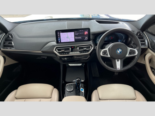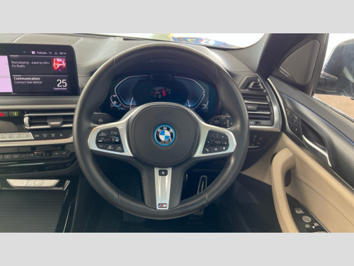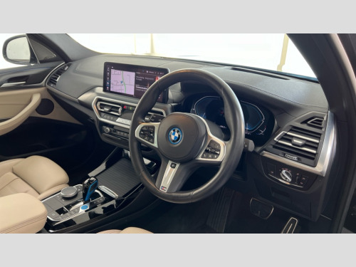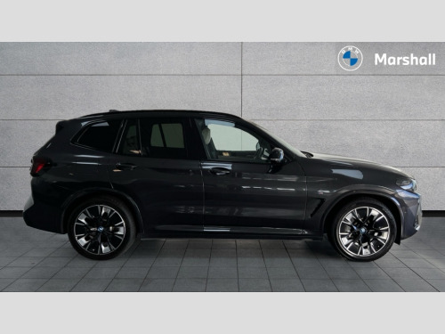 BMW Ix3 210kW M Sport Pro 80kWh 5dr Auto Active guard plus incl speed limit assist, lane departure warning with steering impulse and front collision warning with brake intervention, Apple car play and Android auto, Attentiveness assist, Automatic tailgate operation with remote opening and closing by key, opening distance adjustable with iDrive controller, BMW Drive recorder, BMW gesture control, BMW iDrive, BMW Live Cockpit Professional with 12.3" instrument display + 12.3" high resolution centre display nav function and Intelligent Voice Assistant, BMW Online services, BMW Teleservices, Brake pad wear indicator, Check control system, Comfort access system with smart opener, Condition based service - BMW service history, electronic service booklet, integrated owner's handbook, ConnectedDrive Services, Cruise control with brake function + speed limiter, Driving experience switch, Enhanced bluetooth with wireless charging, Front/rear Parking distance control, Head up Display, Language version English, Lateral parking aid, Parking assistant plus with 360 degree surround view camera system and remote 3D view, PAS, Personal Profile, Reversing assistant, Run flat indicator, Servotronic system, Start/stop button in blue, Wi-Fi hotspot, Widescreen display, Double joint spring strut front axle, eDrive exterior sound, Gear selector switch with toggle operation, Mode 2 flexible charger, Mode 3 charging cable 22kW, Multiple control arm rear axle, Safety battery terminal clamp, 2x USB sockets in front, BMW iconic sound electric, DAB radio, Harman/Kardon surround sound audio system, Acoustic front side windows, Acoustic windscreen, Air breathers with BMW i logo, Automatic headlights, Black kidney frame, Blue ring around BMW logos, BMW i badge on the kidney grille, BMW Individual high gloss shadow line with extended contents, Body colour door handles, Body coloured bumpers, Dynamic brake lights, Electric windows with trap release and convenient opening/closing feature, Extended high gloss shadow line exterior trim, Exterior mirror housing finished in body colour, Exterior mirrors electrically adjustable, foldable, heated with memory, auto-dimming drivers side and aspherical on passengers side, Follow me home headlight function, Front and rear bumper system with replaceable deformation elements, Full LED rear lights, Green tinted heat protection glazing glass, Headlight beam throw control, Heated washer jets, High beam assistant, High gloss black shadow line roof rails, High gloss shadowline exterior trim, Integrated direction indicators, LED third brake light, M aerodynamic exterior, M badging on the front side (left and right), M design rear apron with high-gloss black inlays with Frozen grey trim panel, M Sport entry door sill strips, M Sport front bumper with iX3 specific design with blue contents, Metallic paint, Mirror base in black matt, Model logo on left tailgate, Model specific design elements - Frozen grey decorative elements and pearl chrome decorative strip, Panoramic glass sunroof, two parts, electric actuation, sliding function, wind deflector, sun protection with floating headliner, Rain sensor and automatic driving lights control, Rear diffuser in Blue, Rear side wing doors, Rear wiper, Reversing light, Sun protection glass, Visible VIN plate, Welcome lighting, 12V power socket in front centre console, 2 cupholders in front centre console, 3 zone automatic air conditioning, 4 way electrically adjustable lumbar support for drivers seat, 40:20:40 split folding 3 bench rear seats in 2nd row, 6 pre-defined selectable light designs in various colours with contour and ambient lighting, Ambient centre stack lighting, Ambient instrument panel lighting, Ambient light design projected onto the left and right entering and exiting area, Anthracite headlining, Blue accent around the logo on the steering wheel, Centre console storage tray, Contour lighting front and rear door trim panel, Driver and front passenger heated seats, Driver seat backrest width adjustment, Driver/passenger sunvisors with ticket holders + vanity mirrors, Floor mats in velour, Front and rear ambient footwell lighting, Front and rear door pockets with bottle holders, Front and rear headrests, Front armrest integrated in door trim with centre console includes storage compartment, Front Sports electric seats with Driver's side electric backrest width adjustment and memory, Glove compartment, Heated steering wheel, Height and length steering column adjustment, Isofix rear child seat preparation, Lashing eyelets in luggage compartment, LED ambient lighting, Luggage compartment lighting, Luggage net, M sport leather steering wheel, Multifunctional sport seats for driver and front passenger, Presetting of ambient lighting in BMW iblue, Rear centre armrest with 2 cupholders, Seat backrest adjustment for rear seat, Single front passenger seat, Vernasca leather upholstery, Connected pro pack - iX3, Driving assistant professional package - iX3, Extended storage pack - iX3, Interior and exterior mirror pack - iX3, Non-smoker package, ABS/EBD, Active protection, Airbags - driver and front passenger, BMW emergency call, Brake energy regeneration, Child proof locking system in rear door, Cornering brake control (CBC), Crash sensor - Activation of airbags, hazard warning lights, battery safety cut-off and interior lighting + deactivation of fuel pump, Driver and passenger side airbags, DSTC-Dynamic Stability and Traction Control, Electromechanical parking brake, Front and rear brake discs with interior ventilation, Head airbags for first and second row seats, M Sport seat belts, Recuperation system, Side impact protection, Three point seatbelts to all seats with front and outer rear pyrotechnic belt tensioners and seat belt force limiters, Two tone horn, Tyre pressure monitoring system, Warning triangle, Alarm system with emergency power siren, Alarm system with interruption of battery voltage, acoustic alarm, activation of hazard warning li