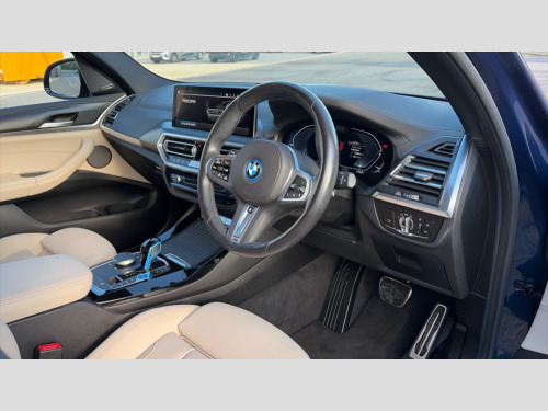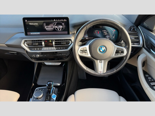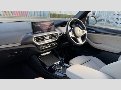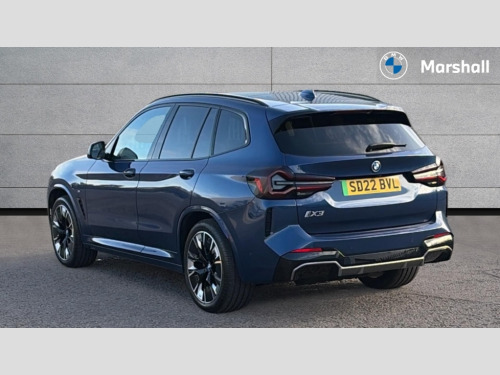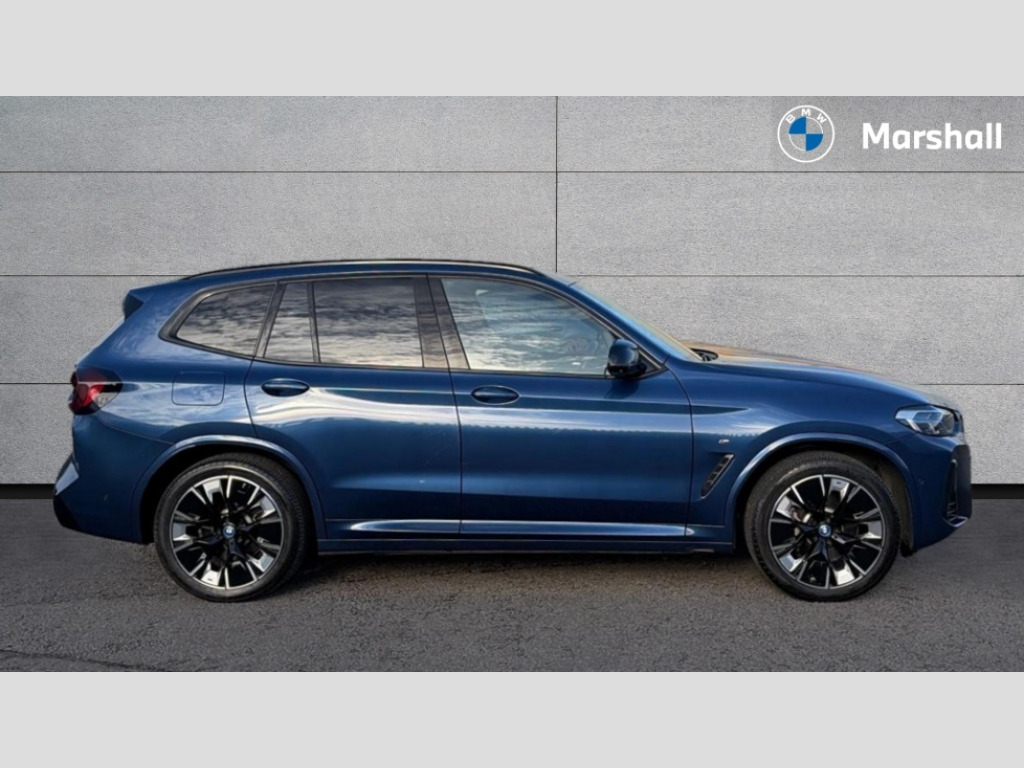 BMW Ix3 210kW M Sport Pro 80kWh 5dr Auto Apple car play and Android auto, Attentiveness assist, BMW Drive recorder, BMW gesture control, BMW Live Cockpit Professional with 12.3" instrument display + 12.3" high resolution centre display nav function and Intelligent Voice Assistant, BMW Online services, BMW Teleservices, Brake pad wear indicator, Check control system, Condition based service - BMW service history, electronic service booklet, integrated owner's handbook, Enhanced bluetooth with wireless charging, Front/rear Parking distance control, Head up Display, Lateral parking aid, Parking assistant plus with 360 degree surround view camera system and remote 3D view, PAS, Personal Profile, Start/stop button in blue, Wi-Fi hotspot, eDrive exterior sound, Mode 3 charging cable 22kW, Safety battery terminal clamp, BMW iconic sound electric, DAB radio, Harman/Kardon surround sound audio system, Acoustic front side windows, Acoustic windscreen, Air breathers with BMW i logo, Black kidney frame, Blue ring around BMW logos, BMW i badge on the kidney grille, BMW Individual high gloss shadow line with extended contents, Body colour door handles, Body coloured bumpers, Extended high gloss shadow line exterior trim, Exterior mirrors electrically adjustable, foldable, heated with memory, auto-dimming drivers side and aspherical on passengers side, Front and rear bumper system with replaceable deformation elements, Full LED rear lights with 3D sculpting, Green tinted heat protection glazing glass, High beam assistant, High gloss black shadow line roof rails, High gloss shadowline exterior trim, Interior rear view electrochromatic mirror with automatic anti dazzle function, LED third brake light, M aerodynamic exterior, M badging on the front side (left and right), M design rear apron with high-gloss black inlays with Frozen grey trim panel, M Sport front bumper with iX3 specific design with blue contents, Metallic paint, Model logo on left tailgate, Model specific design elements - Frozen grey decorative elements and pearl chrome decorative strip, Panoramic glass sunroof, two parts, electric actuation, sliding function, wind deflector, sun protection with floating headliner, Rear diffuser in Blue, Rear side wing doors, Rear wiper, Sun protection glass, Visible VIN plate, Welcome lighting, 12V power socket in front centre console, 3 zone automatic air conditioning, 4 way electrically adjustable lumbar support for drivers seat, 40:20:40 split folding 3 bench rear seats in 2nd row, Ambient lighting, Anthracite headlining, Blue accent around the logo on the steering wheel, Blue accent on the gear selector, Deletion lumbar support/width adjustment passenger side, Driver and front passenger heated seats, Driver/passenger sunvisors with ticket holders + vanity mirrors, Front and rear headrests, Front Sports electric seats with Driver's side electric backrest width adjustment and memory, Heated steering wheel, Isofix rear child seat preparation, Luggage compartment lighting, M sport leather steering wheel, Passenger side electric backrest width adjustment, Rear centre armrest with 2 cupholders, Seat backrest adjustment for rear seat, Single front passenger seat, Vernasca leather upholstery, Connected pro pack - iX3, Driving assistant professional package - iX3, Extended storage pack - iX3, ABS/EBD, Active protection, Airbags - driver and front passenger, BMW emergency call, Brake energy regeneration, Child proof locking system in rear door, Cornering brake control (CBC), Crash sensor - Activation of airbags, hazard warning lights, battery safety cut-off and interior lighting + deactivation of fuel pump, Driver and passenger side airbags, DSTC-Dynamic Stability and Traction Control, Front and rear brake discs with interior ventilation, Head airbags for first and second row seats, M Sport seat belts, Side impact protection, Three point seatbelts to all seats with front and outer rear pyrotechnic belt tensioners and seat belt force limiters, Two tone horn, Tyre pressure monitoring system, Warning triangle, Central locking switch for all doors, fuel filler cap and luggage compartment, Comfort access system, Aluminium rhombicle with pearl chrome interior trim, Galvanic embellisher for controls, Sensatec dashboard, Sensatec instrument panel, 20" M aerodynamic alloy wheels in M bicolour style 890, Tyre repair kit (including Tyre sealant and 12V Compressor)