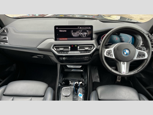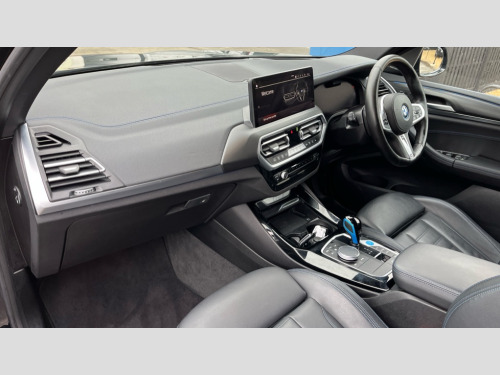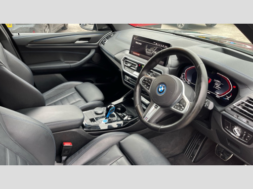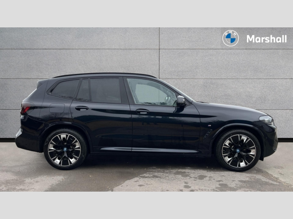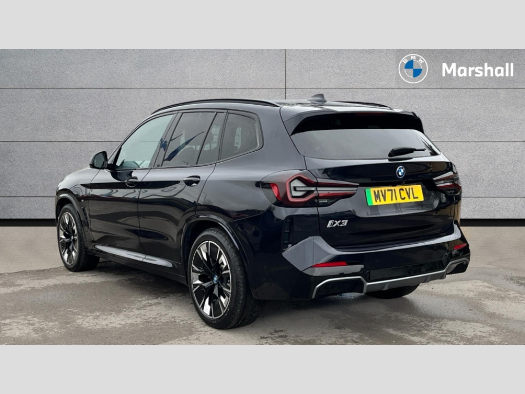 BMW Ix3 210kW M Sport Pro 80kWh 5dr Auto Apple car play and Android auto, Attentiveness assist, BMW Drive recorder, BMW gesture control, BMW Live Cockpit Professional with 12.3" instrument display + 12.3" high resolution centre display nav function and Intelligent Voice Assistant, BMW Online services, BMW Teleservices, Brake pad wear indicator, Check control system, Condition based service - BMW service history, electronic service booklet, integrated owner's handbook, Enhanced bluetooth with wireless charging, Front/rear Parking distance control, Head up Display, Lateral parking aid, Parking assistant plus with 360 degree surround view camera system and remote 3D view, PAS, Personal Profile, Start/stop button in blue, Wi-Fi hotspot, eDrive exterior sound, Mode 3 charging cable 22kW, Safety battery terminal clamp, BMW iconic sound electric, DAB radio, Harman/Kardon surround sound audio system, Acoustic front side windows, Acoustic windscreen, Air breathers with BMW i logo, Black kidney frame, Blue ring around BMW logos, BMW i badge on the kidney grille, BMW Individual high gloss shadow line with extended contents, Body colour door handles, Body coloured bumpers, Extended high gloss shadow line exterior trim, Exterior mirrors electrically adjustable, foldable, heated with memory, auto-dimming drivers side and aspherical on passengers side, Front and rear bumper system with replaceable deformation elements, Full LED rear lights with 3D sculpting, Green tinted heat protection glazing glass, High beam assistant, High gloss black shadow line roof rails, High gloss shadowline exterior trim, Interior rear view electrochromatic mirror with automatic anti dazzle function, LED third brake light, M aerodynamic exterior, M badging on the front side (left and right), M design rear apron with high-gloss black inlays with Frozen grey trim panel, M Sport front bumper with iX3 specific design with blue contents, Metallic paint, Model logo on left tailgate, Model specific design elements - Frozen grey decorative elements and pearl chrome decorative strip, Panoramic glass sunroof, two parts, electric actuation, sliding function, wind deflector, sun protection with floating headliner, Rear diffuser in Blue, Rear side wing doors, Rear wiper, Sun protection glass, Visible VIN plate, Welcome lighting, 12V power socket in front centre console, 3 zone automatic air conditioning, 4 way electrically adjustable lumbar support for drivers seat, 40:20:40 split folding 3 bench rear seats in 2nd row, Ambient lighting, Anthracite headlining, Blue accent around the logo on the steering wheel, Blue accent on the gear selector, Deletion lumbar support/width adjustment passenger side, Driver and front passenger heated seats, Driver/passenger sunvisors with ticket holders + vanity mirrors, Front and rear headrests, Front Sports electric seats with Driver's side electric backrest width adjustment and memory, Heated steering wheel, Isofix rear child seat preparation, Luggage compartment lighting, M sport leather steering wheel, Passenger side electric backrest width adjustment, Rear centre armrest with 2 cupholders, Seat backrest adjustment for rear seat, Single front passenger seat, Vernasca leather upholstery, Connected pro pack - iX3, Driving assistant professional package - iX3, Extended storage pack - iX3, ABS/EBD, Active protection, Airbags - driver and front passenger, BMW emergency call, Brake energy regeneration, Child proof locking system in rear door, Cornering brake control (CBC), Crash sensor - Activation of airbags, hazard warning lights, battery safety cut-off and interior lighting + deactivation of fuel pump, Driver and passenger side airbags, DSTC-Dynamic Stability and Traction Control, Front and rear brake discs with interior ventilation, Head airbags for first and second row seats, M Sport seat belts, Side impact protection, Three point seatbelts to all seats with front and outer rear pyrotechnic belt tensioners and seat belt force limiters, Two tone horn, Tyre pressure monitoring system, Warning triangle, Central locking switch for all doors, fuel filler cap and luggage compartment, Comfort access system, Aluminium rhombicle with pearl chrome interior trim, Galvanic embellisher for controls, Sensatec dashboard, Sensatec instrument panel, 20" M aerodynamic alloy wheels in M bicolour style 890, Tyre repair kit (including Tyre sealant and 12V Compressor)