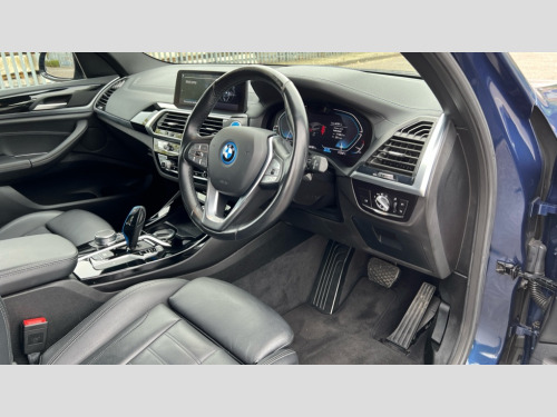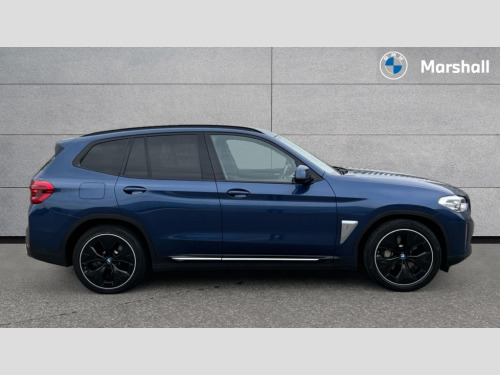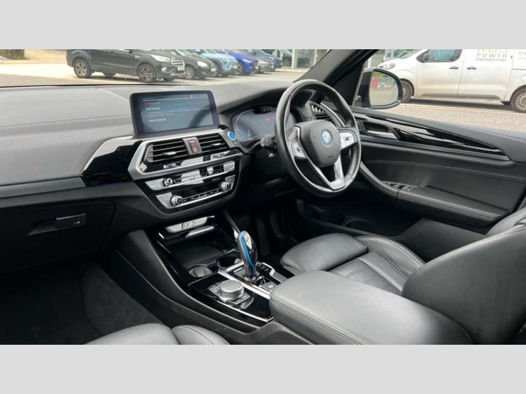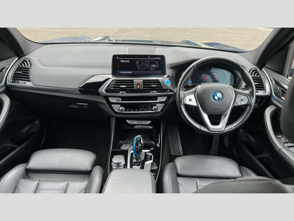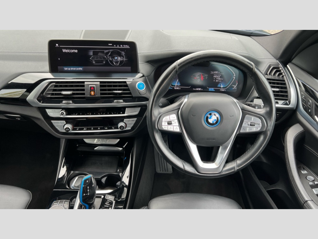 BMW Ix3 210kW Premier Edition 80kWh 5dr Auto BMW Live Cockpit Professional sat nav system including 10.25" high resolution display and Intelligent Voice Assistant, BMW Online services, BMW Teleservices, Enhanced bluetooth with wireless charging, Front/rear Parking distance control, Parking assistant, PAS, Reversing assist camera, Wifi hotspot preparation, eDrive exterior sound, Mode 3 charging cable 22kW, BMW iconic sound electric, DAB radio, Adaptive LED Headlights with Low and high beam headlights in Bi-LED, LED daytime running lights in corona ring style and LED Indicators, BMW Individual high gloss shadow line with extended contents, Body coloured bumpers, Exterior mirrors - electrically folding with anti-dazzle, High gloss black shadow line roof rails, High gloss shadowline exterior trim, Interior rear view electrochromatic mirror with automatic anti dazzle function, Metallic paint, Model specific design elements - Frozen grey decorative elements and pearl chrome decorative strip, Panoramic glass sunroof, two parts, electric actuation, sliding function, wind deflector, sun protection with floating headliner, Sun protection glass, 3 zone automatic air conditioning, Ambient lighting, Anthracite headlining, Driver and front passenger heated seats, Electric adjustable seats with memory function, Front and rear headrests, Front sports seats, Seat backrest adjustment for rear seat, Sport leather steering wheel, Through loading system with 40/20/40 split folding rear seat, Vernasca leather upholstery, Driving assistant professional pack - iX3, Extended storage pack - iX3, ABS/EBD, Active protection, Automatic Stability Control (ASC), BMW emergency call, Three 3 point rear seatbelts, Tyre pressure monitoring system, Aluminium fine cutting interior trim with pearl chrome highlight trim finishers, Galvanic embellisher for controls, Sensatec instrument panel, 20" Aero jet black alloy wheels - Style 843, BMW mobility system