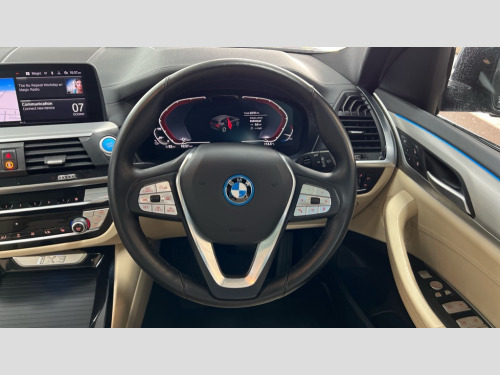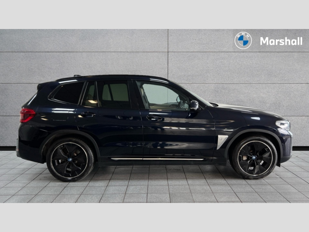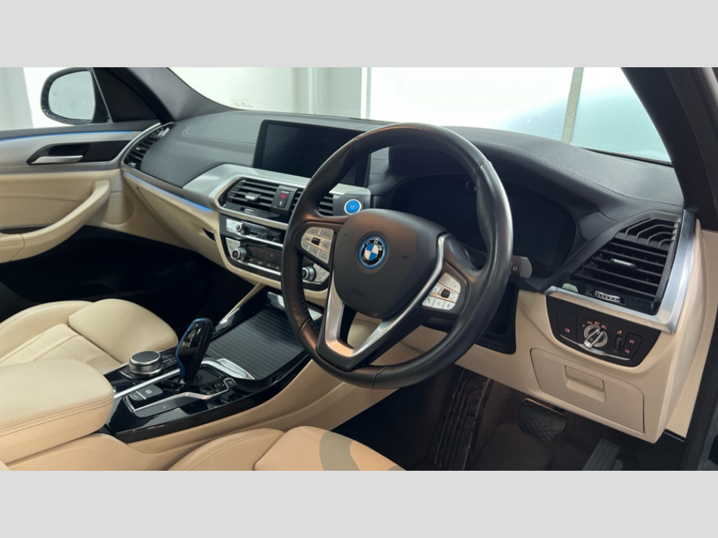 BMW Ix3 210kW Premier Edition 80kWh 5dr Auto BMW Live Cockpit Professional sat nav system including 10.25" high resolution display and Intelligent Voice Assistant, BMW Online services, BMW Teleservices, Enhanced bluetooth with wireless charging, Front/rear Parking distance control, Parking assistant, PAS, Reversing assist camera, Wifi hotspot preparation, eDrive exterior sound, Mode 3 charging cable 22kW, BMW iconic sound electric, DAB radio, Adaptive LED Headlights with Low and high beam headlights in Bi-LED, LED daytime running lights in corona ring style and LED Indicators, BMW Individual high gloss shadow line with extended contents, Body coloured bumpers, Exterior mirrors - electrically folding with anti-dazzle, High gloss black shadow line roof rails, High gloss shadowline exterior trim, Interior rear view electrochromatic mirror with automatic anti dazzle function, Metallic paint, Model specific design elements - Frozen grey decorative elements and pearl chrome decorative strip, Panoramic glass sunroof, two parts, electric actuation, sliding function, wind deflector, sun protection with floating headliner, Sun protection glass, 3 zone automatic air conditioning, Ambient lighting, Anthracite headlining, Driver and front passenger heated seats, Electric adjustable seats with memory function, Front and rear headrests, Front sports seats, Seat backrest adjustment for rear seat, Sport leather steering wheel, Through loading system with 40/20/40 split folding rear seat, Vernasca leather upholstery, Driving assistant professional pack - iX3, Extended storage pack - iX3, ABS/EBD, Active protection, Automatic Stability Control (ASC), BMW emergency call, Three 3 point rear seatbelts, Tyre pressure monitoring system, Aluminium fine cutting interior trim with pearl chrome highlight trim finishers, Galvanic embellisher for controls, Sensatec instrument panel, 20" Aero jet black alloy wheels - Style 843, BMW mobility system