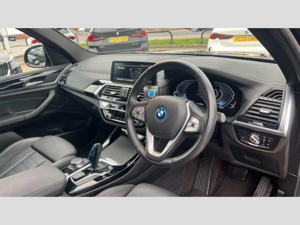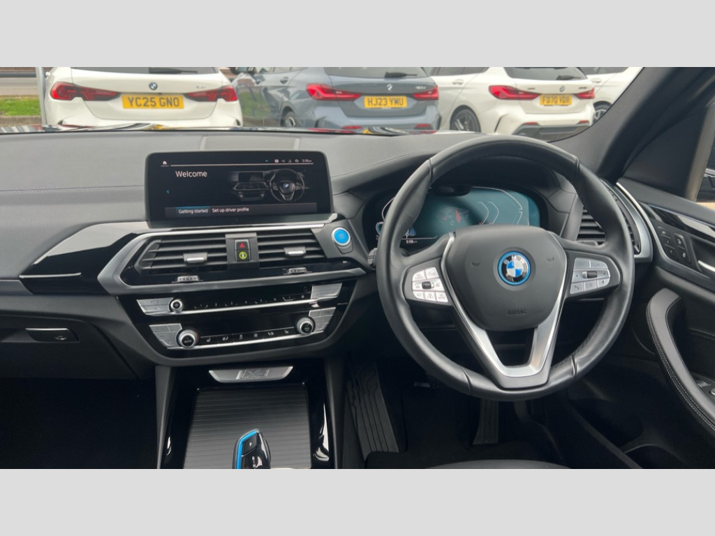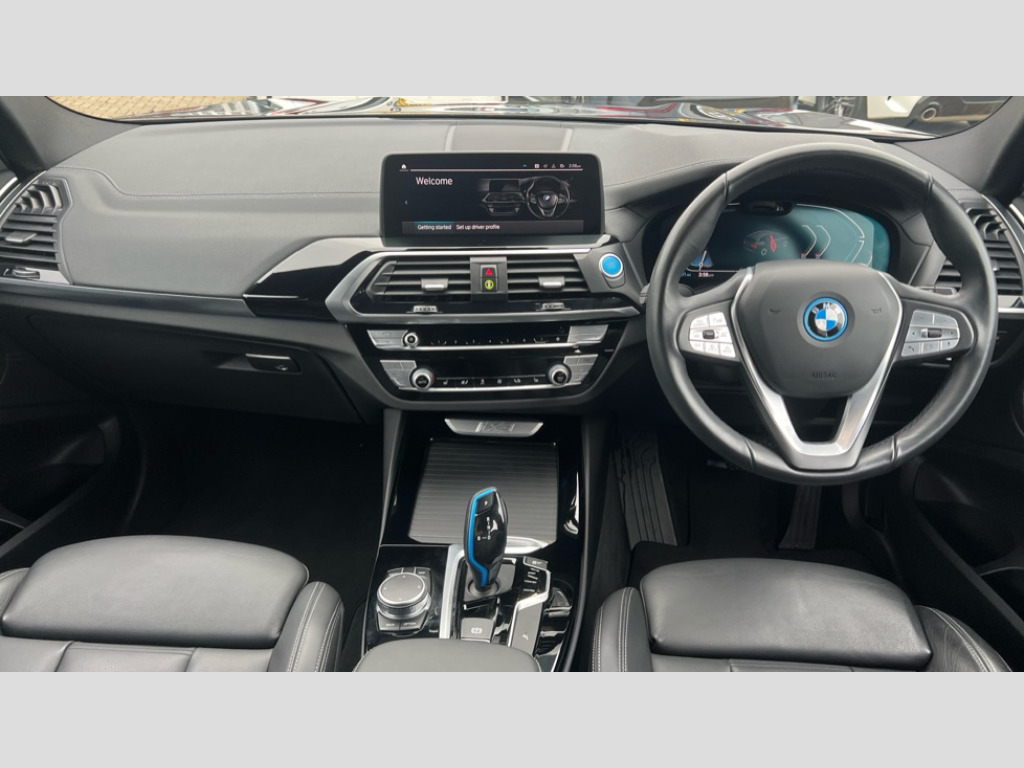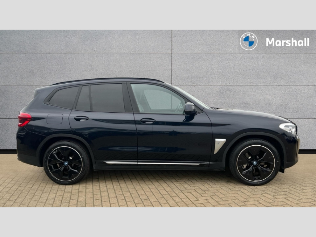 BMW Ix3 210kW Premier Edition 80kWh 5dr Auto BMW Live Cockpit Professional sat nav system including 10.25" high resolution display and Intelligent Voice Assistant, BMW Online services, BMW Teleservices, Enhanced bluetooth with wireless charging, Front/rear Parking distance control, Parking assistant, PAS, Reversing assist camera, Wifi hotspot preparation, eDrive exterior sound, Mode 3 charging cable 22kW, BMW iconic sound electric, DAB radio, Adaptive LED Headlights with Low and high beam headlights in Bi-LED, LED daytime running lights in corona ring style and LED Indicators, BMW Individual high gloss shadow line with extended contents, Body coloured bumpers, Exterior mirrors - electrically folding with anti-dazzle, High gloss black shadow line roof rails, High gloss shadowline exterior trim, Interior rear view electrochromatic mirror with automatic anti dazzle function, Metallic paint, Model specific design elements - Frozen grey decorative elements and pearl chrome decorative strip, Panoramic glass sunroof, two parts, electric actuation, sliding function, wind deflector, sun protection with floating headliner, Sun protection glass, 3 zone automatic air conditioning, Ambient lighting, Anthracite headlining, Driver and front passenger heated seats, Electric adjustable seats with memory function, Front and rear headrests, Front sports seats, Seat backrest adjustment for rear seat, Sport leather steering wheel, Through loading system with 40/20/40 split folding rear seat, Vernasca leather upholstery, Driving assistant professional pack - iX3, Extended storage pack - iX3, ABS/EBD, Active protection, Automatic Stability Control (ASC), BMW emergency call, Three 3 point rear seatbelts, Tyre pressure monitoring system, Aluminium fine cutting interior trim with pearl chrome highlight trim finishers, Galvanic embellisher for controls, Sensatec instrument panel, 20" Aero jet black alloy wheels - Style 843, BMW mobility system