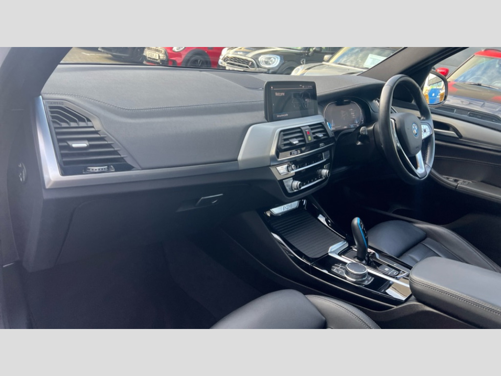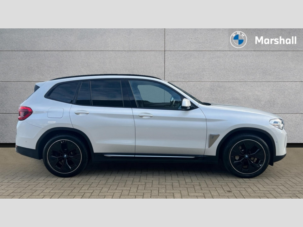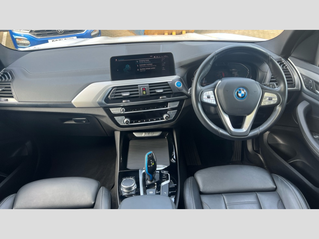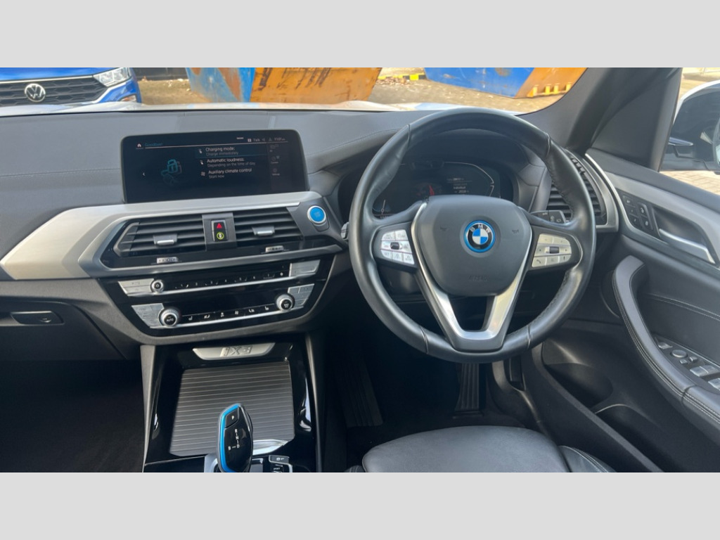 BMW Ix3 210kW Premier Edition 80kWh 5dr Auto BMW Live Cockpit Professional sat nav system including 10.25" high resolution display and Intelligent Voice Assistant, BMW Online services, BMW Teleservices, Enhanced bluetooth with wireless charging, Front/rear Parking distance control, Parking assistant, PAS, Reversing assist camera, Wifi hotspot preparation, eDrive exterior sound, Mode 3 charging cable 22kW, BMW iconic sound electric, DAB radio, Adaptive LED Headlights with Low and high beam headlights in Bi-LED, LED daytime running lights in corona ring style and LED Indicators, BMW Individual high gloss shadow line with extended contents, Body coloured bumpers, Exterior mirrors - electrically folding with anti-dazzle, High gloss black shadow line roof rails, High gloss shadowline exterior trim, Interior rear view electrochromatic mirror with automatic anti dazzle function, Metallic paint, Model specific design elements - Frozen grey decorative elements and pearl chrome decorative strip, Panoramic glass sunroof, two parts, electric actuation, sliding function, wind deflector, sun protection with floating headliner, Sun protection glass, 3 zone automatic air conditioning, Ambient lighting, Anthracite headlining, Driver and front passenger heated seats, Electric adjustable seats with memory function, Front and rear headrests, Front sports seats, Seat backrest adjustment for rear seat, Sport leather steering wheel, Through loading system with 40/20/40 split folding rear seat, Vernasca leather upholstery, Driving assistant professional pack - iX3, Extended storage pack - iX3, ABS/EBD, Active protection, Automatic Stability Control (ASC), BMW emergency call, Three 3 point rear seatbelts, Tyre pressure monitoring system, Aluminium fine cutting interior trim with pearl chrome highlight trim finishers, Galvanic embellisher for controls, Sensatec instrument panel, 20" Aero jet black alloy wheels - Style 843, BMW mobility system