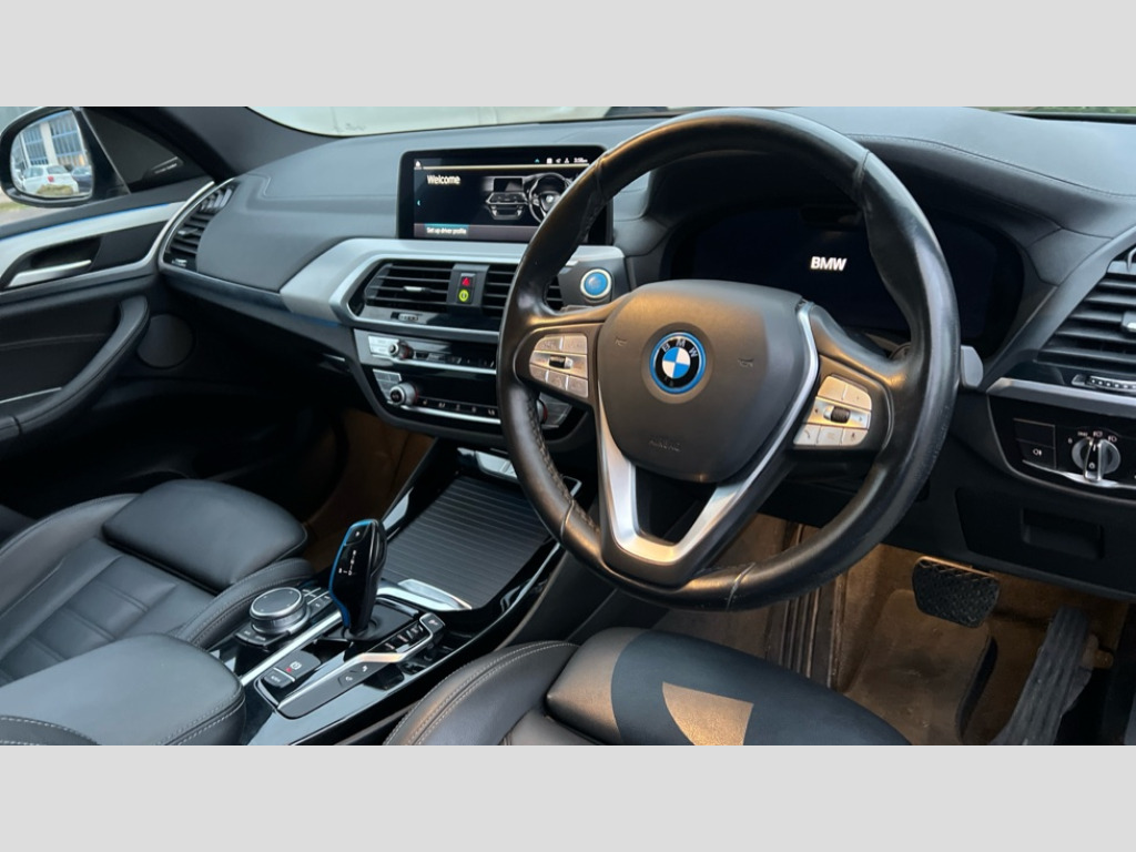 BMW Ix3 210kW Premier Edition Pro 80kWh 5dr Auto BMW Drive recorder, BMW gesture control, BMW Live Cockpit Professional sat nav system including 10.25" high resolution display and Intelligent Voice Assistant, BMW Online services, BMW Teleservices, Comfort access system with smart opener, Enhanced bluetooth with wireless charging, Front/rear Parking distance control, Head up Display, Parking assistant, Parking Assistant Plus with 360 degree surround view camera, PAS, Reversing assist camera, Wifi hotspot preparation, eDrive exterior sound, Mode 3 charging cable 22kW, BMW iconic sound electric, DAB radio, Acoustic glazing, BMW icon adaptive LED headlights, BMW Individual high gloss shadow line with extended contents, Body coloured bumpers, Exterior mirrors - electrically folding with anti-dazzle, High beam assistant, High gloss black shadow line roof rails, High gloss shadowline exterior trim, Interior rear view electrochromatic mirror with automatic anti dazzle function, Metallic paint, Model specific design elements - Frozen grey decorative elements and pearl chrome decorative strip, Panoramic glass sunroof, two parts, electric actuation, sliding function, wind deflector, sun protection with floating headliner, Sun protection glass, 3 zone automatic air conditioning, Ambient lighting, Anthracite headlining, Driver and front passenger heated seats, Driver and front passenger lumbar support, Electric adjustable seats with memory function, Front and rear headrests, Front sports seats, Seat backrest adjustment for rear seat, Sport leather steering wheel, Through loading system with 40/20/40 split folding rear seat, Vernasca leather upholstery, Driving assistant professional pack - iX3, Extended storage pack - iX3, ABS/EBD, Active protection, Automatic Stability Control (ASC), BMW emergency call, Three 3 point rear seatbelts, Tyre pressure monitoring system, Aluminium fine cutting interior trim with pearl chrome highlight trim finishers, Galvanic embellisher for controls, Sensatec instrument panel, 20" Aero jet black alloy wheels - Style 843, BMW mobility system