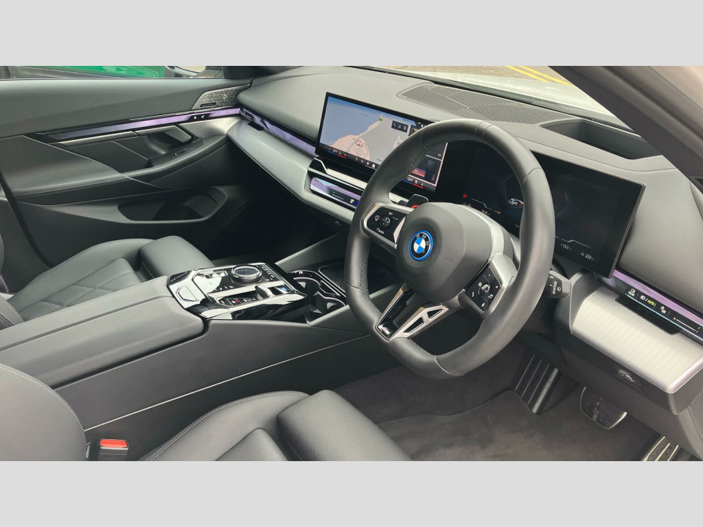 The M Sport Pro trim level enhances the driving experience with the M Carbon Exterior Package and Adaptive LED headlights. Inside, you'll find a choice of premium sound systems, including the Bowers and Wilkins Surround Sound System and the Harman Kardon HiFi Loudspeaker System, ensuring an exceptional audio experience. The Parking Assistant, complete with front and rear sensors and a rear camera, makes manoeuvring effortless. Furthermore, the i5 offers generous boot space, making it a practical choice for everyday use and longer journeys, setting it apart from other vehicles in its class. Heated Steering Wheel, Comfort Access, Travel and Comfort System, Interior Camera, Sun Protection Glass, Parking Assistant Plus, Adaptive LED Headlights, Bowers & Wilkins Surround Sound System, Live Cockpit Pro with Head up Display, BMW Natural Interaction, M Carbon Exterior Styling, Comfort Pack, Technology Pack, Tyre Repair Kit, BMW Iconic Glow, 20" 938 M Star Spoke BiColour Jet Black, BMW Individual Lights Shadow Line, M Sport Brakes with Red Calipers, Alarm System, M Sport Seat Belts, Charging cable Professional (Mode 3), Ambient Lighting, eDrive Exterior Sound, BMW IconicSounds Electric, Dark Silver M accent combined with Alumi, Front Lumbar Support, Heated front seats, Driving Assistant, Active Guard, BMW TeleServices, BMW Emergency Call, BMW Online Services, Connected Package Pro, Storage for wireless charging, Personal eSIM, DAB Radio, Indv. high-gloss shadowline- extended, M Sport Suspension, High-gloss Shadowline Exterior Trim, Anthracite Headlining, COC additional contents, Active Pedestrian Safety, Control E, Additional M Sport Package Pro Content, M Sport exterior parts, M Sport interior parts, M Sport Pro Pack, M Sport Package