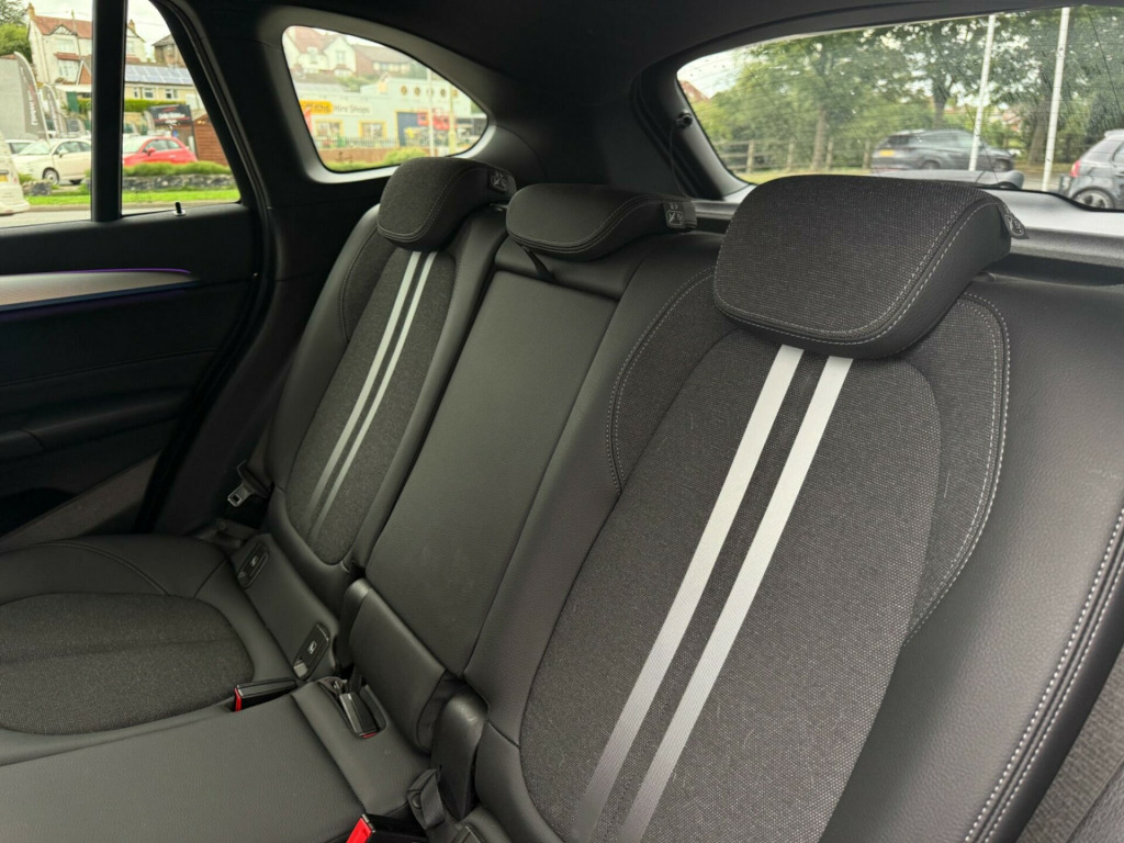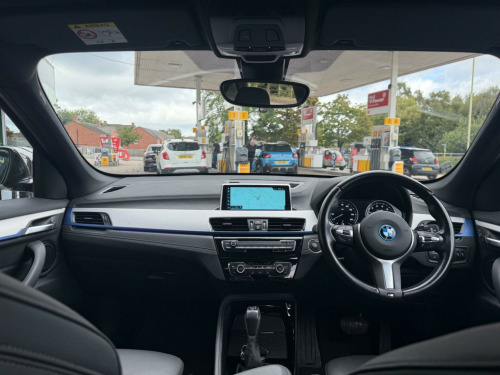 Discover this exceptional 2022 BMW X1 25e M Sport, boasting remarkably low mileage for its year at just 22800 miles. This Four Wheel Drive model features a 1.5L Petrol Plug-in Hybrid engine, adhering to the Euro 6 emission class. Inside, you'll find a host of desirable features including automatic two zone climate control, a rain sensor with automatic headlight activation, and LED headlights for enhanced visibility. Stay connected and entertained with Apple CarPlay and the Bluetooth hands free facility with USB audio interface.The M Sport trim level signifies a higher specification, indicating this X1 offers a more premium and engaging driving experience compared to other similar vehicles. The combination of its efficient plug in hybrid technology, all wheel drive capability, and the sporty M Sport enhancements makes this BMW X1 a compelling choice for those seeking both performance and economy.. 12V Power Socket in Centre Console Front with Blanking Plug, 18in Alloy Wheels - Light M Double Spoke Style - 570 M, 2.4 kW AC Charging, 40-20-40 Manually Split Folding Rear Seat, AC Fast Charge Cable, Active Guard, Aero Curtain, Air Conditioning Automatic with Two-Zone Control, Airbags, Alarm System - Thatcham 1 with Remote Control and Engine Immobiliser, Apple CarPlay, Armrest Front - Free Standing and can be Fixed in Five Positions, Automatic Tailgate, Automatically Dimming Rear View Mirror, BMW ConnectedDrive, BMW ConnectedDrive Online Services, BMW Emergency Call, BMW Navigation, BMW Professional Radio, BMW TeleServices, Battery Safety Cut Off, Bluetooth Hands-Free Facility with USB - USB Type A - 1.5 A Audio Interface, Brake Pad Wear Indicator - Front and Rear, Bumper System Front and Rear - Replaceable Deformation Elements for Impacts Up to 9mph, Central Locking Switch for All Doors - Fuel Filler Cap - Luggage Compartment, Check Control Warning System for Monitoring of Lights and Door-Luggage Compartment Open Warning, Child Proof Locking System - Rear Doors, Child Seat ISOFIX Attachment for the Two Outer Rear Seats and Front Passenger Seat with Anchorage Points, Condition Based Service, Connected eDrive Service, Contrast Stitching on Instrument Panel and Centre Console to Match Seat Upholstery Highlight Stitching, Cruise Control with Brake Function, Cupholders - Two, DAB Digital Radio, DSC - Dynamic Stability Control Plus, Direction Indicator Lights Using LED Technology Located in Headlight Eyebrow, Direction Indicator Side Lights Integrated in Exterior Mirrors, Door Sill Finishers - M Designation - Front, Drive Performance Control with ECO PRO - Comfort and Sport Modes, EDLC - Electronic Differential Lock Control, EPS - Electric Power Steering, Electric Windows, Electrically Operated Parking Brake, Exhaust Tailpipe 90mm - Chrome - Single - Round - Left, Extended Lighting, Extended Storage, Exterior Mirrors - Electrically Folding with Anti Dazzle, Exterior Parts in Body Colour, Exterior Styling Parts, Exterior Trim - High-Gloss Shadowline, First Aid Kit and Warning Triangle, Floor Mats in Anthracite with M Specific Designation, Front Air Inlets in Black Matt with Silver Matt Finisher, Glove Box with Light, Grab Handles - Integrated in Roof Lining x4, Headlining - Anthracite, Heat Protection Glazing with Green Tint, Heated Windscreen Washer Jets, High Level Third Brake Light, Illuminated Charging Socket with Visual Display of Charge Status, Instrument Cluster, Interior Lighting - Front Centre Over Interior Mirror and Rear Centre, Interior Trim - Aluminium Hexagon with Estoril Blue Finisher, Kidney Grille - Chrome with 14 Black Vertical Slats, LED Ambient Lighting in Door Trim, LED Fog Lights - Front, LED Headlights, Lights-On Warning by Audio Warning Signal When Ignition is Switched Off, Locking Wheel Bolts, Luggage Compartment - Light, Luggage Compartment Access via Handle in Number Plate Recess, Luggage Compartment Underfloor Storage, M Aerodynamic Bodystyling, M Logo Designation Chrome - Side, M Sport Package, M Sport Steering Wheel, Mobility Tyre Sealing System, Model Designation, Multifunction Controls for Steering Wheel, OBC - On-Board Computer, Optimal Shift Indicator, PDC - Park Distance Control - Front and Rear, Park Assist, Performance Control, Pre-Conditioning of Interior via BMW Remote App or Setting Time within iDrive Menu, Rain Sensor with Automatic Headlight Activation, Real Time Traffic Information, Rear Fog Light, Rear Seat Headrests - Three, Rear Window Aerial, Rear Window Wiper with Wash-Wipe System, Remote Control Including Integrated Key - 2, Remote Control with Integrated Key with M Specific Highlight, Reversing Light in Rear Light Clusters, Roof Rails - High-Gloss Shadowline, Seat Belt Security Check for Driver and Front Passenger, Seat Heating for Driver and Front Passenger, Servotronic Steering, Shark Fin, Side Armrests - Front and Rear Integrated into Door Trim, Side Impact Protection, Sill Cove.