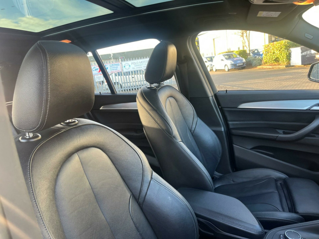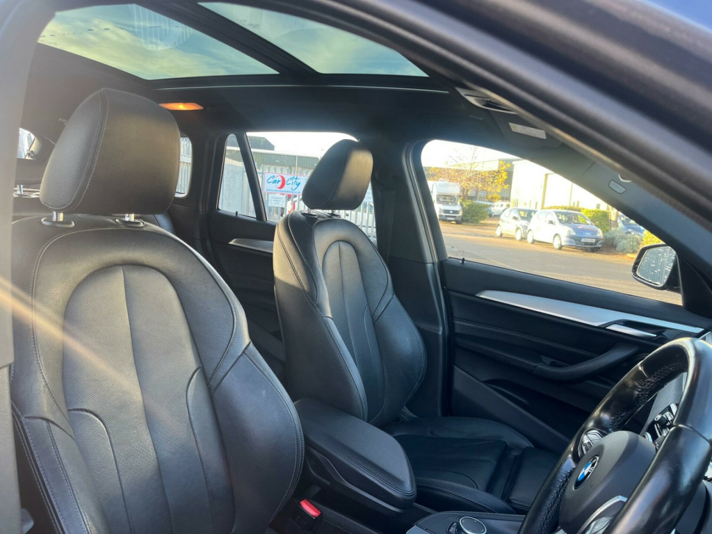 SUPERB CONDITION X1 M SPORT AUTO WITH HIGH SPEC. PANORAMIC GLASS SUNROOF, HEAD UP DISPLAY, FULL LEATHER & HEATED FRONT SEATS, 100,000 MILES FSH & 2 x KEYS, NAVIGATION, DUAL CLIMATE & MUCH MORE w navigation plus package, panoramic glass sunroof, exterior mirrors - electrically folding with anti dazzle, pdc - park distance control - front and rear, reversing assist camera, exterior mirrors - folding, automatically dimming rear view mirror, interior trim - brushed aluminium with pearl chrome finisher, perforated dakota leather - black with grey stitching, extended lighting, 12v power socket - passenger footwell, 12v power socket in centre console front with blanking plug, 12v power socket in centre console rear with blanking plug, 18in alloy wheels - light m double spoke style - 570 m bi-colour, 40-20-40 electrically split folding rear seat with 60-40 manual sliding bench, access to bmw connected plus (12 month subscription from new), active guard, adaptive led headlights with high-beam assistant, aero curtain, air conditioning automatic with two-zone control, airbags, alarm system - thatcham 1 with remote control and engine immobiliser, armrest front - free standing and can be fixed in five positions, automatic tailgate, bmw connecteddrive online services, bmw emergency call, bmw navigation, bmw professional radio with single cd player - with mp3 playback compatibility, bmw teleservices, battery safety cut off, bluetooth hands free with usb audio interface, brake pad wear indicator - front and rear, bumper system front and rear - replaceable deformation elements for impacts up to 9mph, central locking switch - doors - fuel filler cap - luggage compartment, centre console - black - high gloss, check control warning system for monitoring of lights and door-luggage compartment open warning, child proof locking system - rear doors, child seat isofix attachment for the two outer rear seats and front passenger seat with anchorage points, condition based service, contrast stitching on centre console in blue - silver - grey or brown to match seat upholstery, crash sensor - activating central locking release - hazard warning lights - battery safety cut off - interior lighting, cruise control with brake function, cupholders - two, dab digital radio, dsc - dynamic stability control plus, direction indicator lights - clear lenses, direction indicator side lights integrated in exterior mirrors, door sill finishers - m designation - front, drive performance control with eco pro - comfort and sport modes, dynamic brake lights, eco pro mode, edlc - electronic differential lock control, eps - electric power steering, electric windows - front and rear with open-close fingertip control - anti-trap facility and comfort closing function, electrically operated handbrake - parking brake, exhaust tailpipe - chrome - single round 75mm - left, extended storage, exterior mirrors electrically adjustable, exterior parts in body colour, exterior trim - high-gloss shadowline, first aid kit and warning triangle, floor mats - velour, front fog lights, glove box with light, grab handles - integrated in roof lining x4, headlining - anthracite, heat protection glazing with green tint, heated exterior mirrors, heated windscreen washer jets, high level third brake light, incorrect fuelling protection system, instrument cluster, interior lighting - front centre over interior mirror and rear centre, interior trim - aluminium hexagon with estoril blue finisher, kidney grille - extra wide high gloss black vertical slats, led ambient lighting in door trim, lights-on warning by audio warning signal when ignition is switched off, locking wheel bolts, luggage compartment - light, luggage compartment access via handle in number plate recess, luggage compartment underfloor storage, m aerodynamic bodystyling, m logo designation chrome - side, m sport package, m sport steering wheel, m sport suspension, mobility tyre sealing system, model designation, multifunction controls for steering wheel, obc - on-board computer, optimum shift indicator, pdc - park distance control - rear, performance control, personal profile - extended, rain sensor with automatic headlight activation, real time traffic information, rear bumper with dark shadow effect and underbody protection in body colour, rear fog light, rear seat headrests - three, rear window aerial, rear window wiper with wash-wipe system, remote control including integrated key - 2, remote control with integrated key with m specific highlight, reversing light in rear light clusters, roof rails - high-gloss shadowline, seat belt security check for driver and front passenger, seat heating for driver and front passenger, seats - sliding rear bench, servotronic steering, shark fin, side armrests - front and rear integrated into door trim, side impact protection, sport automatic transmission, sport seats - front, stainless steel insert on loading edge in luggage compartment, start-stop button with comfort go keyless engine start and auto start-stop deactivation button, steering-wheel column adjustment - manual, sun visors with vanity mirrors and ticket holder, tpms - tyre pressure monitoring system, three-point seat belts - all seats, twin horns, tyres - reduced rolling resistance, visible vin, welcome lighting