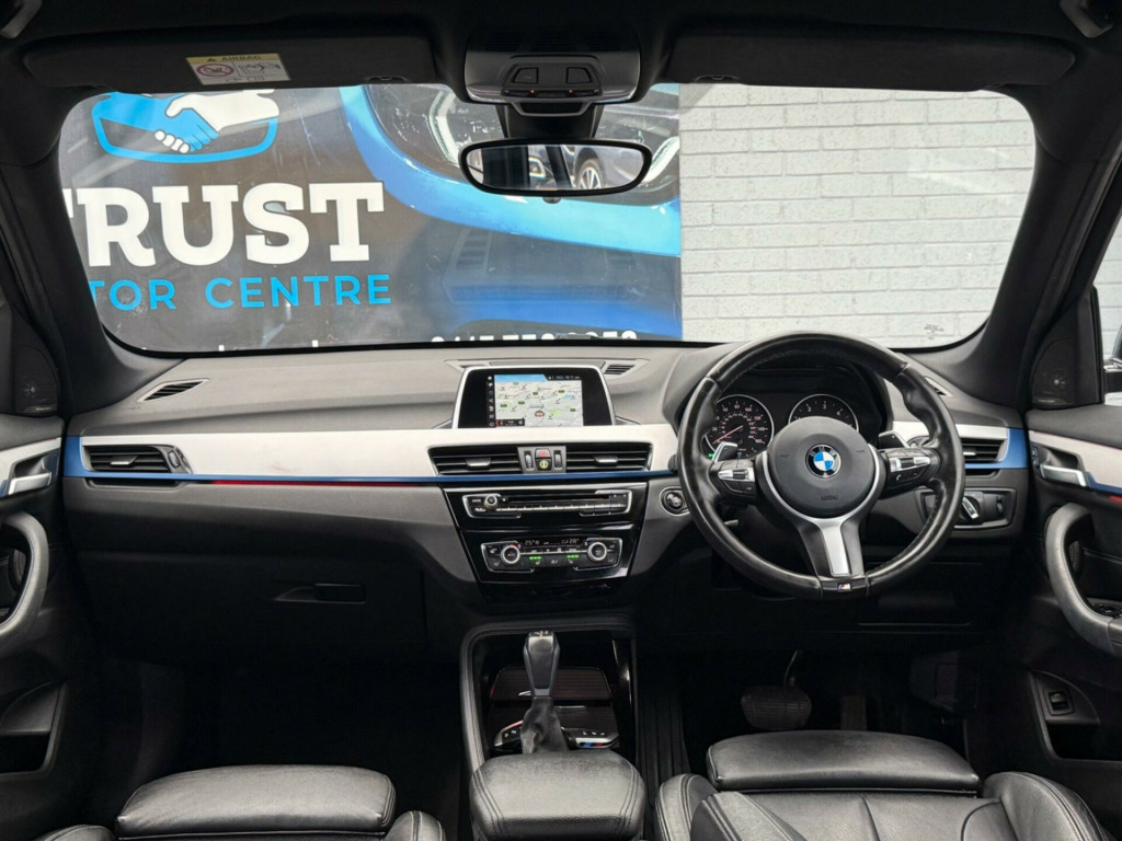 3 MONTHS WARRANTY!!12 MONTHS AA BREAKDOWN COVER!!FINANCE AVAILABLEAn exceptionally maintained BMW X1 presented in excellent condition inside and out. Recent service and MOT, Sat-Nav , Heated seats , parking sensors, Bluetooth connectivity, cruise control , Here at TRUST MOTOR CENTRE, we are passionate about cars and pride ourselves on customer service. We have our own off-site service and MOT test station and we make sure all our cars fully checked before sale.The car come with a 3-month warranty This is extendable up to 3 years on most cars!We offer a covered viewing area and a heated/air-conditioned office for comfort and a kid’s area on the way!For peace of mind, we welcome any inspection on the car and would be happy to arrange these with a company of your choice.For more information or to book viewing please don’t hesitate to contact us Finance available, Part ex welcomeNationwide Delivery Available. 12V Power Socket in Centre Console Front with Blanking Plug, 12V Power Socket in Centre Console Rear with Blanking Plug, 12V Power Socket in Front Centre Console and Passenger Footwell, 18in Alloy Wheels - Light M Double Spoke Style - 570 M Bi-Colour, 3.5mm Auxiliary Input Point for Auxiliary Playing Devices, 40-20-40 Electrically Split Folding Rear Seat with 60-40 Manual Sliding Bench, Active Guard, Adaptive LED Headlights with High-Beam Assistant, Air Conditioning - Automatic with Two-Zone Control, Airbags, Alarm System - Thatcham 1 with Remote Control and Engine Immobiliser, Armrest Front - Free Standing and can be Fixed in Five Positions, Automatic Powered Tailgate, BMW ConnectedDrive Online Services, BMW Emergency Call, BMW Navigation, BMW Professional Radio - Single CD and MP3, BMW TeleServices, Battery Safety Cut Off, Bluetooth Hands Free with USB Audio Interface, Brake Pad Wear Indicator, Bumper System Front and Rear - Replaceable Deformation Elements for Impacts Up to 9mph, Central Locking Switch - Doors - Fuel Filler Cap - Luggage Compartment, Centre Console Contrast Stitching, Check Control Warning System for Monitoring of Lights and Door-Luggage Compartment Open Warning, Child Proof Locking System - Rear Doors, Child Seat ISOFIX Attachment For The Two Outer Rear Seats And Front Passenger Seat, Crash Sensor - Activating Central Locking Release - Hazard Warning Lights - Battery Safety Cut Off - Interior Lighting, DAB Digital Radio, DSC - Dynamic Stability Control Plus, Door Mirrors - Electric and Heated, Door Mirrors - Integrated Indicators, Door Sill Finishers - Exclusive with BMW Designation - Front, Door Sill Finishers - M Designation - Front, Drive Performance Control with ECO PRO - Comfort and Sport Modes, Dynamic Brake Lights, EDLC - Electronic Differential Lock Control, Electric Windows - Front and Rear with Open-Close Fingertip Control - Anti-Trap Facility and Comfort Closing Function, Electrically Operated Handbrake - Parking Brake, Exhaust Tailpipe - 75mm - Chrome - Twin - Round - Left and Right Split, Extended Storage, Exterior Parts in Body Colour, Exterior Trim - High-Gloss Shadowline, First Aid Kit and Warning Triangle, Floor Mats - Velour, Front Cupholders - 2, Front Fog Lights, Gearshift Lever with M Designation, Glove Box with Light, Grab Handles - in Roof Lining x4, Headlining - Anthracite, Heat Protection Glazing with Green Tint, Heated Windscreen Washer Jets, High Level Third Brake Light, Incorrect Fuelling Protection System, Indicator Lenses - Clear, Instrument Cluster, Interior Lighting - Front Centre Over Interior Mirror and Rear Centre, Interior Trim - Aluminium Hexagon with Estoril Blue Finisher, Kidney Grille - Extra Wide High Gloss Black Vertical Slats, LED Ambient Lighting in Door Trim, Lights-On Warning by Audio Warning Signal When Ignition is Switched Off, Locking Wheel Bolts, Luggage Compartment - Light, Luggage Compartment Access via Handle in Number Plate Recess, M Aerodynamic Bodystyling, M Logo Designation Chrome - Side, M Sport Package, M Sport Steering Wheel, M Sport Suspension, Mobility Tyre Sealing System, Model Designation, OBC - On-Board Computer, Optimum Shift Indicator, PDC - Park Distance Control - Rear, Performance Control, Personal Profile - Extended, Rain Sensor with Automatic Headlight Activation, Rear Bumper with Dark Shadow Effect and Underbody Protection in Body Colour, Rear Fog Light, Rear Seat Headrests - Three, Rear Window Aerial, Rear Window Wiper with Wash-Wipe System, Remote Control Including Integrated Key - 2, Remote Control with Integrated Key with M Specific Highlight, Reversing Light in Rear Light Clusters, Roof Rails - High-Gloss Shadowline, Seat Belt Security Check for Driver and Front Passenger, Seats - Front Heated, Seats - Sliding Rear Bench, Servotronic Steering, Shark Fin, Side Armrests - Front and Rear Integrated into Door Trim, Side Impact Protection, Sport Seats - Front, Start-Stop Button with Comfort Go Keyless Engine Start and Auto Start-Stop D. Part service history