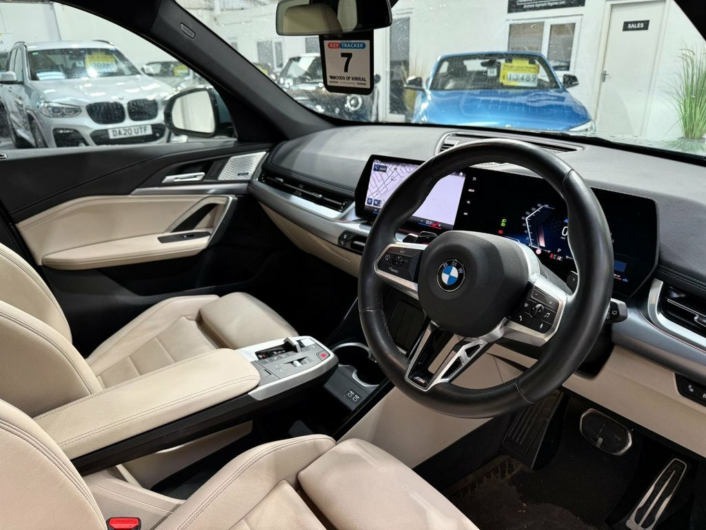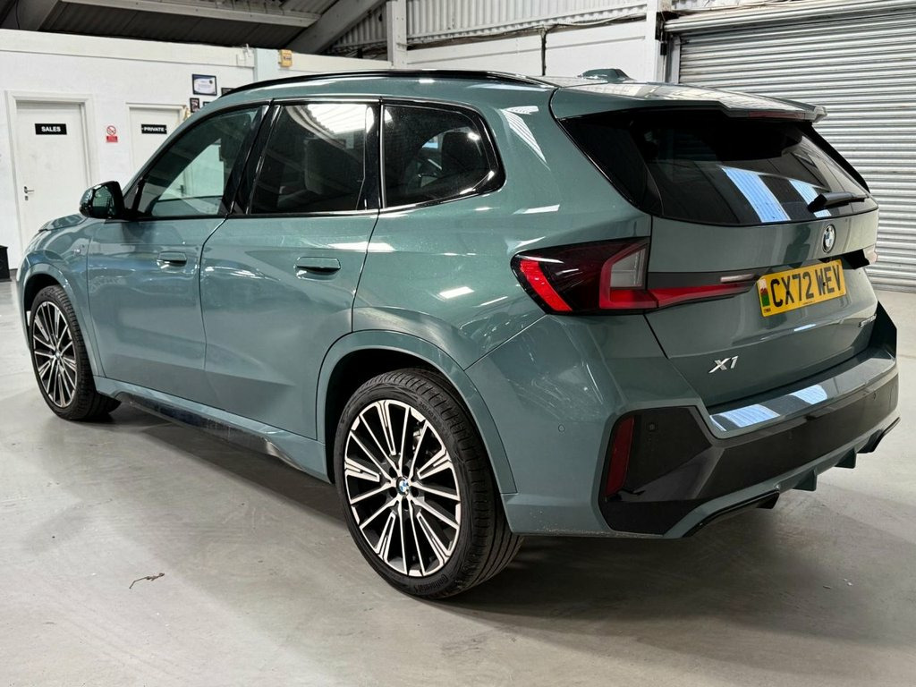 This 2023 BMW X1 18d M Sport presents an exceptional opportunity with its remarkably low mileage of just 11,700 miles and £5075 of factory fitted upgrades.. Complimented by a full BMW main dealer service history ensuring this vehicle has been maintained to the highest of standards. As a Euro 6 compliant model, this X1 features a powerful yet efficient 2.0L diesel engine, delivering an impressive 0-60mph time of 8.9 seconds. The M Sport trim and M Sport Pro Pack enhance its sporty appeal, while the Vernasca Leather in Oyster and 20in M Multi-Spoke Alloy Wheels in a striking 869 design add a touch of premium luxury. Inside, you'll find comfort and convenience with automatic two zone climate control, ensuring a pleasant driving environment for all occupants. Experience superior sound quality with the Harman Kardon Surround Audio Sound System, a premium branded feature that elevates every journey. This BMW X1 also boasts excellent fuel economy, achieving a remarkable 55 mpg, and benefits from low CO2 emissions, making it a more economical and environmentally conscious choice compared to similar vehicles. These highlights demonstrate the exceptional value and performance this X1 offers. M Sport Pro Pack, Vernasca Leather - Oyster, Harman Kardon Surround Audio Sound Syste, Sun Protection Glass, 20in Alloy Wheels - M Multi-Spoke - 869, Cape York Green, ABS - Anti Lock Braking System including, Active Guard, Air Conditioning Automatic with Two-Zone, Airbags, Alarm System, Attentiveness Assistant, Automatic Tailgate, BMW Emergency Call, BMW Live Cockpit Plus, BMW Online Services, BMW TeleServices, Brake System, Child Seat i-Size Attachment for Front P, Closing System with Central Locking, Condition Based Service, Connected Package Professional, Crash Sensor, DAB Digital Radio, DSC - Dynamic Stability Control - Stabil, Electric Windows, Exterior Items, Exterior Lighting, Exterio