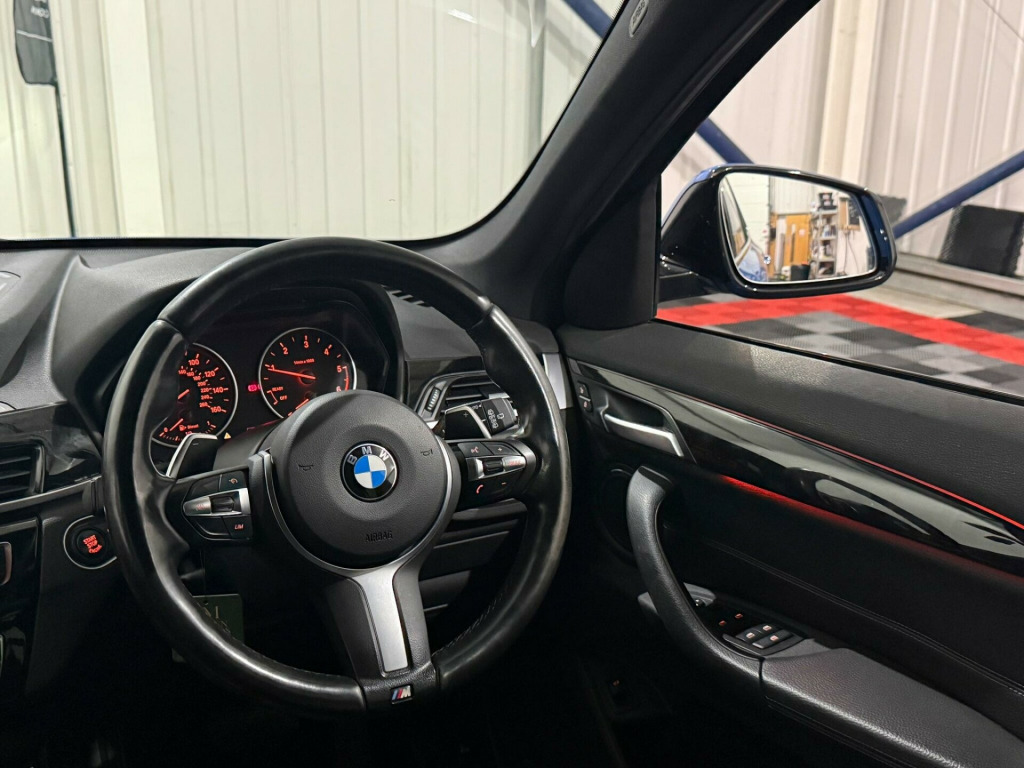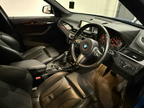 This 2017 BMW X1 20d M Sport offers an exceptional blend of performance and efficiency, boasting a remarkable 60 mpg fuel economy. As a Euro 6 compliant model, it features a powerful 2.0L diesel engine paired with a four wheel drive system for confident handling in all conditions. The M Sport trim enhances its sporty appeal with striking 19in M Double Spoke Style 572 M Bi Colour alloy wheels. Inside, the Driver Comfort Package includes front parking sensors, while extended lighting and heated front seats ensure a comfortable and convenient driving experience, further complemented by a rain sensor that automatically activates the headlights.This BMW X1 excels with its impressive acceleration, reaching 0-62mph in just 7.8 seconds, demonstrating its dynamic capabilities. Its low CO2 emissions highlight its environmental consideration, making it a sensible choice. Furthermore, the generous boot space provides ample practicality for everyday needs and longer journeys. These highlights collectively showcase the X1's superior performance, economy, and versatility when compared to other vehicles in its class. v power socket in centre console front with blanking plug, 12v power socket in centre console rear with blanking plug, 12v power socket in front centre console and passenger footwell, 18in alloy wheels - light m double spoke style - 570 m bi-colour, 3.5mm auxiliary input point for auxiliary playing devices, 40-20-40 electrically split folding rear seat with 60-40 manual sliding bench, active guard, adaptive led headlights with high-beam assistant, air conditioning - automatic with two-zone control, airbags, alarm system - thatcham 1 with remote control and engine immobiliser, armrest front - free standing and can be fixed in five positions, automatic powered tailgate, bmw connecteddrive online services, bmw emergency call, bmw navigation, bmw professional radio - single cd and mp3, bmw teleservices, battery safety cut off, bluetooth hands free with usb audio interface, brake pad wear indicator, bumper system front and rear - replaceable deformation elements for impacts up to 9mph, central locking switch - doors - fuel filler cap - luggage compartment, centre console contrast stitching, check control warning system for monitoring of lights and door-luggage compartment open warning, child proof locking system - rear doors, child seat isofix attachment for the two outer rear seats and front passenger seat, crash sensor - activating central locking release - hazard warning lights - battery safety cut off - interior lighting, dab digital radio, dsc - dynamic stability control plus, door mirrors - electric and heated, door mirrors - integrated indicators, door sill finishers - exclusive with bmw designation - front, door sill finishers - m designation - front, drive performance control with eco pro - comfort and sport modes, dynamic brake lights, edlc - electronic differential lock control, electric windows - front and rear with open-close fingertip control - anti-trap facility and comfort closing function, electrically operated handbrake - parking brake, exhaust tailpipe - 75mm - chrome - twin - round - left and right split, extended storage, exterior parts in body colour, exterior trim - high-gloss shadowline, first aid kit and warning triangle, floor mats - velour, front cupholders - 2, front fog lights, gearshift lever with m designation, glove box with light, grab handles - in roof lining x4, headlining - anthracite, heat protection glazing with green tint, heated windscreen washer jets, high level third brake light, incorrect fuelling protection system, indicator lenses - clear, instrument cluster, interior lighting - front centre over interior mirror and rear centre, interior trim - aluminium hexagon with estoril blue finisher, kidney grille - extra wide high gloss black vertical slats, led ambient lighting in door trim, lights-on warning by audio warning signal when ignition is switched off, locking wheel bolts, luggage compartment - light, luggage compartment access via handle in number plate recess, m aerodynamic bodystyling, m logo designation chrome - side, m sport package, m sport steering wheel, m sport suspension, mobility tyre sealing system, model designation, obc - on-board computer, optimum shift indicator, pdc - park distance control - rear, performance control, personal profile - extended, rain sensor with automatic headlight activation, rear bumper with dark shadow effect and underbody protection in body colour, rear fog light, rear seat headrests - three, rear window aerial, rear window wiper with wash-wipe system, remote control including integrated key - 2, remote control with integrated key with m specific highlight, reversing light in rear light clusters, roof rails - high-gloss shadowline, seat belt security check for driver and front passenger, seats - front heated, seats - sliding rear bench, servotronic steering, shark fin, side armrests - front and rear integrated into door trim, side impact protection, sport seats - front, start-stop button with comfort go keyless engine start and auto start-stop deactivation button, steering wheel - multifunction controls, steering-wheel column adjustment - manual, storage compartment - underneath floor of the luggage compartment, sun visors with vanity mirrors and ticket holder, tpms - tyre pressure monitoring system, three-point seat belts - all seats, twin horns, tyres - reduced rolling resistance, visible vin, welcome lighting, 19in alloy wheels - light m double spoke style - 572 m bi-colour, driver comfort package, sun protection glazing, cruise control with brake function, extended lighting, run flat tyres, sport automatic transmission, interior trim - high-gloss black with pearl chrome finisher, perforated dakota leather - black with blue stitching and black interior