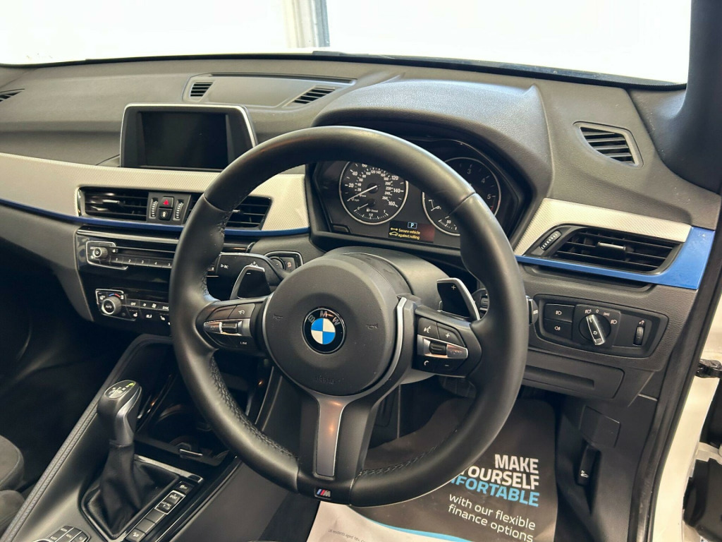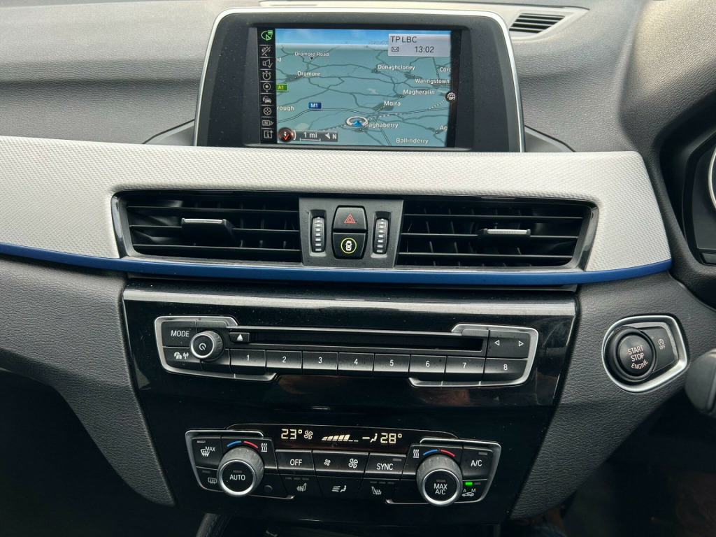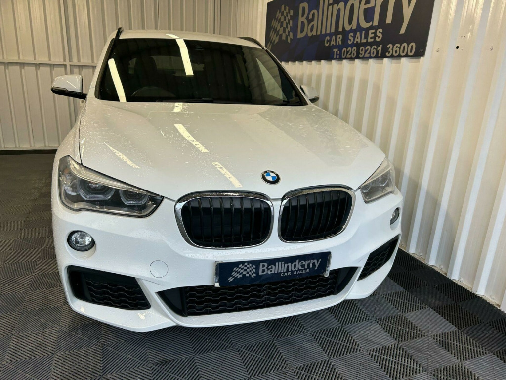 NICE EXAMPLE OF THIS BMW X1 XDRIVE 2.0D M SPORT AUTO IN WHITE. SPEC INCLUDES:** 18 INCH ALLOYS** X DRIVE** BLACK ROOF RAILS** SAT NAV** SPORTS SEATS** CLIMATE CONTROL** BLUE TOOTHLOW RATE FINANCE DEALS AVAILABLE WITH NO DEPOSIT REQUIRED.ALL TRADE IN`S WELCOME.TELEPHONE MARK OR STUART ON 02892 613600 OR 07802 396444. 12V Power Socket in Centre Console Front with Blanking Plug, 12V Power Socket in Centre Console Rear with Blanking Plug, 12V Power Socket in Front Centre Console and Passenger Footwell, 18in Alloy Wheels - Light M Double Spoke Style - 570 M Bi-Colour, 3.5mm Auxiliary Input Point for Auxiliary Playing Devices, 40-20-40 Electrically Split Folding Rear Seat with 60-40 Manual Sliding Bench, Active Guard, Adaptive LED Headlights with High-Beam Assistant, Air Conditioning - Automatic with Two-Zone Control, Airbags, Alarm System - Thatcham 1 with Remote Control and Engine Immobiliser, Armrest Front - Free Standing and can be Fixed in Five Positions, Automatic Powered Tailgate, BMW ConnectedDrive Online Services, BMW Emergency Call, BMW Navigation, BMW Professional Radio - Single CD and MP3, BMW TeleServices, Battery Safety Cut Off, Bluetooth Hands Free with USB Audio Interface, Brake Pad Wear Indicator, Bumper System Front and Rear - Replaceable Deformation Elements for Impacts Up to 9mph, Central Locking Switch - Doors - Fuel Filler Cap - Luggage Compartment, Centre Console Contrast Stitching, Check Control Warning System for Monitoring of Lights and Door-Luggage Compartment Open Warning, Child Proof Locking System - Rear Doors, Child Seat ISOFIX Attachment For The Two Outer Rear Seats And Front Passenger Seat, Crash Sensor - Activating Central Locking Release - Hazard Warning Lights - Battery Safety Cut Off - Interior Lighting, DAB Digital Radio, DSC - Dynamic Stability Control Plus, Door Mirrors - Electric and Heated, Door Mirrors - Integrated Indicators, Door Sill Finishers - Exclusive with BMW Designation - Front, Door Sill Finishers - M Designation - Front, Drive Performance Control with ECO PRO - Comfort and Sport Modes, Dynamic Brake Lights, EDLC - Electronic Differential Lock Control, Electric Windows - Front and Rear with Open-Close Fingertip Control - Anti-Trap Facility and Comfort Closing Function, Electrically Operated Handbrake - Parking Brake, Exhaust Tailpipe - 75mm - Chrome - Twin - Round - Left and Right Split, Extended Storage, Exterior Parts in Body Colour, Exterior Trim - High-Gloss Shadowline, First Aid Kit and Warning Triangle, Floor Mats - Velour, Front Cupholders - 2, Front Fog Lights, Gearshift Lever with M Designation, Glove Box with Light, Grab Handles - in Roof Lining x4, Headlining - Anthracite, Heat Protection Glazing with Green Tint, Heated Windscreen Washer Jets, High Level Third Brake Light, Incorrect Fuelling Protection System, Indicator Lenses - Clear, Instrument Cluster, Interior Lighting - Front Centre Over Interior Mirror and Rear Centre, Interior Trim - Aluminium Hexagon with Estoril Blue Finisher, Kidney Grille - Extra Wide High Gloss Black Vertical Slats, LED Ambient Lighting in Door Trim, Lights-On Warning by Audio Warning Signal When Ignition is Switched Off, Locking Wheel Bolts, Luggage Compartment - Light, Luggage Compartment Access via Handle in Number Plate Recess, M Aerodynamic Bodystyling, M Logo Designation Chrome - Side, M Sport Package, M Sport Steering Wheel, M Sport Suspension, Mobility Tyre Sealing System, Model Designation, OBC - On-Board Computer, Optimum Shift Indicator, PDC - Park Distance Control - Rear, Performance Control, Personal Profile - Extended, Rain Sensor with Automatic Headlight Activation, Rear Bumper with Dark Shadow Effect and Underbody Protection in Body Colour, Rear Fog Light, Rear Seat Headrests - Three, Rear Window Aerial, Rear Window Wiper with Wash-Wipe System, Remote Control Including Integrated Key - 2, Remote Control with Integrated Key with M Specific Highlight, Reversing Light in Rear Light Clusters, Roof Rails - High-Gloss Shadowline, Seat Belt Security Check for Driver and Front Passenger, Seats - Front Heated, Seats - Sliding Rear Bench, Servotronic Steering, Shark Fin, Side Armrests - Front and Rear Integrated into Door Trim, Side Impact Protection, Sport Seats - Front, Start-Stop Button with Comfort Go Keyless Engine Start and Auto Start-Stop D.