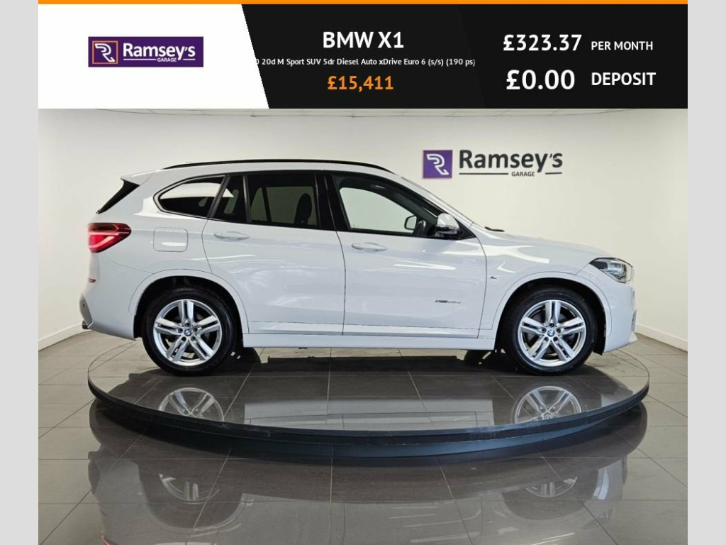 BMW X1 2.0 20d M Sport SUV (5dr Auto xDrive) Engine: 2.0L TwinPower Turbo Diesel Power: 190 PS Transmission: Automatic (8-Speed Steptronic) Drive Type: xDrive All-Wheel Drive Fuel Type: Diesel Doors: 5 Trim Level: M Sport Body Style: SUV Emissions Standard: Euro 6 (s/s) The BMW X1 20d M Sport xDrive delivers premium quality, sporty design, and all-weather capability in a compact luxury SUV. Powered by a strong 190 PS diesel engine and BMW's intelligent all-wheel-drive system, it combines performance with practicality and style. Key Features: Heated seats M Sport styling package with aerodynamic body kit 18" M Sport alloy wheels BMW Navigation System with 6.5" iDrive display M Sport suspension and leather multifunction steering wheel Sports seats with Alcantara trim Rear parking sensors with Park Distance Control LED headlights and fog lights Dual-zone automatic climate control Cruise control with brake function Power tailgate ISOFIX child seat mounts Drive Performance Control with ECO PRO mode Start/Stop system Euro 6 compliant – ULEZ friendly The X1 M Sport is the ideal combination of dynamic driving, upscale features, and everyday practicality – perfect for families or professionals looking for a premium SUV. Registration: GU18WRL Mileage: 49000 Year: 2018 Colour: WHITE Location: CO. DURHAM. ONLY 5 MINS FROM THE A1 Contact our sales team on 01325300200 or DM us on 07955476475 now to arrange a viewing or test drive. 12V Power Socket - Passenger Footwell, 12V Power Socket in Centre Console Front, 12V Power Socket in Centre Console Rear , 18in Alloy Wheels - Light M Double Spoke, 40-20-40 Electrically Split Folding Rear, Access to BMW Connected Plus for 12 Mont, Active Guard, Adaptive LED Headlights with High-Beam A, Aero Curtain, Air Conditioning Automatic with Two-Zone, Airbags, Alarm System - Thatcham 1 with Remote Co, Alpine White, Armrest Front - Free Standing and can be, Automatic Tailgate, Battery Safety Cut Off, Bluetooth Hands Free with USB Audio Inte, BMW ConnectedDrive Online Services, BMW Emergency Call, BMW Navigation, BMW Professional Radio with Single CD Pl, BMW TeleServices, Brake Pad Wear