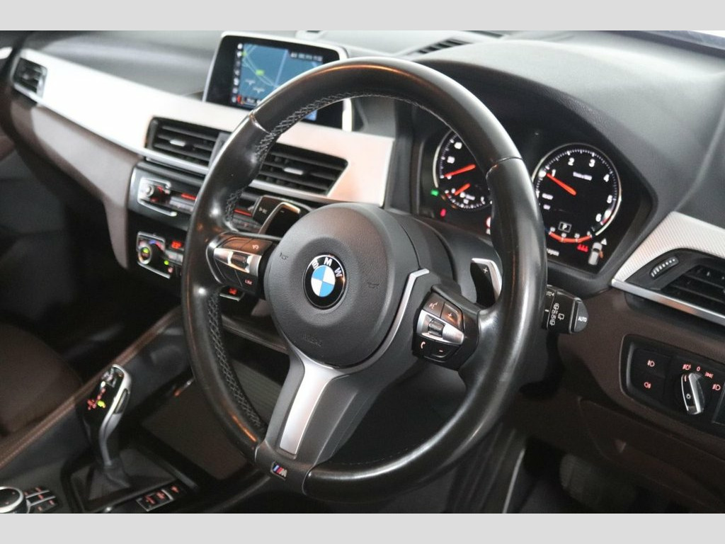 This well maintained 4X4 AUTOMATIC BMW X1 M Sport xDrive finished in Estroil Blue looks fantastic complemented by 18 inch Alloy Wheels, M Sport Body Styling, LED Headlights and Rear Privacy Glass. Find your way with integrated SATELLITE NAVIGATION with LCD Display. Park in ease with REAR PARKING SENSORS. Sit in luxury with FULL MOCHA LEATHER Upholstery with HEATED FRONT SEATS and Sliding Rear Bench. Listen to your music through DAB Digital Radio and HARMAN KARDON Sound System. Keep connected with BLUETOOTH phone system with USB port. Comfortable to drive with Dual-Zone CLIMATE CONTROLLED AIR CONDITIONING and CRUISE CONTROL. Well equipped with Auto Headlights, Rain-Activated Wipers and Power Operated Tailgate. Also fitted with ISOFIX seats, Multifunctional M Sport Steering Wheel, Drive Performance Control, Alarm and Remote Door Locking with 2 x keys. Buy in confidence with SERVICE HISTORY with 7 x Documented Services. BMW Navigation, PDC - Park Distance Control - Rear, Seat Heating for Driver and Front Passen, Seats - Sliding Rear Bench, Perforated Dakota Leather - Mocha with C, Loudspeaker System - Harman Kardon, DAB Digital Radio, Bluetooth Hands-Free Facility with USB -, Air Conditioning Automatic with Two-Zone, Cruise Control with Brake Function, LED Headlights, 18in Alloy Wheels - Light M Double Spoke, Sun Protection Glazing, M Aerodynamic Bodystyling, Automatic Tailgate, Rain Sensor with Automatic Headlight Act, Child Seat ISOFIX Attachment for the Two, Multifunction Controls for Steering Whee, Drive Performance Control with ECO PRO -, Alarm System - Thatcham 1 with Remote Co, Remote Control Includi