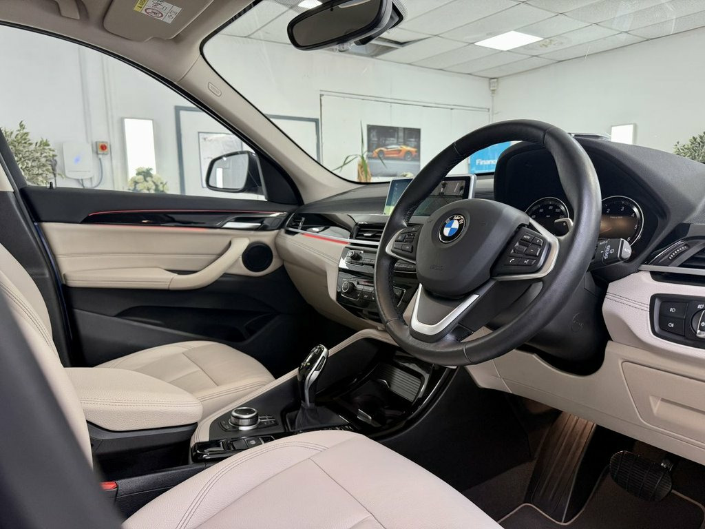 Lovely BMW X1 Finished In Metallic Mediterranean Blue With Contrasting Oyster Dakota Leather Interior. Vehicle Is 1 Previous Owner With Full Service History, Including A New 12 Months MOT and 6 Months Nation Wide Warranty. Finance Arranged 12V Power Socket in Centre Console Front, 18in Alloy Wheels - Y-Spoke Style 579 Bi, 40-20-40 Manually Split Folding Rear Sea, Access to BMW Connected Plus (12 Month S, Active Guard, Air Conditioning Automatic with Two-Zone, Airbags, Alarm System - Thatcham 1 with Remote Co, Armrest Front - Free Standing and can be, Automatic Tailgate, Automatically Dimming Rear View Mirror, BMW ConnectedDrive Online Services, BMW Emergency Call, BMW Navigation, BMW Professional Radio, BMW TeleServices, Battery Safety Cut Off, Bluetooth Hands-Free Facility with USB -, Brake Pad Wear Indicator - Front and Rea, Bumper System Front and Rear - Replaceab, Central Locking Switch for All Doors - F, Check Control War