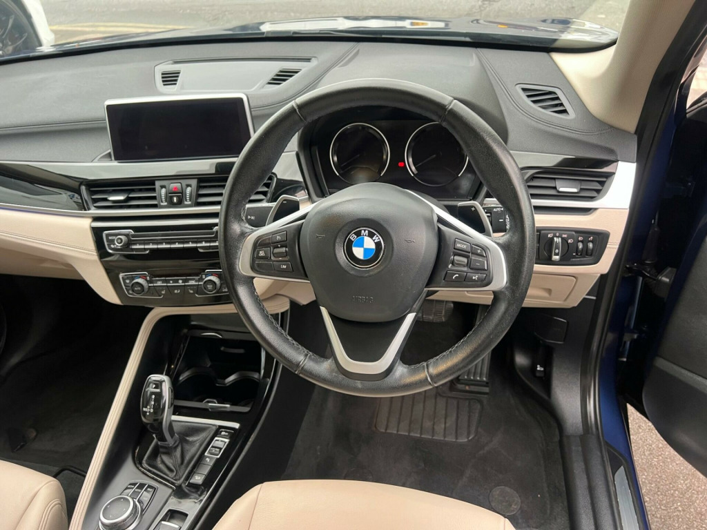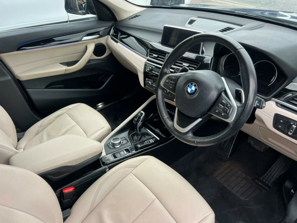 This 2022 BMW X1 20i xLine automatic is a superb example, having been owned by just one discerning individual from new. With a bmw service record This four wheel drive petrol model boasts a powerful 2.0 litre engine and meets the Euro 6 emission standards. Its xLine trim level ensures a premium experience, enhanced by features such as bright LED headlights that automatically activate thanks to the rain sensor. Inside, you'll appreciate the convenience of Apple CarPlay for seamless smartphone integration and the comfort of heated seats for both the driver and front passenger. Parking is made effortless with front and rear Park Distance Control sensors.heated cream leather looks amazing The BMW X1 20i xLine offers a compelling blend of performance and practicality. Its impressive 0-62mph acceleration in just 7.3 seconds demonstrates its dynamic capability. This vehicle also features a generously sized boot, providing ample space for luggage, shopping, or sports equipment, setting it apart from many other vehicles in its class. The combination of its low owner count, desirable xLine specification, and thoughtful features makes this X1 a truly attractive proposition. v power socket in centre console front with blanking plug, 18in alloy wheels - y-spoke style 579 bicolour, 40-20-40 manually split folding rear seat, active guard, aero curtain, air conditioning automatic with two-zone control, airbags, alarm system - thatcham 1 with remote control and engine immobiliser, apple carplay, armrest front - free standing and can be fixed in five positions, automatic tailgate, automatically dimming rear view mirror, bmw connecteddrive, bmw connecteddrive online services, bmw emergency call, bmw navigation, bmw professional radio, bmw teleservices, battery safety cut off, bluetooth hands-free facility with usb - usb type a - 1.5 a audio interface, brake pad wear indicator - front and rear, bumper system front and rear - replaceable deformation elements for impacts up to 9mph, central locking switch for all doors - fuel filler cap - luggage compartment, check control warning system for monitoring of lights and door-luggage compartment open warning, child proof locking system - rear doors, child seat isofix attachment for the two outer rear seats and front passenger seat with anchorage points, condition based service, contrast stitching on instrument panel and centre console to match seat upholstery highlight stitching, cruise control with brake function, cupholders - two, dab digital radio, dsc - dynamic stability control plus, direction indicator lights using led technology located in headlight eyebrow, direction indicator side lights integrated in exterior mirrors, door sill finishers - exclusive with bmw designation - front, drive performance control with eco pro - comfort and sport modes, edlc - electronic differential lock control, eps - electric power steering, electric windows, electrically operated parking brake, exhaust tailpipe 90mm - chrome twin - round - left and right - split, extended lighting, extended storage, exterior mirrors - electrically folding with anti dazzle, exterior parts in body colour, exterior styling parts, exterior trim - satin aluminium - matt, first aid kit and warning triangle, floor mats - velour, front air inlets in black matt with silver matt finisher, front bumper underbody protection in silver matt, glove box with light, grab handles - integrated in roof lining x4, heat protection glazing with green tint, heated windscreen washer jets, high level third brake light, instrument cluster, interior lighting - front centre over interior mirror and rear centre, interior trim - high-gloss black with pearl chrome finisher, kidney grille - chrome with 14 matt aluminium fronted with black matt sides - vertical bars, led ambient lighting in door trim, led fog lights - front, led headlights, larger capacity fuel tank, lights-on warning by audio warning signal when ignition is switched off, locking wheel bolts, luggage compartment - light, luggage compartment access via handle in number plate recess, luggage compartment underfloor storage, mobility tyre sealing system, model designation, multifunction controls for steering wheel, obc - on-board computer, optimal shift indicator, pdc - park distance control - front and rear, park assist, performance control, rain sensor with automatic headlight activation, real time traffic information, rear bumper underbody protection in black silver with silver matt insert, rear fog light, rear seat headrests - three, rear window aerial, rear window wiper with wash-wipe system, remote control including integrated key - 2, remote services, reversing light in rear light clusters, roof rails - matt aluminium, seat belt security check for driver and front passenger, seat heating for driver and front passenger, servotronic steering, shark fin, side armrests - front and rear integrated into door trim, side impact protection, sill cover black matt with silver matt insert, sport multi-function leather steering wheel - three spoke, stainless steel insert on loading edge in luggage compartment, standard seat for driver and passenger with manual adjustment, start-stop button with comfort go keyless engine start and auto start-stop deactivation button, steering column adjustment - manual, steering wheel - gearshift paddles, sun visors with vanity mirrors and ticket pocket, suspension, tpms - tyre pressure monitoring system, three-point seat belts - all seats, twin horns, tyres - reduced rolling resistance, visible vin, welcome lighting, perforated dakota leather - oyster with grey highlight and stitching
