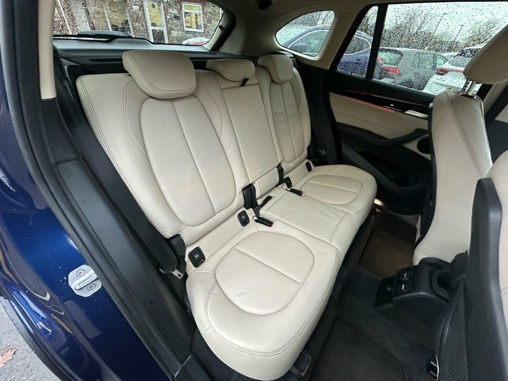 Finished in Mediterranean Blue Metallic, Refined, capable, and superbly built — this 2017 (17) BMW X1 2.0 20i xLine Auto xDrive is a premium compact SUV that blends performance, comfort, and practicality perfectly. Powered by the 2.0-litre petrol engine producing 192PS and paired with the smooth automatic gearbox and xDrive all-wheel drive system, it delivers strong, confident performance in all conditions with Euro 6 emissions compliance. The xLine model adds distinctive styling and a premium specification, including leather upholstery, satellite navigation, front and rear parking sensors, power tailgate, dual-zone climate control, and Bluetooth connectivity. With its elevated driving position, high-quality interior, and BMW's renowned driving dynamics, this X1 offers both luxury and practicality. Presented in excellent condition throughout and fully inspected and prepared to our high retail standards 12V Power Socket - Passenger Footwell, 12V Power Socket in Centre Console Front, 12V Power Socket in Centre Console Rear , 18in Alloy Wheels - Light Y Spoke Style , 18in Alloy Wheels - Light Y Spoke Style , 3.5mm Auxiliary Input Point for Auxiliar, 40-20-40 Electrically Split Folding Rear, Active Guard, Adaptive LED Headlights with High-Beam A, Air Conditioning Automatic with Two-Zone, Airbags, Alarm System - Thatcham 1 with Remote Co, Armrest Front - Free Standing and can be, Automatic Tailgate, Battery Safety Cut Off, Bluetooth Hands Free with USB Audio Inte, BMW ConnectedDrive Online Services, BMW Emergency Call, BMW Navigation, BMW Professional Radio with Single CD Pl, BMW TeleServices,