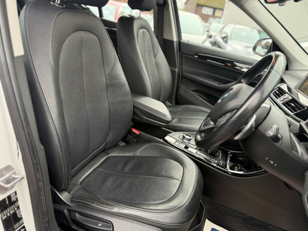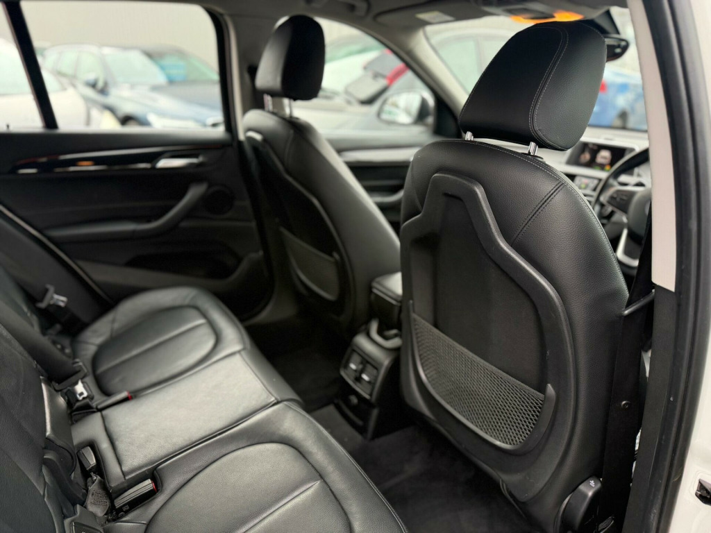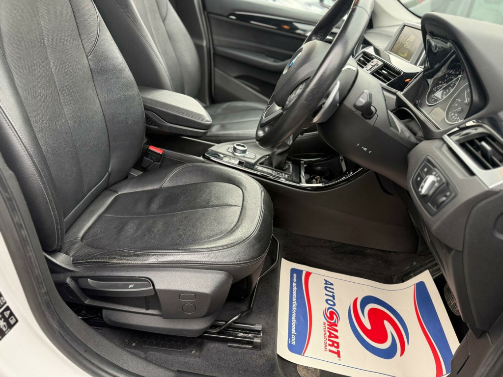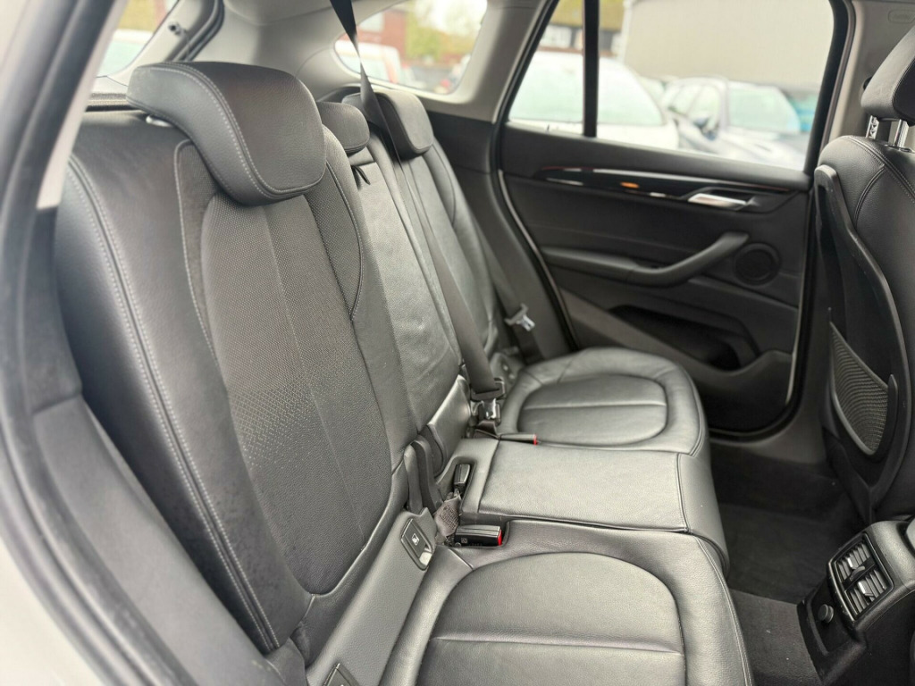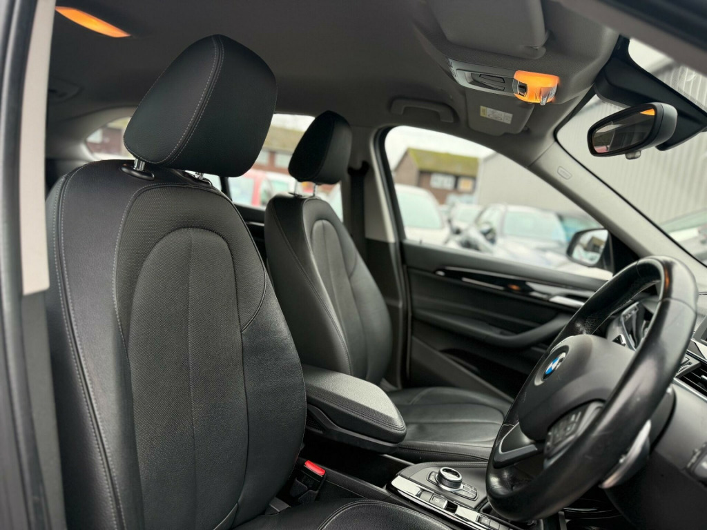 This 2017 BMW X1 25d xLine is presented with a clear vehicle history check, offering you peace of mind. This four wheel drive model features a 2.0L diesel engine and meets Euro 6 emissions standards. Inside, you'll find comfortable heated front seats, and for convenience, it includes Bluetooth hands free with USB audio interface, rear park distance control, and a rain sensor that automatically activates the headlights. The adaptive LED headlights with high beam assistant ensure excellent visibility.Experience impressive performance with this BMW X1, accelerating from 0 to 62mph in just 6.6 seconds. This model also boasts a fuel economy of 55 mpg, which is better than many similar vehicles, and benefits from low CO2 emissions. Furthermore, you'll appreciate the generous boot space, making it a practical choice for all your needs. v power socket in centre console front with blanking plug, 12v power socket in centre console rear with blanking plug, 12v power socket in front centre console and passenger footwell, 18in alloy wheels - light y spoke style 569, 3.5mm auxiliary input point for auxiliary playing devices, 40-20-40 electrically split folding rear seat with 60-40 manual sliding bench, active guard, adaptive led headlights with high-beam assistant, air conditioning - automatic with two-zone control, airbags, alarm system - thatcham 1 with remote control and engine immobiliser, armrest front - free standing and can be fixed in five positions, automatic powered tailgate, bmw connecteddrive online services, bmw emergency call, bmw navigation, bmw professional radio - single cd and mp3, bmw teleservices, battery safety cut off, bluetooth hands free with usb audio interface, brake pad wear indicator, bumper system front and rear - replaceable deformation elements for impacts up to 9mph, central locking switch - doors - fuel filler cap - luggage compartment, centre console contrast stitching, check control warning system for monitoring of lights and door-luggage compartment open warning, child proof locking system - rear doors, child seat isofix attachment for the two outer rear seats and front passenger seat, crash sensor - activating central locking release - hazard warning lights - battery safety cut off - interior lighting, dab digital radio, dsc - dynamic stability control plus, door mirrors - electric and heated, door mirrors - integrated indicators, door sill finishers - exclusive with bmw designation - front, drive performance control with eco pro - comfort and sport modes, dynamic brake lights, edlc - electronic differential lock control, electric windows - front and rear with open-close fingertip control - anti-trap facility and comfort closing function, electrically operated handbrake - parking brake, exhaust tailpipe - 75mm - chrome - twin - round - left and right split, extended storage, exterior parts in body colour, exterior trim - matt aluminium, first aid kit and warning triangle, floor mats - velour, front air inlet with black matt finisher and silver matt highlight, front bumper underbody protection in silver matt, front cupholders - 2, front fog lights, glove box with light, grab handles - in roof lining x4, heat protection glazing with green tint, heated windscreen washer jets, high level third brake light, incorrect fuelling protection system, indicator lenses - clear, instrument cluster, interior lighting - front centre over interior mirror and rear centre, interior trim - high-gloss black with pearl chrome finisher, kidney grille - 14 matt aluminium fronted vertical slats, led ambient lighting in door trim, larger capacity fuel tank, lights-on warning by audio warning signal when ignition is switched off, locking wheel bolts, luggage compartment - light, luggage compartment access via handle in number plate recess, mobility tyre sealing system, model designation, obc - on-board computer, optimum shift indicator, pdc - park distance control - rear, performance control, personal profile - extended, rain sensor with automatic headlight activation, rear bumper underbody protection in black - grey and silver matt, rear fog light, rear seat headrests - three, rear window aerial, rear window wiper with wash-wipe system, remote control including integrated key - 2, remote control with integrated key with pearl chrome highlight, reversing light in rear light clusters, roof rails - matt aluminium, seat belt security check for driver and front passenger, seats - front heated, seats - sliding rear bench, servotronic steering, shark fin, side armrests - front and rear integrated into door trim, side impact protection, sill cover with silver matt insert, sport automatic transmission, sport multi-function leather steering wheel - three spoke, standard seat for driver and passenger with manual adjustment, start-stop button with comfort go keyless engine start and auto start-stop deactivation button, steering wheel - gearshift paddles, steering wheel - multifunction controls, steering-wheel column adjustment - manual, storage compartment - underneath floor of the luggage compartment, sun visors with vanity mirrors and ticket holder, suspension, tpms - tyre pressure monitoring system, three-point seat belts - all seats, twin horns, tyres - reduced rolling resistance, visible vin, welcome lighting, perforated dakota leather - black with grey stitching with black interior