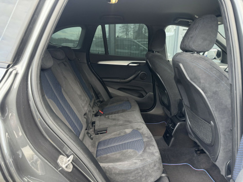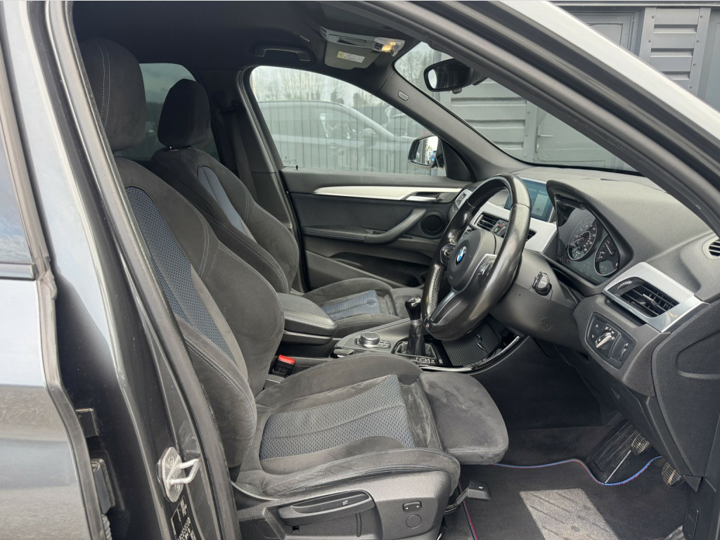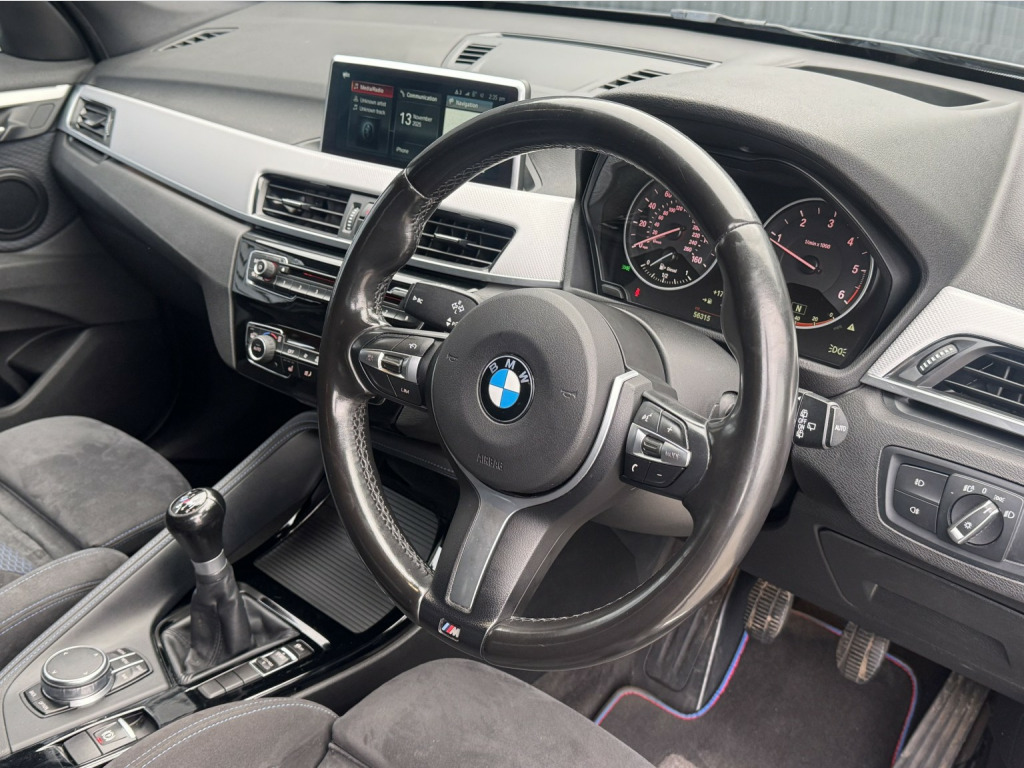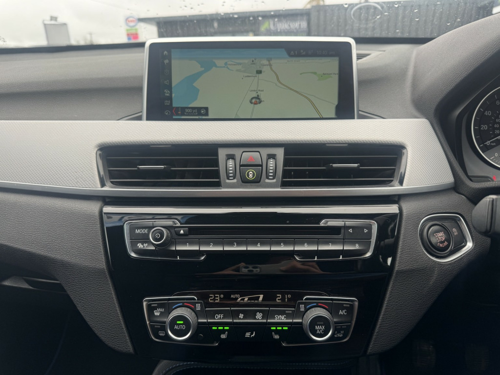 WE ARE DELIGHTED TO OFFER THIS LOW MILEAGE ULEZ COMPLIANT (EURO 6) BMW X1 FINISHED IN SOPHISTICATED GREY WITH THE DESIRABLE BLACK PACK AND ALCANTARA HEXACON-STITCHED SPORT INTERIOR, EQUIPPED WITH A HOST OF PREMIUM FEATURES INCLUDING HEADS-UP DISPLAY, XENON HEADLIGHTS WITH BMW SIGNATURE DAYTIME RUNNING LIGHTS, HEATED SEATS, ROAD SIGN DETECTION, REAR PARKING SENSORS, PROFESSIONAL WIDE-SCREEN NAVIGATION, DAB RADIO, DVD PLAYER, CONNECTED DRIVE WITH TOUCHPAD CONTROLLER AND 20GB BUILT-IN HARD DRIVE, USB AND BLUETOOTH AUDIO, DRIVING MODES, AMBIENT LIGHTING, DUAL-ZONE CLIMATE CONTROL, CRUISE CONTROL, FRONT-END COLLISION AUTOMATIC BRAKING, AUXILIARY VENTILATION, GPS TRACKING, AUTO LIGHTS, RAIN-SENSING WIPERS, ELECTRIC TAILGATE, STRIKING 19 M DOUBLE SPOKE ALLOY WHEELS, FULL SERVICE HISTORY AND SUPPLIED WITH 2 KEYS, A TRULY EXCEPTIONAL EXAMPLE, 19in Alloy Wheels - Light M Double Spoke Style - 572 M Bi-Colour with Run Flat Tyres, 40-20-40 Electrically Split Folding Rear Seat with 60-40 Manual Sliding Bench, Access to BMW Connected Plus (12 Month Subscription From New), Active Guard, Adaptive LED Headlights with High-Beam Assistant, Aero Curtain, Air Conditioning Automatic with Two-Zone Control, Airbags, Alarm System - Thatcham 1 with Remote Control and Engine Immobiliser, Automatic Tailgate, BMW ConnectedDrive Online Services, BMW Navigation, BMW Navigation Plus Package, BMW TeleServices, Battery Safety Cut Off, Bluetooth Hands Free with USB Audio Interface, Bumper System Front and Rear - Replaceable Deformation Elements for Impacts Up to 9mph, Central Locking Switch - Doors - Fuel Filler Cap - Luggage Compartment, Centre Console - Black - High Gloss, Contrast Stitching on Centre Console in Blue - Silver - Grey or Brown to Match Seat Upholstery, Crash Sensor - Activating Central Locking Release - Hazard Warning Lights - Battery Safety Cut Off - Interior Lighting, Cruise Control with Brake Function, DAB Digital Radio, DSC - Dynamic Stability Control Plus, Direction Indicator Lights - Clear Lenses, Door Sill Finishers - M Designation - Front, Drive Performance Control with ECO PRO - Comfort and Sport Modes, Dynamic Brake Lights, ECO PRO Mode, EDC - Electronic Damper Control, EDLC - Electronic Differential Lock Control, Electrically Operated Handbrake - Parking Brake, Extended Lighting, Exterior Parts in Body Colour, Exterior Trim - High-Gloss Shadowline, First Aid Kit and Warning Triangle, Front Fog Lights, Gearshift Lever with M Designation - Short-Shift, Glove Box with Light, Headlining - Anthracite, Heat Protection Glazing with Green Tint, Heated Exterior Mirrors, Incorrect Fuelling Protection System, Instrument Cluster, Interior Lighting - Front Centre Over Interior Mirror and Rear Centre, Interior Trim - Aluminium Hexagon with Estoril Blue Finisher, Interior Trim - Aluminium Hexagon with Pearl Chrome Finisher, LED Ambient Lighting in Door Trim, Luggage Compartment Access via Handle in Number Plate Recess, M Aerodynamic Bodystyling, M Logo Designation Chrome - Side, M Sport Package, M Sport Suspension, Model Designation, Model Designation Deletion, Model Designation Deletion - Side, PDC - Park Distance Control - Rear, Performance Control, Personal Profile - Extended, Real Time Traffic Information, Rear Bumper with Dark Shadow Effect and Underbody Protection in Body Colour, Rear Fog Light, Rear Seat Headrests - Three, Rear Window Wiper with Wash-Wipe System, Remote Control with Integrated Key with M Specific Highlight, Reversing Light in Rear Light Clusters, Roof Rails - High-Gloss Shadowline, Seat Belt Security Check for Driver and Front Passenger, Seat Heating for Driver and Front Passenger, Shark Fin, Side Armrests - Front and Rear Integrated into Door Trim, Side Impact Protection, Sport Seats - Front, Stainless Steel Insert on Loading Edge in Luggage Compartment, Start-Stop Button with Comfort Go Keyless Engine Start and Auto Start-Stop Deactivation Button, Sun Visors with Vanity Mirrors and Ticket Holder, TPMS - Tyre Pressure Monitoring System, Three-Point Seat Belts - All Seats, Twin Horns, Tyres - Reduced Rolling Resistance, Welcome Lighting