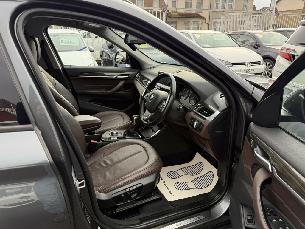This 2017 BMW X1 20i X Line X Drive Leather Seats VERIFIED MILES FRESH IMPORT FINANCE AVB SUV is currently available for £14,995 in Essex with Petrol engine and Auto Clutch Manual gearbox. For more information or to arrange a viewing, click here to send us an email using form below.