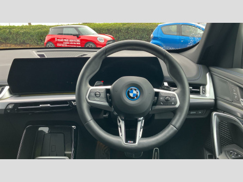 The generous boot space in this X1 ensures practicality for everyday life and longer journeys alike. The M Sport trim level enhances the driving experience with its sporty styling and dynamic handling. The combination of its plug in hybrid technology, four wheel drive system, and the comprehensive M Sport Pro Pack with advanced parking aids sets this BMW X1 apart, offering a refined and capable driving experience that is hard to match. 19" M Lt/Aly wheels Double-spoke style 8, BMW Individual Lights Shadow Line, M Sport Brakes with Red Calipers, Comfort Access, M Sport Seat Belts, Sun Protection Glass, Ext. mirrors- folding with anti-dazzle, Rear-view Mirror with Auto dimming, High-Beam Assistant, Adaptive LED Headlights, Storage for wireless charging, Indv. high-gloss shadowline- extended, M Sport Spoiler, Control E, Control G, Driving Assistant Plus preparation, M Sport Pro Pack, Technology Pack, EU6 RDE II exhaust emissions standard, Auto transmission with gearshift paddles, Tyre Repair Kit Plus, M Adaptive Suspension, High-gloss Shadowline Roof Rails, Alarm System, Aluminium Hexacube Pale M interior trim, Luxury Instrument Panel, Charging cable Professional (Mode 3), AC Fast Charge preparation, eDrive Exterior Sound, Child seat i-Size attachment for front p, Sport seats, Heated front seats, Active Guard, Parking Assistant, BMW TeleServices, BMW Emergency Call, Personal eSIM, DAB Radio, High-gloss Shadowline Exterior Trim, Anthracite Headlining, COC additional contents, Active Pedestrian Safety, English / on-board literature II, Specific additional contents in M Sport, M Sport exterior parts, M Sport interior parts, M Sport Package