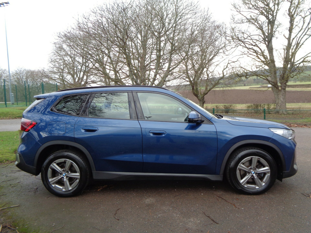 Latest shape BMW X1 with the modern, large screen dash looking lovely in Phyton Blue Metallic. All the usual refinements with Heated Sports Seats, Bluetooth, Comfort Access, Cameras all round, Adaptive LED Headlights and Head-Up Display. Give us a call on 01334 656746 if you would like to come and see it or, if you are not already on it, click the link through to our website for many more photos. Part exchange welcome. Southbridge Garage, Cupar, KY15 5HY. r conditioning, bluetooth connection, door mirrors electrically foldable, keyless go, satellite navigation, usb/ipod interface, adjustable steering column, cruise control, front parking sensor, multi-function steering wheel, power steering, rear parking sensor, self parking system, abs, child locks, isofix child seat anchor points, multiple airbags, alarm, immobiliser, keyless entry, remote central locking, electric front windows, electric mirrors, electric tailgate, rear electric windows, digital radio, oem sound system, front armrest, heated front seat, height adjustable drivers seat, sports seats, folding rear seats, rear headrests, push button start, wireless mobile phone charging, alloy wheels, body coloured bumpers, front fog lights, led headlights, metallic paintwork, rear wash/wipe, roof rails, tyre repair kit, lez compliant, 40:20:40 split rear seat