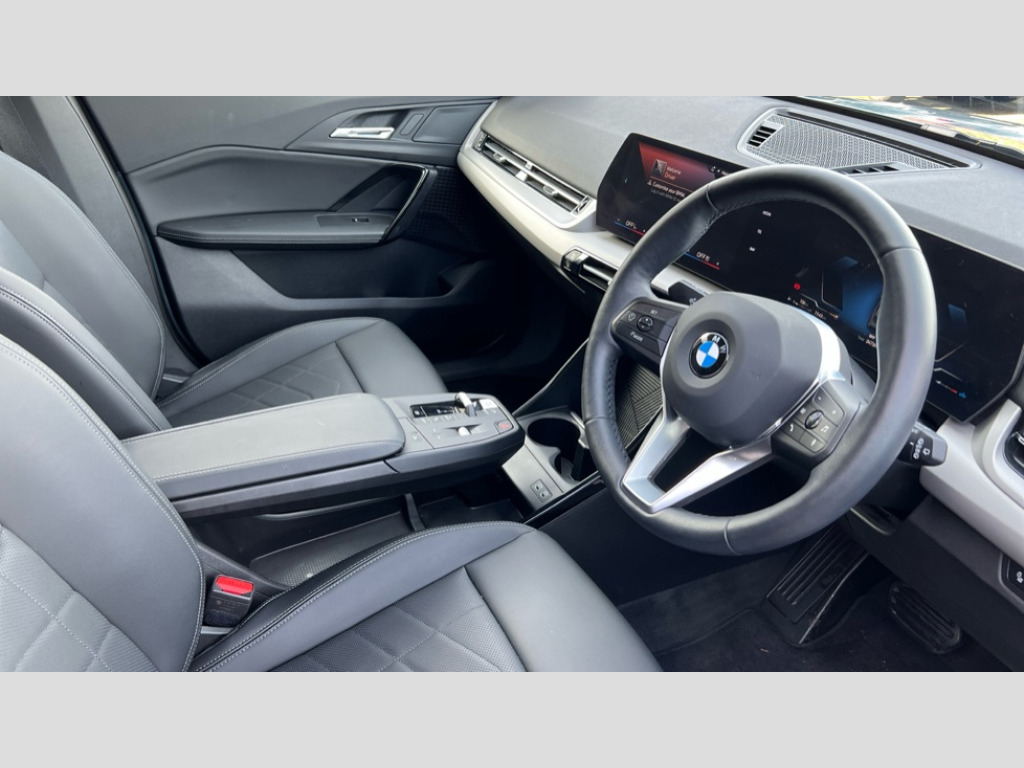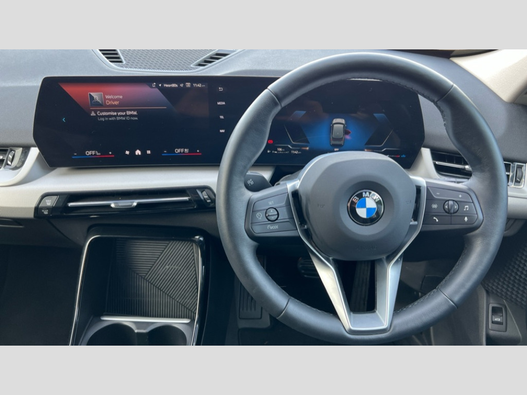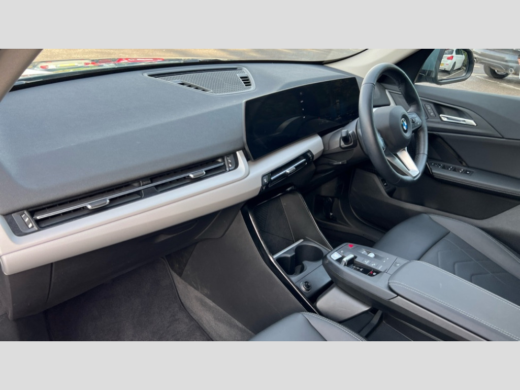 BMW X1 sDrive 18d Sport 5dr Step Auto Attentiveness assist, Automatic start/stop function, BMW Operating system 9 with BMW Maps, real-time traffic information, in-car experiences, remote services and smartphone integration, BMW Teleservices, Brake pad wear indicator, Condition based service, Connected eDrive Services, Drive off assistant, Electrically opening/closing tailgate with opening/closing with remote control and contactless opening and closing, iDrive controller, Language version English, My Modes, Personal Profile - automatic lock when driving away selectable, Servotronic PAS, Tyre puncture warning system, Widescreen display, Diesel particulate filter, Diesel with SCR emission control system, EU6 emissions management, Larger Fuel Tank, Performance Control, Standard suspension, Steptronic transmission with double clutch, BMW Personal eSim, DAB Digital radio, Badge on engine compartment lid and tailgate, BMW radiator grille with grille struts, end face black high-gloss, radiator grille frame chrome high-gloss, Body colour door mirrors, Contoured rear roof spoiler in vehicle colour with side aeroblades in black high-gloss, Dynamic brake lights, Electric adjustable heated door mirrors, Electric windows - front and rear, with open/close fingertip control, anti-trap facility and comfort closing, Folding door handles integrated flush with surface, Follow me home headlights, Front bumper panel with air inlet in matt black, Front door exit lights, Heated rear window, High gloss shadowline, Invisible exhaust tailpipe, LED 3rd brake light integrated in rear spoiler, LED daytime running lights, LED number plate light, M roof rails high gloss shadow line, Matt black roof strips, Model inscription on right tailgate, Rain sensor including auto headlights activation, Rear bumper panel with two L-shaped trims In pearl chrome, Rear side wing doors, Rear wiper, Sill cover in body colour, Trailer stabilisation logic, Windscreen washer nozzle for rear view camera, Windscreen wipers front with heated washer nozzles, 12V - Power sockets with front centre console and luggage compartment, 2 bag hooks in luggage compartment, 2 cup holders in front, 2 x USB Type C ports for charging in front centre console + 1 x USB Type C ports for charging in rear centre console, 3 rear headrests, 3 seat bench in 2nd row, 3 upper retaining strap clips integrated into rear panels of seat backrests, 4 grab handles, 40:20:40 split folding rear seats, Ambient interior lighting, Anthracite Velour front and rear floormats, Bottle trays in all doors, Child seat ISOFIX attachment for two outer rear seats and front passenger seat with anchorage points, Clothes hook rear, Driver and front passenger heated seats, Dual zone automatic air conditioning, Front and rear door pockets, Front and rear footwell lighting, Front centre console storage compartment, Front/rear adjustable head restraints, Glove compartment, Interior door handle recess light on all doors, Light on right in luggage compartment, Manual steering column height and depth adjustment, Middle centre console storage compartment, One piece parcel shelf opens together with tailgate and removable, Rear armrest in door trim panel, Single front passenger seat, Sport leather multifunction steering wheel with thumbrests and operation of instrument display, audio, telephone and driver assistance, Storage compartment net in left side trim panel, Storage compartment with folding cover under centre console armrest cushion, Storage tray in right side trim panel, Tilt adjustment incl. cargo function of 2nd row of seats, Trim elements on steering wheel spokes in pearl chrome, Vanity mirror lights, ABS/EBD, Automatic hold function, Automatic Stability Control (ASC), BMW emergency call, Braking readiness, Cornering brake control (CBC), Crash Sensor - activates hazard/interior lighting + unlocks doors, Driver/Front Passenger airbags, Driver/front passenger side airbags, Dry braking, Dynamic brake control, Dynamic stability control + (DSC+), Electromechanical parking brake, Energy recovery system, First aid kit, Front and rear brake discs, Front and rear head airbags, Front passenger airbag deactivation, Integrated brake system, PC iBrake PostCrash approach control warning with light braking function, Rear door child safety locks, Three point seat belts in all seats, Tyre pressure monitor, Warning triangle, Alarm system with tilt sensor, monitoring doors, bonnet interior and tailgate, Closing system with central locking, Locking wheel bolts