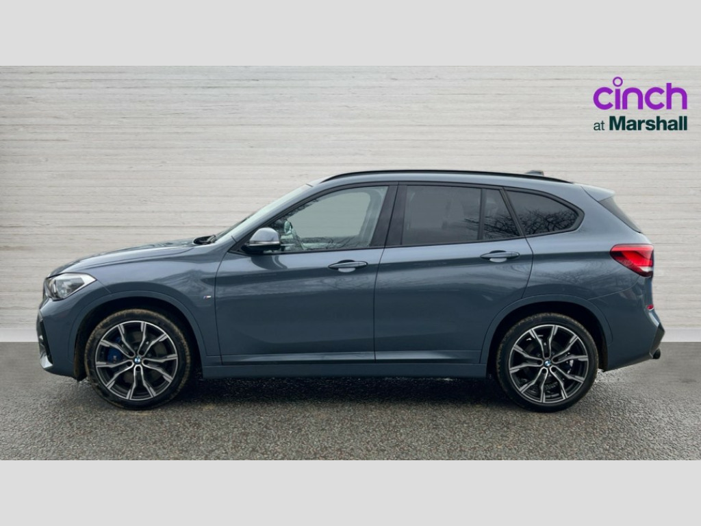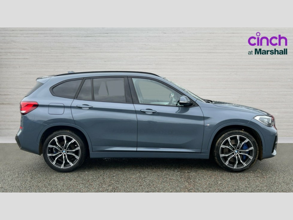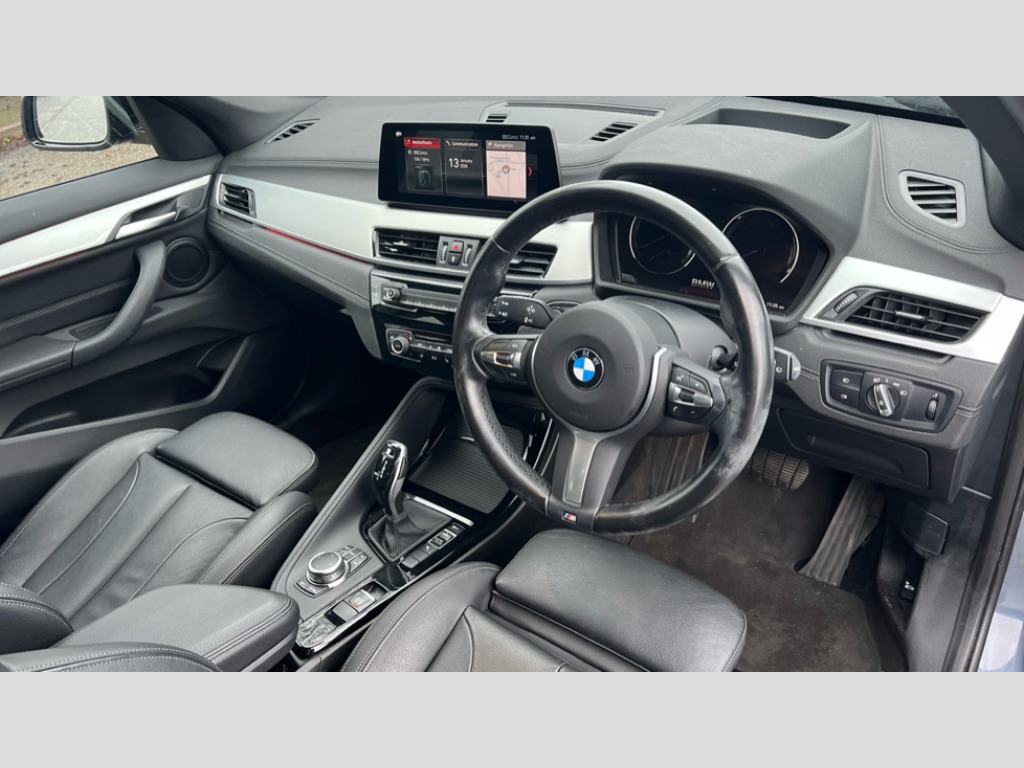 BMW X1 sDrive 18i [136] M Sport 5dr Step Auto Active Guard incl speed limiting and lane departure functions with auto steering, and front collision warning with brake intervention, Ambient temperature display, Apple CarPlay, Arrow pointers, north up, direction of travel and perspective map displays, Attentiveness assist, Automatic tailgate opening, BMW ConnectedDrive, BMW Navigation system with 8.8" monitor and 800X480 pixel resolution, BMW Online services, BMW remote services, BMW Teleservices, Brake pad wear indicator in front and rear, Characteristic map controlled oil pump system, Cruise control with brake assist, Front axle single joint with specific axle kinematics to minimise drive influences on steering + provide increased rigidity agile driving behaviour, Front/rear park distance control (PDC), Instrument cluster with Black optic display featuring superimposed dials and 5.7" colour display, Instrument cluster with speedometer with miles per hour read out, tachometer and fuel gauge, Integrated hard drive with map data updates via USB interface, Lights on warning by audio warning signal when ignition is switched off, On board computer, Operation by iDrive with direct selection buttons and 8 programmable buttons, Optimum shift indicator, Outside temperature gauge, Park assist system, Personal Profile - automatic lock when driving away selectable, Real time traffic information, Rigidly mounted rear subframe - Multi link construction with separate spring / damper configuration and excellent driving characteristics, Service interval indicator, Servotronic PAS, Tyre puncture warning system, 12V compressor with integrated sealant injection bottle and hose, Aluminium lightweight construction including crankcase, Anti-roll bars, Balancer shaft, Double VANOS, Drive performance control with ECO PRO comfort + sport mode, Electronic differential lock control (EDLC), High precision injection, Performance Control, Seven speed dual clutch automatic transmission (DCT), Stop/start function, Turbocharger with Valvetronic, Twin tube gas filled shock absorbers with degressive characteristic curve, DAB Digital radio, Adjustable headlights, Aero curtain, Automatically dimming rear view mirror, BMW Icon design LED daytime driving lights, Body colour bumpers, Body colour door handles, Body colour door mirrors, Body colour wheel arches and side sills, Direction indicator side lights integrated exterior mirrors, Dynamic brake lights, Electric windows - front and rear, with open/close fingertip control, anti-trap facility and comfort closing, Electrically adjustable door mirrors with aspheric on driver side, convex on passenger side with integrated indicators, Exterior mirrors - electrically folding with anti-dazzle, Follow me home headlights, Front air guide finished in black silver, Front air inlets in matt black with silver finisher matt, Front and rear bumper system, Front bumper air intakes with dark shadow finisher, Green tinted heat protection glazing glass, Headlight beam throw control, Heated door mirrors, Heated windscreen washer jets, High level third brake light, Kidney grille with 14 chrome high gloss black vertical bars, LED direction indicator lights in headlight eyebrow, LED front fog lights, Lightweight engineering, M aerodynamic body styling, M logo designation in side chrome, Model designation, Rain sensor including auto headlights activation, Rear bumper with dark shadow and underbody protection in body colour, Rear fog lights, Rear window aerial, Rear window wash/wipe, Reversing light in rear light cluster, Roof mouldings in matt black, Shark fin antenna, Sill cover matt black with matt silver insert, Single chrome exhaust tailpipe, Two eye face design on light, Visible VIN plate, Welcome lighting, 12v power point in centre console, 2 cup holders in front, 3 rear headrests, 40:20:40 split folding rear bench seat, Anthracite floor mats with M specific designation, Anthracite headlining, Boot light, Centre armrest in 20 degree part rear seat backrest, Child seat ISOFIX attachment for two outer rear seats and front passenger seat with anchorage points, Conditioned based service, Driver and front passenger heated seats, Driver/front passenger seat backrest back with luggage net, Dual zone automatic air conditioning, Four grab handles integrated in roof linings, Front and rear side armrests integrated into door trim, Front centre armrest/sliding cover, Front centre interior light over interior mirror and rear centre automatic interior light when door is opened/ignition switched off or via remote key, Front door sill finishers with M designation, Front sports seats, Front/rear adjustable head restraints, Illuminated glovebox, Leather gearknob/gaiter/handbrake grip, LED ambient lighting in door trim, Luggage area underfloor compartment, Luggage compartment access via recessed handle below tailgate, Luggage compartment lighting, Luggage compartment loading edge with stainless steel insert, M Sport nappa leather 3-spoke steering wheel, Manually adjustment steering wheel column, Multifunction steering wheel, Rear coded belt buckles, Standing free front adjustable armrest and fixed in different positions, Steering wheel gearshift paddles, Sunvisors with vanity mirrors and ticket pocket, Extended lights pack - X1, Extended storage package - X1, ABS/EBD, Audio/visual collision warning system, Automatic Stability Control (ASC), Battery safety cut-off, BMW emergency call, Brake drying, Brake energy regeneration, Braking readiness, Collision mitigation braking system, Cornering brake control (CBC), Crash Sensor - activates hazard/interior lighting + unlocks doors, Driver/Front Passenger airbags, Driver/front passenger side airbags, Dynamic brake control, Dynamic stability control + (DSC+), Dynamic Traction Control - DTC, Electronic parking brake, Front and rear head airbags, Front passenger airbag deactivation, Front seatbelt force limiters, Front ventilated disc brakes, Hill start assist, Pyrotechnica