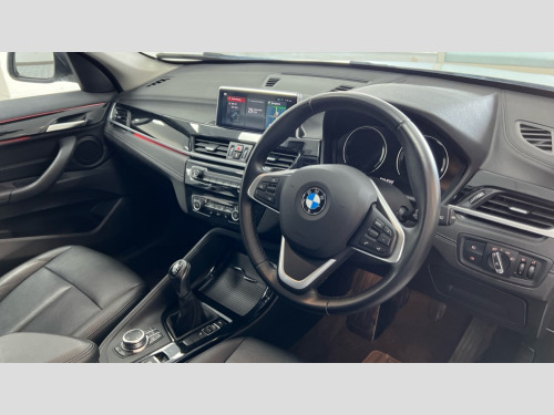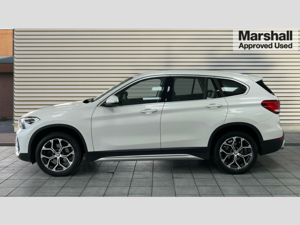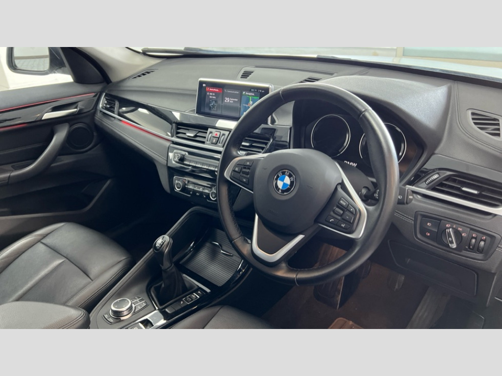 BMW X1 sDrive 18i [136] xLine 5dr Active Guard incl speed limiting and lane departure functions with auto steering, and front collision warning with brake intervention, Ambient temperature display, Apple CarPlay, Arrow pointers, north up, direction of travel and perspective map displays, Attentiveness assist, Automatic tailgate opening, BMW ConnectedDrive, BMW Online services, BMW remote services, BMW Teleservices, Brake pad wear indicator in front and rear, Characteristic map controlled oil pump system, Cruise control with brake assist, Front axle single joint with specific axle kinematics to minimise drive influences on steering + provide increased rigidity agile driving behaviour, Front/rear park distance control (PDC), Instrument cluster with Black optic display featuring superimposed dials and 5.7" colour display, Instrument cluster with speedometer with miles per hour read out, tachometer and fuel gauge, Integrated hard drive with map data updates via USB interface, Lights on warning by audio warning signal when ignition is switched off, On board computer, Operation by iDrive with direct selection buttons and 8 programmable buttons, Optimum shift indicator, Outside temperature gauge, Park assist system, Personal Profile - automatic lock when driving away selectable, Real time traffic information, Rigidly mounted rear subframe - Multi link construction with separate spring / damper configuration and excellent driving characteristics, Service interval indicator, Servotronic PAS, Tyre puncture warning system, 12V compressor with integrated sealant injection bottle and hose, Aluminium lightweight construction including crankcase, Anti-roll bars, Balancer shaft, Double VANOS, Drive performance control with ECO PRO comfort + sport mode, High precision injection, Performance Control, Standard suspension, Stop/start function, Turbocharger with Valvetronic, Twin tube gas filled shock absorbers with degressive characteristic curve, BMW professional radio includes amplifier power 100w, Two mide range speakers in door trims and two woofers as central bass speaker under front seats, DAB Digital radio, Adjustable headlights, Aero curtain, Automatically dimming rear view mirror, BMW Icon design LED daytime driving lights, Body colour bumpers, Body colour door handles, Body colour door mirrors, Direction indicator side lights integrated exterior mirrors, Dynamic brake lights, Electric windows - front and rear, with open/close fingertip control, anti-trap facility and comfort closing, Electrically adjustable door mirrors with aspheric on driver side, convex on passenger side with integrated indicators, Exclusive front door sill finishers with BMW designation, Exterior mirrors - electrically folding with anti-dazzle, Follow me home headlights, Front air guide finished in black silver, Front air inlets in matt black with silver finisher matt, Front and rear bumper system, Front bumper underbody protection in silver matt, Green tinted heat protection glazing glass, Headlight beam throw control, Heated door mirrors, Heated windscreen washer jets, High level third brake light, Kidney grille with 14 chrome matt aluminium fronted with black matt sides vertical bars, LED direction indicator lights in headlight eyebrow, LED front fog lights, Lightweight engineering, Model designation, Rain sensor including auto headlights activation, Rear bumper underbody protection in black silver with silver matt insert, Rear fog lights, Rear window aerial, Rear window wash/wipe, Reversing light in rear light cluster, Roof mouldings in matt black, Shark fin antenna, Sill cover matt black with matt silver insert, Single chrome exhaust tailpipe, Two eye face design on light, Visible VIN plate, Welcome lighting, 12v power point in centre console, 2 cup holders in front, 3 rear headrests, 3 spoke sport leather steering wheel, 40:20:40 split folding rear bench seat, Boot light, Centre armrest in 20 degree part rear seat backrest, Child seat ISOFIX attachment for two outer rear seats and front passenger seat with anchorage points, Conditioned based service, Dakota leather upholstery with perforation and contrast stitching, Driver and front passenger heated seats, Driver/front passenger seat backrest back with luggage net, Dual zone automatic air conditioning, Four grab handles integrated in roof linings, Front and rear side armrests integrated into door trim, Front centre armrest/sliding cover, Front centre interior light over interior mirror and rear centre automatic interior light when door is opened/ignition switched off or via remote key, Front/rear adjustable head restraints, Illuminated glovebox, Leather gearknob/gaiter/handbrake grip, LED ambient lighting in door trim, Luggage area underfloor compartment, Luggage compartment access via recessed handle below tailgate, Luggage compartment lighting, Luggage compartment loading edge with stainless steel insert, Manually adjustment steering wheel column, Multifunction steering wheel, Rear coded belt buckles, Standing free front adjustable armrest and fixed in different positions, Sunvisors with vanity mirrors and ticket pocket, Velour floor carpets, Extended lights pack - X1, Extended storage package - X1, ABS/EBD, Audio/visual collision warning system, Automatic Stability Control (ASC), Battery safety cut-off, BMW emergency call, Brake drying, Brake energy regeneration, Braking readiness, Collision mitigation braking system, Cornering brake control (CBC), Crash Sensor - activates hazard/interior lighting + unlocks doors, Driver/Front Passenger airbags, Driver/front passenger side airbags, Dynamic brake control, Dynamic stability control + (DSC+), Dynamic Traction Control - DTC, Electronic differential lock control (EDLC), Electronic parking brake, Front and rear head airbags, Front passenger airbag deactivation, Front seatbelt force limiters, Front ventilated disc brakes, Hill start assist, Pyrotechnically pre-tensioned front seatbelts, Rear disc brakes, Rear door child safe