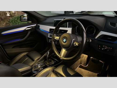 BMW X1 sDrive 18i M Sport 5dr Step Auto Ambient temperature display, Apple CarPlay, Arrow pointers, north up, direction of travel and perspective map displays, Attentiveness assist, Automatic tailgate opening, BMW ConnectedDrive, BMW Navigation system with 8.8" monitor and 800X480 pixel resolution, BMW Online services, BMW remote services, BMW Teleservices, Brake pad wear indicator in front and rear, Characteristic map controlled oil pump system, Front axle single joint with specific axle kinematics to minimise drive influences on steering + provide increased rigidity agile driving behaviour, Front/rear park distance control (PDC), Instrument cluster with Black optic display featuring superimposed dials and 5.7" colour display, Instrument cluster with speedometer with miles per hour read out, tachometer and fuel gauge, Integrated hard drive with map data updates via USB interface, Lights on warning by audio warning signal when ignition is switched off, On board computer, Operation by iDrive with direct selection buttons and 8 programmable buttons, Optimum shift indicator, Outside temperature gauge, Park assist system, Personal Profile - automatic lock when driving away selectable, Real time traffic information, Rigidly mounted rear subframe - Multi link construction with separate spring / damper configuration and excellent driving characteristics, Service interval indicator, Servotronic PAS, Tyre puncture warning system, 12V compressor with integrated sealant injection bottle and hose, Aluminium lightweight construction including crankcase, Anti-roll bars, Balancer shaft, Double VANOS, Drive performance control with ECO PRO comfort + sport mode, High precision injection, Performance Control, Seven speed dual clutch automatic transmission (DCT), Stop/start function, Turbocharger with Valvetronic, Twin tube gas filled shock absorbers with degressive characteristic curve, DAB Digital radio, Adjustable headlights, Aero curtain, Automatically dimming rear view mirror, BMW Icon design LED daytime driving lights, Body colour bumpers, Body colour door handles, Body colour door mirrors, Body colour wheel arches and side sills, Direction indicator side lights integrated exterior mirrors, Dynamic brake lights, Electric windows - front and rear, with open/close fingertip control, anti-trap facility and comfort closing, Electrically adjustable door mirrors with aspheric on driver side, convex on passenger side with integrated indicators, Exterior mirrors - electrically folding with anti-dazzle, Follow me home headlights, Front air guide finished in black silver, Front air inlets in matt black with silver finisher matt, Front and rear bumper system, Front bumper air intakes with dark shadow finisher, Green tinted heat protection glazing glass, Headlight beam throw control, Heated door mirrors, Heated windscreen washer jets, High level third brake light, Kidney grille with 14 chrome high gloss black vertical bars, LED direction indicator lights in headlight eyebrow, LED front fog lights, Lightweight engineering, M aerodynamic body styling, M logo designation in side chrome, Model designation, Rain sensor including auto headlights activation, Rear bumper with dark shadow and underbody protection in body colour, Rear fog lights, Rear window aerial, Rear window wash/wipe, Reversing light in rear light cluster, Roof mouldings in matt black, Shark fin antenna, Sill cover matt black with matt silver insert, Single chrome exhaust tailpipe, Two eye face design on light, Visible VIN plate, Welcome lighting, 12v power point in centre console, 2 cup holders in front, 3 rear headrests, 40:20:40 split folding rear bench seat, Anthracite floor mats with M specific designation, Anthracite headlining, Boot light, Centre armrest in 20 degree part rear seat backrest, Child seat ISOFIX attachment for two outer rear seats and front passenger seat with anchorage points, Conditioned based service, Dakota leather upholstery with perforation and contrast stitching, Driver and front passenger heated seats, Driver/front passenger seat backrest back with luggage net, Driver/passenger sunvisors with ticket holders, Dual zone automatic air conditioning, Four grab handles integrated in roof linings, Front and rear side armrests integrated into door trim, Front centre armrest/sliding cover, Front centre interior light over interior mirror and rear centre automatic interior light when door is opened/ignition switched off or via remote key, Front door sill finishers with M designation, Front sports seats, Front/rear adjustable head restraints, Illuminated glovebox, Leather gearknob/gaiter/handbrake grip, Luggage area underfloor compartment, Luggage compartment access via recessed handle below tailgate, Luggage compartment lighting, Luggage compartment loading edge with stainless steel insert, M Sport nappa leather 3-spoke steering wheel, Manually adjustment steering wheel column, Multifunction steering wheel, Rear coded belt buckles, Standing free front adjustable armrest and fixed in different positions, Steering wheel gearshift paddles, Extended lights pack - X1, Extended storage package - X1, ABS/EBD, Audio/visual collision warning system, Automatic Stability Control (ASC), Battery safety cut-off, BMW emergency call, Brake drying, Brake energy regeneration, Braking readiness, Cornering brake control (CBC), Crash Sensor - activates hazard/interior lighting + unlocks doors, Driver/Front Passenger airbags, Driver/front passenger side airbags, Dynamic brake control, Dynamic stability control + (DSC+), Dynamic Traction Control - DTC, Electronic differential lock control (EDLC), Electronic parking brake, Front and rear head airbags, Front passenger airbag deactivation, Front seatbelt force limiters, Front ventilated disc brakes, Hill start assist, Pyrotechnically pre-tensioned front seatbelts, Rear disc brakes, Rear door child safety locks, Seatbelt security check for driver and front passenger, Side impact protection, Three point seat b