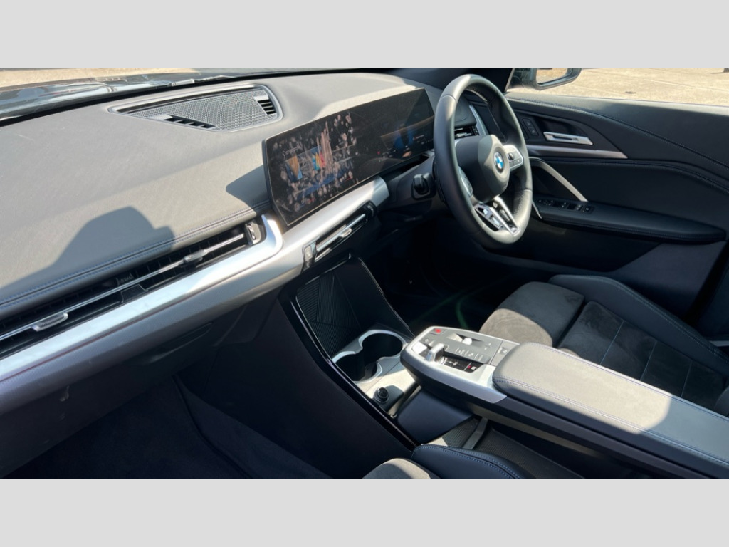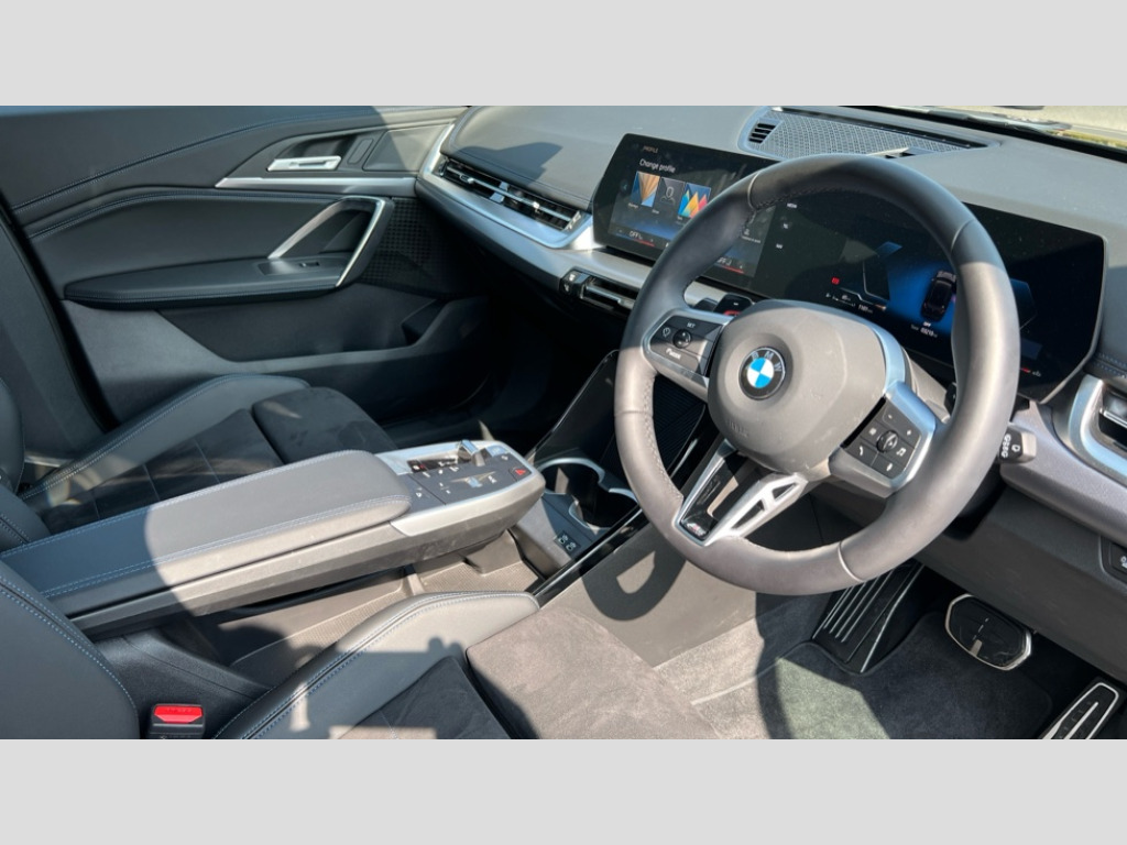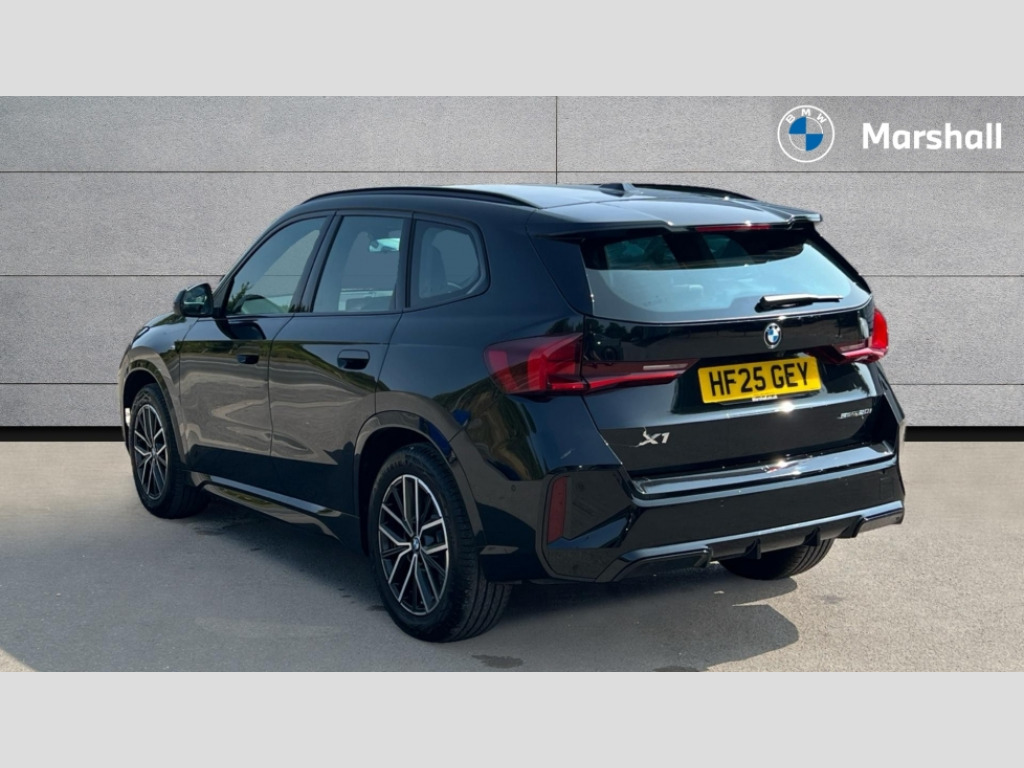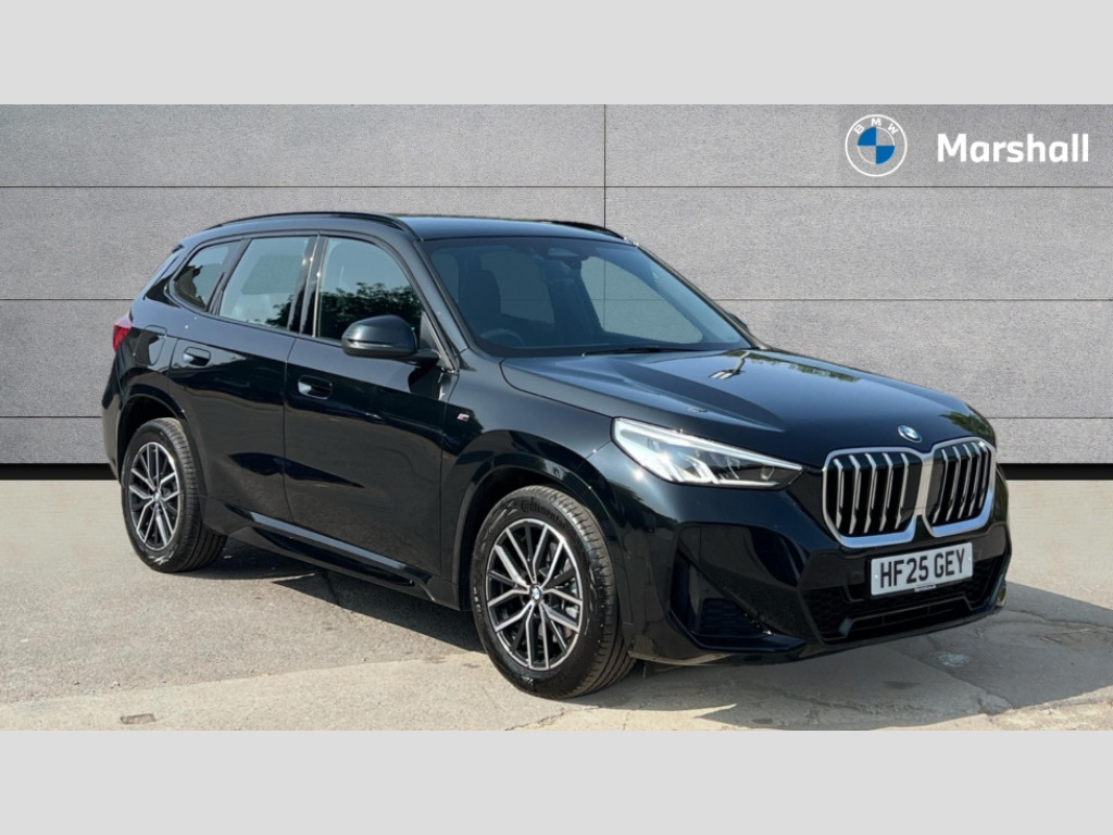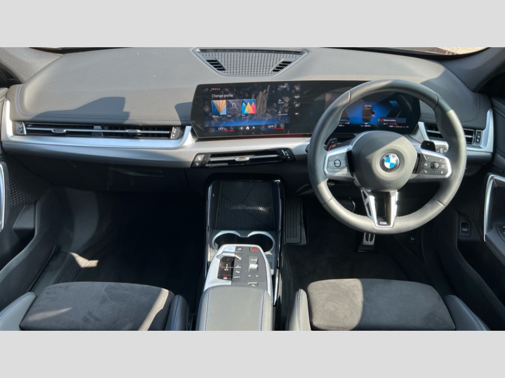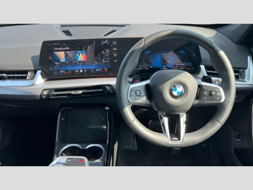 BMW X1 sDrive 20i MHT M Sport 5dr Step Auto Attentiveness assist, Automatic start/stop function, BMW Live Cockpit Plus with 10.25" instrument cluster and 10.7" display, BMW Operating system 9 with BMW Maps, real-time traffic information, in-car experiences, remote services and smartphone integration, BMW Teleservices, Brake pad wear indicator, Condition based service, Connected eDrive Services, Drive off assistant, Electrically opening/closing tailgate with opening/closing with remote control and contactless opening and closing, iDrive controller, Language version English, My Modes, Parking Assistant with Reversing Assistant, active PDC, Lateral Parking Aid, Rear View Camera and Park Distance Control, Personal Profile - automatic lock when driving away selectable, Servotronic PAS, Tyre puncture warning system, Widescreen display, EU6 emissions management, Larger Fuel Tank, M Adaptive suspension, Performance Control, Petrol Particulate Filter, Steptronic transmission with double clutch and gear shift paddles, BMW Personal eSim, DAB Digital radio, Badge on engine compartment lid and tailgate, Body colour door mirrors, Dynamic brake lights, Electric adjustable heated door mirrors, Electric windows - front and rear, with open/close fingertip control, anti-trap facility and comfort closing, Folding door handles integrated flush with surface, Follow me home headlights, Front and rear bumper panel with M specific design, in body colour with inserts in black high gloss, Front door exit lights, Heated rear window, High gloss shadowline, Invisible exhaust tailpipe, Key with M identification, LED 3rd brake light integrated in rear spoiler, LED daytime running lights, LED number plate light, M identification on the sides, M roof rails high gloss shadow line, M specific radiator grille in satinated aluminium, Matt black roof strips, Model inscription on right tailgate, Rain sensor including auto headlights activation, Rear side wing doors, Rear wiper, Sill cover in body colour, Trailer stabilisation logic, Windscreen washer nozzle for rear view camera, Windscreen wipers front with heated washer nozzles, 12V - Power sockets with front centre console and luggage compartment, 2 bag hooks in luggage compartment, 2 cup holders in front, 2 x USB Type C ports for charging in front centre console + 2 x USB Type C ports for charging in rear centre console, 3 rear headrests, 3 seat bench in 2nd row, 3 upper retaining strap clips integrated into rear panels of seat backrests, 4 grab handles, 40:20:40 split folding rear seats, Ambient interior lighting, Anthracite headlining, Anthracite Velour front and rear floormats, Bottle trays in all doors, Child seat ISOFIX attachment for two outer rear seats and front passenger seat with anchorage points, Clothes hook rear, Driver and front passenger heated seats, Dual zone automatic air conditioning, Front and rear door pockets, Front and rear footwell lighting, Front centre console storage compartment, Front/rear adjustable head restraints, Glove compartment, Interior door handle recess light on all doors, Light on right in luggage compartment, M sport leather steering wheel, Manual steering column height and depth adjustment, Middle centre console storage compartment, One piece parcel shelf opens together with tailgate and removable, Rear armrest in door trim panel, Single front passenger seat, Sport leather multifunction steering wheel with thumbrests and operation of instrument display, audio, telephone and driver assistance, Storage compartment net in left side trim panel, Storage compartment with folding cover under centre console armrest cushion, Storage tray in right side trim panel, Tilt adjustment incl. cargo function of 2nd row of seats, Vanity mirror lights, ABS/EBD, Automatic hold function, Automatic Stability Control (ASC), BMW emergency call, Braking readiness, Cornering brake control (CBC), Crash Sensor - activates hazard/interior lighting + unlocks doors, Driver/Front Passenger airbags, Driver/front passenger side airbags, Dry braking, Dynamic brake control, Dynamic stability control + (DSC+), Electromechanical parking brake, Energy recovery system, First aid kit, Front and rear brake discs, Front and rear head airbags, Front passenger airbag deactivation, Integrated brake system, PC iBrake PostCrash approach control warning with light braking function, Rear door child safety locks, Three point seat belts in all seats, Tyre pressure monitor, Warning triangle, Alarm system with tilt sensor, monitoring doors, bonnet interior and tailgate, Closing system with central locking, Locking wheel bolts, Luxury instrument panel, Tyre repair kit plus