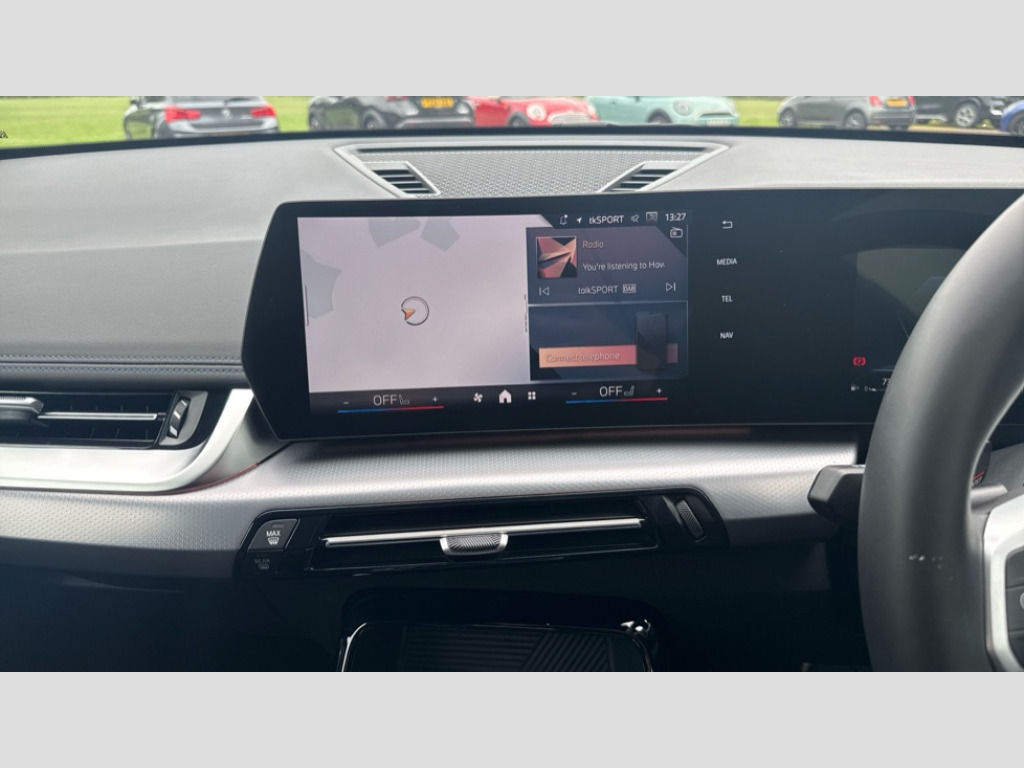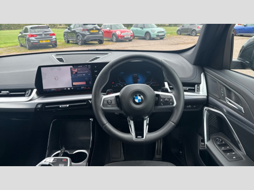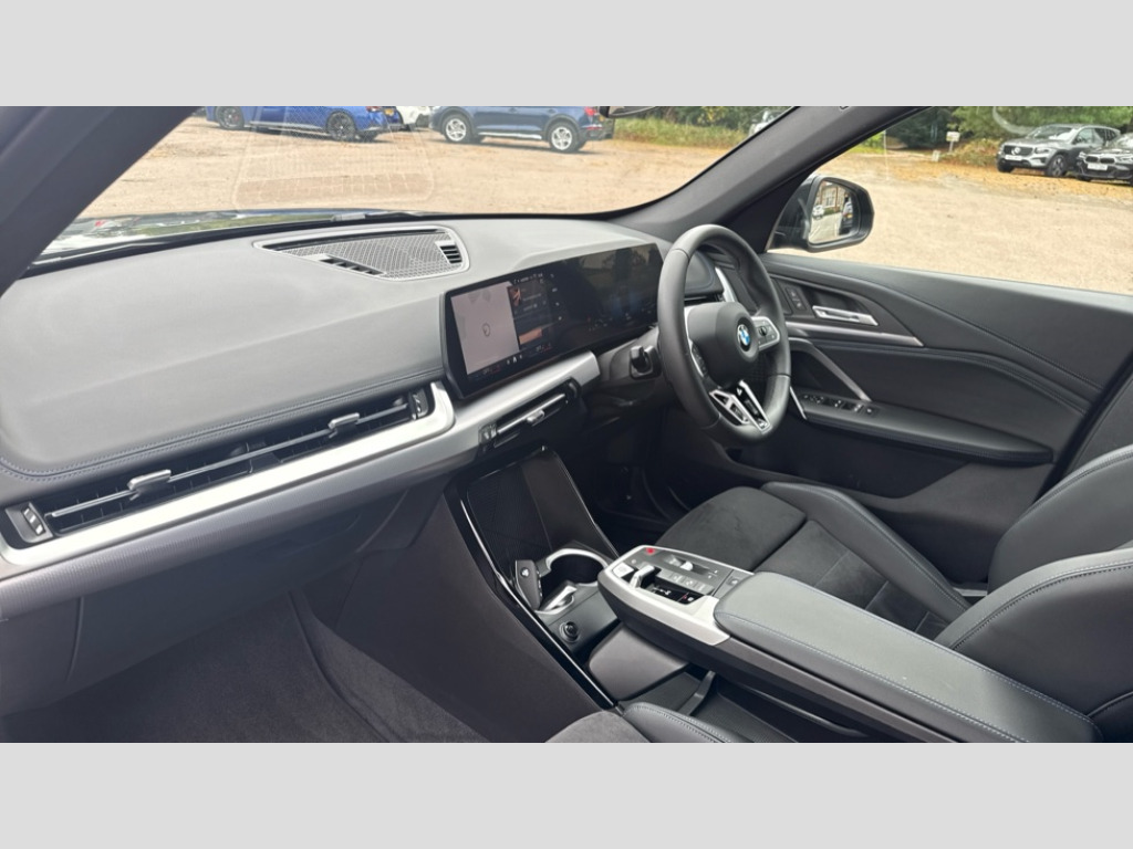 BMW X1 sDrive 20i MHT M Sport 5dr Step Auto Attentiveness assist, Automatic start/stop function, BMW Live Cockpit Plus with 10.25" instrument cluster and 10.7" display, BMW Operating system 9 with BMW Maps, real-time traffic information, in-car experiences, remote services and smartphone integration, BMW Teleservices, Brake pad wear indicator, Condition based service, Connected eDrive Services, Drive off assistant, Electrically opening/closing tailgate with opening/closing with remote control and contactless opening and closing, iDrive controller, Language version English, My Modes, Parking Assistant with Reversing Assistant, active PDC, Lateral Parking Aid, Rear View Camera and Park Distance Control, Personal Profile - automatic lock when driving away selectable, Servotronic PAS, Tyre puncture warning system, Widescreen display, EU6 emissions management, Larger Fuel Tank, M Adaptive suspension, Performance Control, Petrol Particulate Filter, Steptronic transmission with double clutch and gear shift paddles, BMW Personal eSim, DAB Digital radio, Badge on engine compartment lid and tailgate, Body colour door mirrors, Dynamic brake lights, Electric adjustable heated door mirrors, Electric windows - front and rear, with open/close fingertip control, anti-trap facility and comfort closing, Folding door handles integrated flush with surface, Follow me home headlights, Front and rear bumper panel with M specific design, in body colour with inserts in black high gloss, Front door exit lights, Heated rear window, High gloss shadowline, Invisible exhaust tailpipe, Key with M identification, LED 3rd brake light integrated in rear spoiler, LED daytime running lights, LED number plate light, M identification on the sides, M roof rails high gloss shadow line, M specific radiator grille in satinated aluminium, Matt black roof strips, Model inscription on right tailgate, Rain sensor including auto headlights activation, Rear side wing doors, Rear wiper, Sill cover in body colour, Trailer stabilisation logic, Windscreen washer nozzle for rear view camera, Windscreen wipers front with heated washer nozzles, 12V - Power sockets with front centre console and luggage compartment, 2 bag hooks in luggage compartment, 2 cup holders in front, 2 x USB Type C ports for charging in front centre console + 2 x USB Type C ports for charging in rear centre console, 3 rear headrests, 3 seat bench in 2nd row, 3 upper retaining strap clips integrated into rear panels of seat backrests, 4 grab handles, 40:20:40 split folding rear seats, Ambient interior lighting, Anthracite headlining, Anthracite Velour front and rear floormats, Bottle trays in all doors, Child seat ISOFIX attachment for two outer rear seats and front passenger seat with anchorage points, Clothes hook rear, Driver and front passenger heated seats, Dual zone automatic air conditioning, Front and rear door pockets, Front and rear footwell lighting, Front centre console storage compartment, Front/rear adjustable head restraints, Glove compartment, Interior door handle recess light on all doors, Light on right in luggage compartment, M sport leather steering wheel, Manual steering column height and depth adjustment, Middle centre console storage compartment, One piece parcel shelf opens together with tailgate and removable, Rear armrest in door trim panel, Single front passenger seat, Sport leather multifunction steering wheel with thumbrests and operation of instrument display, audio, telephone and driver assistance, Storage compartment net in left side trim panel, Storage compartment with folding cover under centre console armrest cushion, Storage tray in right side trim panel, Tilt adjustment incl. cargo function of 2nd row of seats, Vanity mirror lights, ABS/EBD, Automatic hold function, Automatic Stability Control (ASC), BMW emergency call, Braking readiness, Cornering brake control (CBC), Crash Sensor - activates hazard/interior lighting + unlocks doors, Driver/Front Passenger airbags, Driver/front passenger side airbags, Dry braking, Dynamic brake control, Dynamic stability control + (DSC+), Electromechanical parking brake, Energy recovery system, First aid kit, Front and rear brake discs, Front and rear head airbags, Front passenger airbag deactivation, Integrated brake system, PC iBrake PostCrash approach control warning with light braking function, Rear door child safety locks, Three point seat belts in all seats, Tyre pressure monitor, Warning triangle, Alarm system with tilt sensor, monitoring doors, bonnet interior and tailgate, Closing system with central locking, Locking wheel bolts, Luxury instrument panel, Tyre repair kit plus