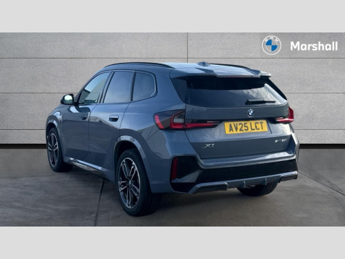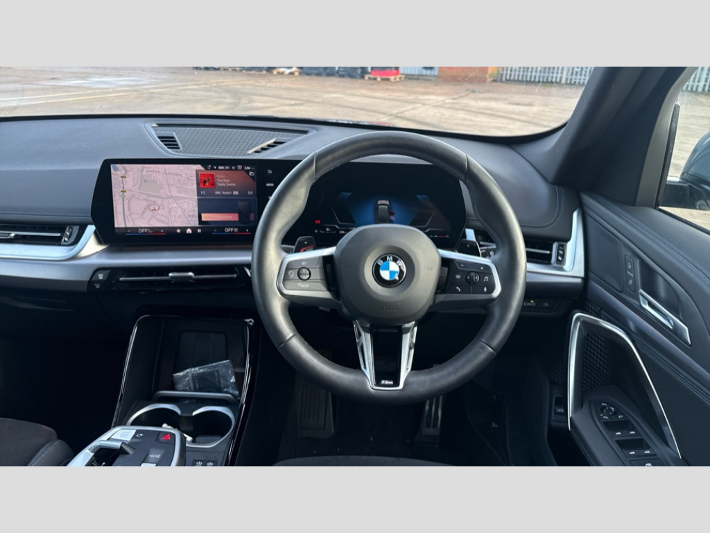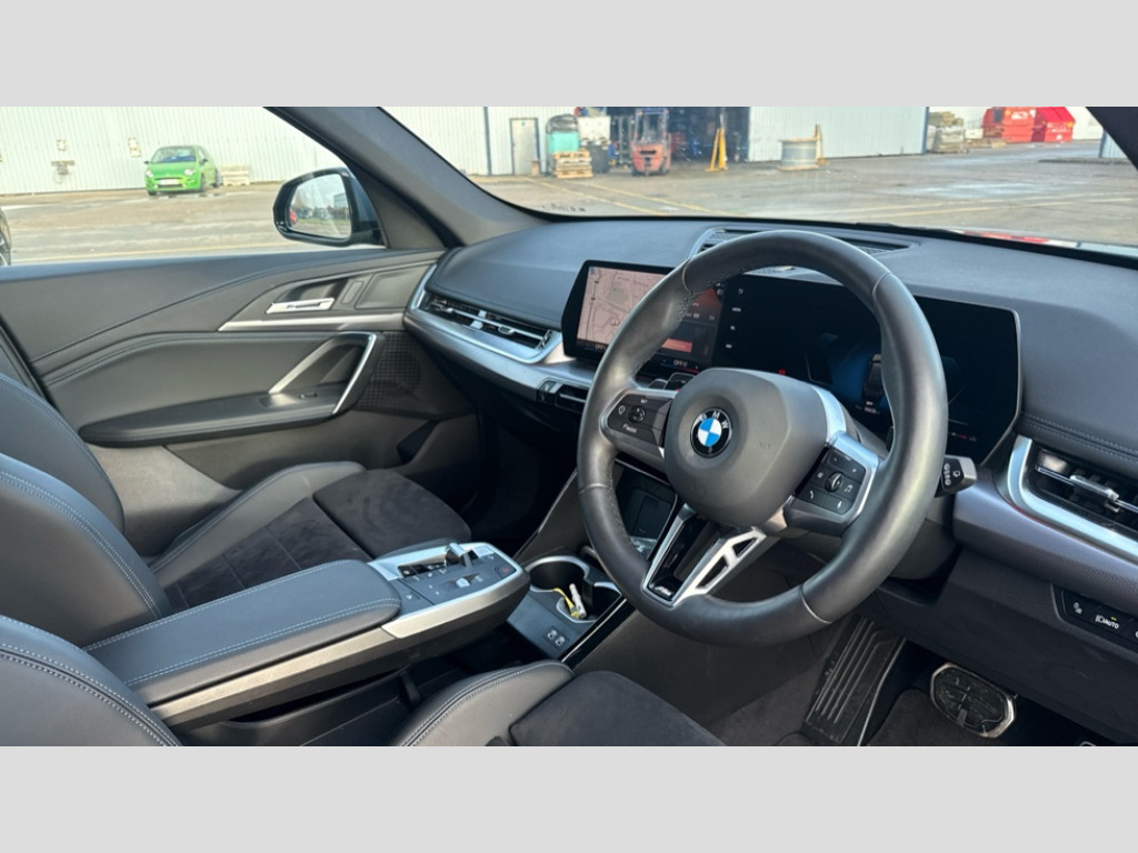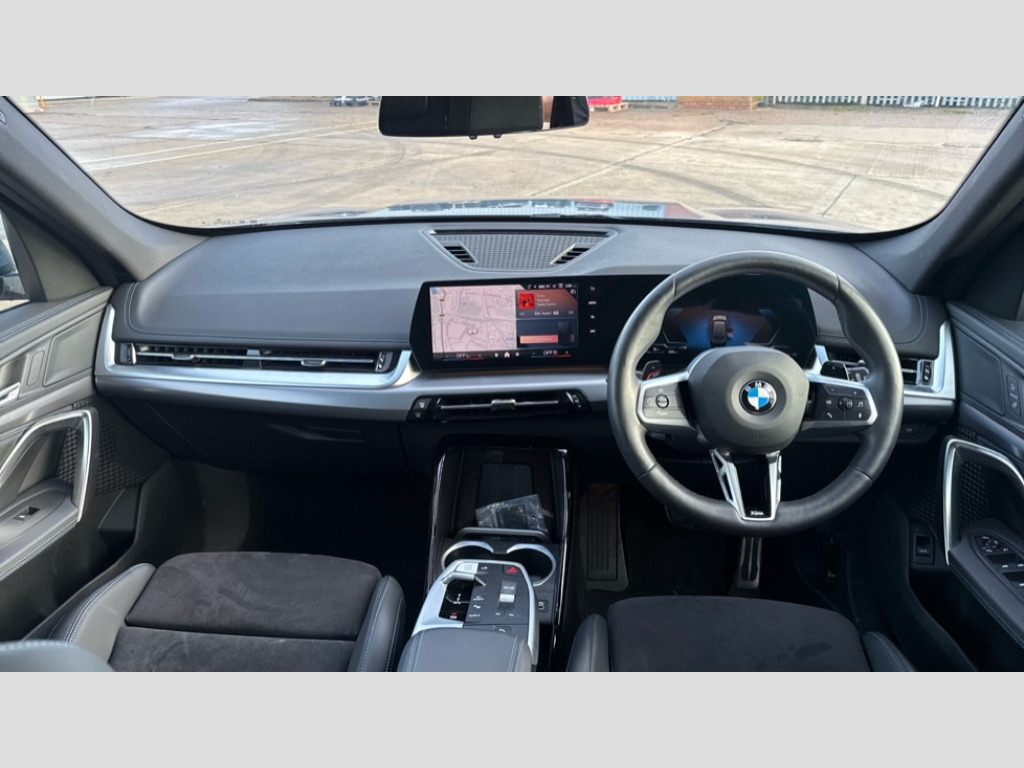 BMW X1 sDrive 20i MHT M Sport 5dr Step Auto Attentiveness assist, Automatic start/stop function, BMW Operating system 9 with BMW Maps, real-time traffic information, in-car experiences, remote services and smartphone integration, BMW Teleservices, Brake pad wear indicator, Condition based service, Connected eDrive Services, Drive off assistant, Electrically opening/closing tailgate with opening/closing with remote control and contactless opening and closing, iDrive controller, Language version English, My Modes, Personal Profile - automatic lock when driving away selectable, Servotronic PAS, Tyre puncture warning system, Widescreen display, EU6 emissions management, Larger Fuel Tank, M Adaptive suspension, Performance Control, Petrol Particulate Filter, Steptronic transmission with double clutch and gear shift paddles, BMW Personal eSim, DAB Digital radio, Badge on engine compartment lid and tailgate, Body colour door mirrors, Dynamic brake lights, Electric adjustable heated door mirrors, Electric windows - front and rear, with open/close fingertip control, anti-trap facility and comfort closing, Folding door handles integrated flush with surface, Follow me home headlights, Front and rear bumper panel with M specific design, in body colour with inserts in black high gloss, Front door exit lights, Heated rear window, High gloss shadowline, Invisible exhaust tailpipe, Key with M identification, LED 3rd brake light integrated in rear spoiler, LED daytime running lights, LED number plate light, M Extended high gloss shadowline exterior trim, M identification on the sides, M lights shadowline, M roof rails high gloss shadow line, M specific radiator grille in satinated aluminium, M spoiler in black high gloss, Matt black roof strips, Model inscription on right tailgate, Rain sensor including auto headlights activation, Rear side wing doors, Rear wiper, Sill cover in body colour, Trailer stabilisation logic, Windscreen washer nozzle for rear view camera, Windscreen wipers front with heated washer nozzles, 12V - Power sockets with front centre console and luggage compartment, 2 bag hooks in luggage compartment, 2 cup holders in front, 2 x USB Type C ports for charging in front centre console + 1 x USB Type C ports for charging in rear centre console, 3 rear headrests, 3 seat bench in 2nd row, 3 upper retaining strap clips integrated into rear panels of seat backrests, 4 grab handles, 40:20:40 split folding rear seats, Ambient interior lighting, Anthracite headlining, Anthracite Velour front and rear floormats, Bottle trays in all doors, Child seat ISOFIX attachment for two outer rear seats and front passenger seat with anchorage points, Clothes hook rear, Driver and front passenger heated seats, Dual zone automatic air conditioning, Front and rear door pockets, Front and rear footwell lighting, Front centre console storage compartment, Front/rear adjustable head restraints, Glove compartment, Interior door handle recess light on all doors, Light on right in luggage compartment, M sport leather steering wheel, Manual steering column height and depth adjustment, Middle centre console storage compartment, One piece parcel shelf opens together with tailgate and removable, Rear armrest in door trim panel, Single front passenger seat, Sport leather multifunction steering wheel with thumbrests and operation of instrument display, audio, telephone and driver assistance, Storage compartment net in left side trim panel, Storage compartment with folding cover under centre console armrest cushion, Storage tray in right side trim panel, Tilt adjustment incl. cargo function of 2nd row of seats, Vanity mirror lights, ABS/EBD, Automatic hold function, Automatic Stability Control (ASC), BMW emergency call, Braking readiness, Cornering brake control (CBC), Crash Sensor - activates hazard/interior lighting + unlocks doors, Driver/Front Passenger airbags, Driver/front passenger side airbags, Dry braking, Dynamic brake control, Dynamic stability control + (DSC+), Electromechanical parking brake, Energy recovery system, First aid kit, Front and rear brake discs, Front and rear head airbags, Front passenger airbag deactivation, Integrated brake system, M Seatbelts, PC iBrake PostCrash approach control warning with light braking function, Rear door child safety locks, Three point seat belts in all seats, Tyre pressure monitor, Warning triangle, Alarm system with tilt sensor, monitoring doors, bonnet interior and tailgate, Closing system with central locking, Locking wheel bolts, Luxury instrument panel, Tyre repair kit plus