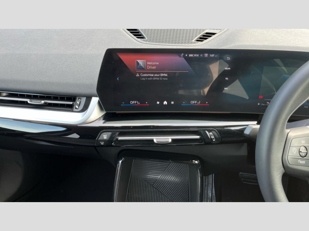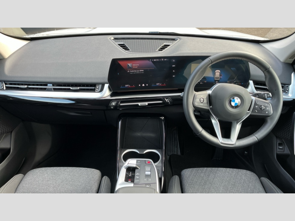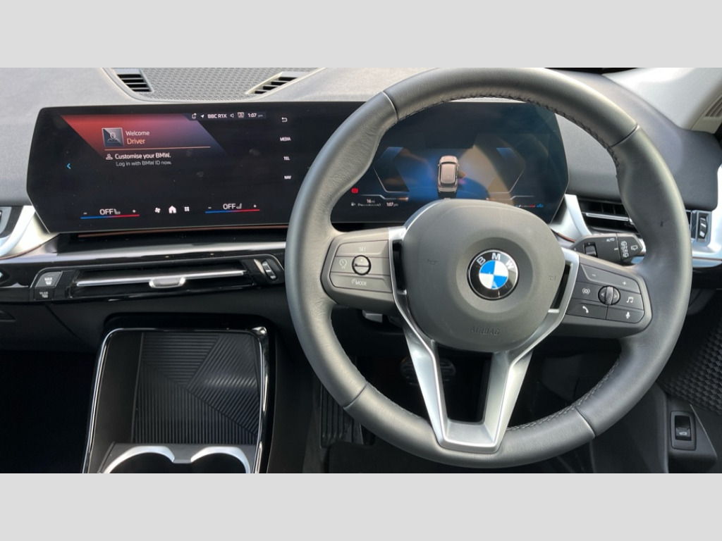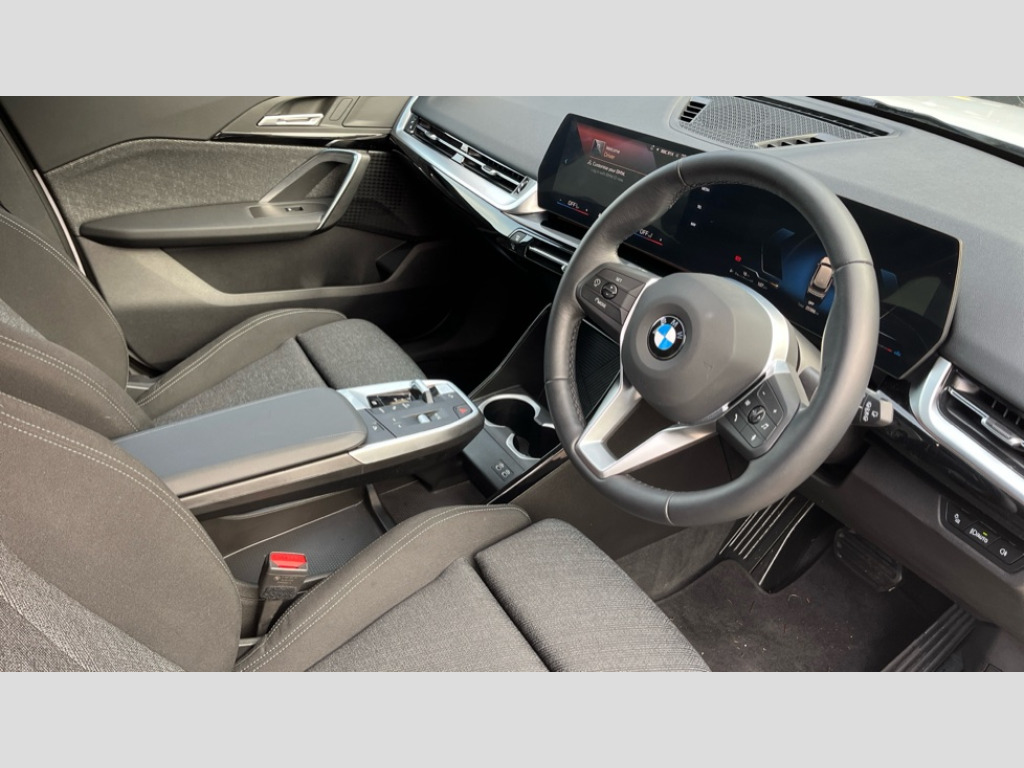 BMW X1 sDrive 20i MHT Sport 5dr Step Auto Attentiveness assist, Automatic start/stop function, BMW Operating system 9 with BMW Maps, real-time traffic information, in-car experiences, remote services and smartphone integration, BMW Teleservices, Brake pad wear indicator, Condition based service, Connected eDrive Services, Drive off assistant, Electrically opening/closing tailgate with opening/closing with remote control and contactless opening and closing, iDrive controller, Language version English, My Modes, Personal Profile - automatic lock when driving away selectable, Servotronic PAS, Tyre puncture warning system, Widescreen display, EU6 emissions management, Larger Fuel Tank, Performance Control, Petrol Particulate Filter, Standard suspension, Steptronic transmission with double clutch, BMW Personal eSim, DAB Digital radio, Badge on engine compartment lid and tailgate, BMW radiator grille with grille struts, end face black high-gloss, radiator grille frame chrome high-gloss, Dynamic brake lights, Electric adjustable heated door mirrors, Electric windows - front and rear, with open/close fingertip control, anti-trap facility and comfort closing, Folding door handles integrated flush with surface, Follow me home headlights, Front bumper panel with air inlet in matt black, Front door exit lights, Heated rear window, High gloss shadowline, Invisible exhaust tailpipe, LED 3rd brake light integrated in rear spoiler, LED daytime running lights, LED number plate light, M roof rails high gloss shadow line, Matt black roof strips, Rain sensor including auto headlights activation, Rear bumper panel with two L-shaped trims In pearl chrome, Rear side wing doors, Rear wiper, Sill cover in body colour, Trailer stabilisation logic, Windscreen washer nozzle for rear view camera, Windscreen wipers front with heated washer nozzles, 12V - Power sockets with front centre console and luggage compartment, 2 bag hooks in luggage compartment, 2 cup holders in front, 2 x USB Type C ports for charging in front centre console + 2 x USB Type C ports for charging in rear centre console, 3 rear headrests, 3 seat bench in 2nd row, 3 upper retaining strap clips integrated into rear panels of seat backrests, 40:20:40 split folding rear seats, Ambient interior lighting, Anthracite Velour front and rear floormats, Bottle trays in all doors, Child seat ISOFIX attachment for two outer rear seats and front passenger seat with anchorage points, Clothes hook rear, Driver and front passenger heated seats, Dual zone automatic air conditioning, Front and rear door pockets, Front centre console storage compartment, Front/rear adjustable head restraints, Glove compartment, Light on right in luggage compartment, Manual steering column height and depth adjustment, Middle centre console storage compartment, One piece parcel shelf opens together with tailgate and removable, Rear armrest in door trim panel, Single front passenger seat, Sport leather multifunction steering wheel with thumbrests and operation of instrument display, audio, telephone and driver assistance, Storage compartment net in left side trim panel, Storage compartment with folding cover under centre console armrest cushion, Storage tray in right side trim panel, Tilt adjustment incl. cargo function of 2nd row of seats, Trim elements on steering wheel spokes in pearl chrome, ABS/EBD, Automatic hold function, Automatic Stability Control (ASC), BMW emergency call, Braking readiness, Cornering brake control (CBC), Crash Sensor - activates hazard/interior lighting + unlocks doors, Driver/Front Passenger airbags, Driver/front passenger side airbags, Dry braking, Dynamic brake control, Dynamic stability control + (DSC+), Electromechanical parking brake, Energy recovery system, First aid kit, Front and rear brake discs, Front and rear head airbags, Front passenger airbag deactivation, Integrated brake system, PC iBrake PostCrash approach control warning with light braking function, Rear door child safety locks, Three point seat belts in all seats, Tyre pressure monitor, Warning triangle, Alarm system with tilt sensor, monitoring doors, bonnet interior and tailgate, Closing system with central locking, Locking wheel bolts, Tyre repair kit (including Tyre sealant and 12V Compressor)