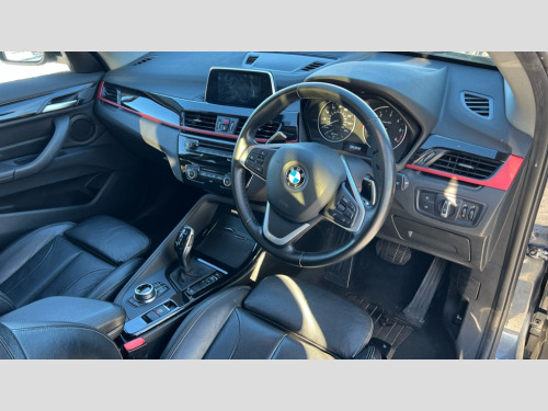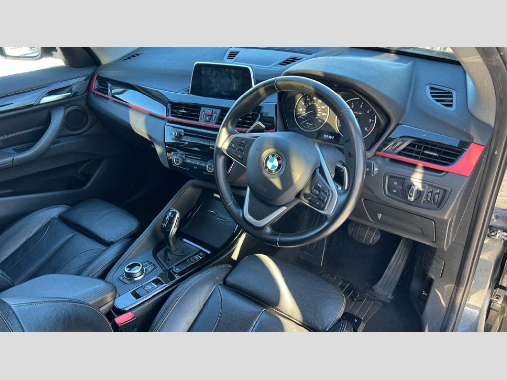 BMW X1 xDrive 20d Sport 5dr Step Auto Active Guard incl speed limiting and lane departure functions with auto steering, and front collision warning with brake intervention, Ambient temperature display, Attentiveness assist, Automatic tailgate opening, BMW Online services, BMW remote services, BMW Teleservices, Lights on warning, On board computer, Outside temperature gauge, Real time traffic information, Service interval indicator, Servotronic PAS, Speed limiter, Stop/start button, Tyre puncture warning system, Electronic differential lock, Performance Control, 2 USB ports in centre console, BMW professional radio with CD player, DAB Digital radio, USB/audio interface, Adjustable headlights, Body colour bumpers, Body colour door handles, Electrically adjustable and heated door mirrors, Exclusive door sill finishers, Fingertip control / anti-trap function on electric window, Follow me home headlights, Front and rear electric windows, Front fog lights, Heat insulating tinted glass, Heated windscreen washer jets, kidney grille with high gloss black vertical slats, LED daytime running lights, Rain sensor including auto headlights activation, Rear window wash/wipe, Twin chrome exhaust tailpipes x2, Welcome home function, 12v power point in centre console, 12V power socket in passenger footwell, 3 rear headrests, 3 spoke sport leather steering wheel, 4 grab handles, Black door sill finishers with BMW designation, Boot light, Centre console with cupholders, Driver/passenger sunvisors with ticket holders, Drivers folding storage compartment, Dual zone automatic air conditioning, Front and rear door armrests, Front centre armrest/sliding cover, Front passenger isofix child seat attachment, Front sports seats, Front/rear adjustable head restraints, Illuminated glovebox, Isofix rear child seat preparation, Leather gearknob/gaiter/handbrake grip, LED ambient lighting in door trim, Luggage area underfloor compartment, Luggage compartment lighting, Multifunction steering wheel, Rake/reach adjustable steering wheel, Sliding/split/reclining 40/20/40 rear seat with 60/40 split rear seat base, Steering wheel gearshift paddles, Velour floor carpets, Extended storage package - X1, 3 rear 3 point seatbelts, ABS/EBD, Audio/visual collision warning system, Automatic Stability Control (ASC), BMW emergency call, Cornering brake control (CBC), Crash Sensor - activates hazard/interior lighting + unlocks doors, Driver/Front Passenger airbags, Driver/front passenger side airbags, DSC - Dynamic Stability Control, Dynamic brake control, Dynamic Traction Control - DTC, Electronic parking brake, Front and rear head airbags, Front passenger airbag deactivation, Front seatbelt force limiters, Hill start assist, Pyrotechnically pre-tensioned front seatbelts, Rear door child safety locks, Seatbelt warning, Tyre pressure monitor, Warning triangle and first aid kit, Auto door lock when driving, Central locking including boot and fuel flap with deadlocks, Engine immobiliser, Locking wheel nuts, Remote control Thatcham category 1 alarm, High gloss black centre console, Low rolling resistance tyres