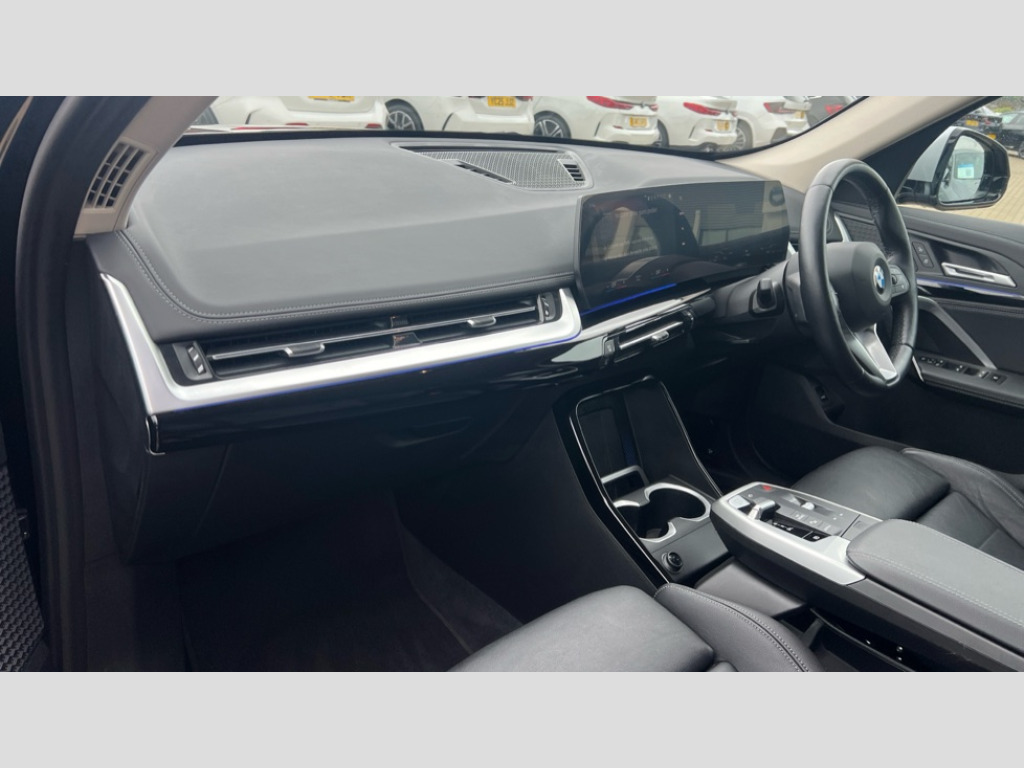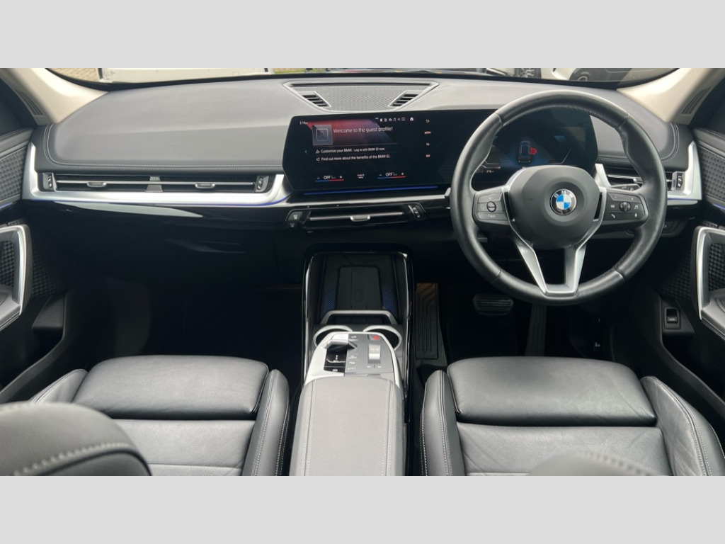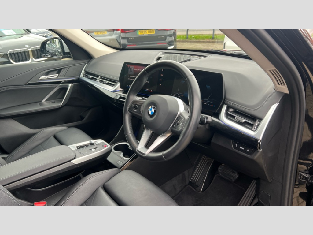 BMW X1 xDrive 23d MHT xLine 5dr Step Auto Active Guard + lane departure warning, speed limiting, front collision warning, Left turn warning with brake function and evasion assist, Attentiveness assist, Automatic start/stop function, BMW Live Cockpit Plus with 10.25" instrument cluster and 10.7" display, BMW Online services, BMW Teleservices, Brake pad wear indicator, Condition based service, Connected eDrive Services, Drive off assistant, Electrically opening/closing tailgate with opening/closing with remote control and contactless opening and closing, iDrive controller, Language version English, My Modes, Parking Assistant with Reversing Assistant, active PDC, Lateral Parking Aid, Rear View Camera and Park Distance Control, Personal Profile - automatic lock when driving away selectable, Servotronic PAS, Tyre puncture warning system, Widescreen display, Diesel particulate filter, Diesel with SCR emission control system, Performance Control, Standard suspension, Steptronic transmission with double clutch, xDrive intelligent four wheel drive system, DAB Digital radio, Aluminium satinated roof rails, Badge on engine compartment lid and tailgate, BMW individual exterior line aluminium satinated window frame and window guide rail in front door/pillar trim/door mirrors in high gloss black, Contoured rear roof spoiler in vehicle colour with side aeroblades in black high-gloss, Dynamic brake lights, Electric adjustable heated door mirrors, Electric windows - front and rear, with open/close fingertip control, anti-trap facility and comfort closing, Folding door handles integrated flush with surface, Follow me home headlights, Front bumper panel with air inlet in matt black, Front door exit lights, Front entry sills aluminium inserts with BMW inscription, Heated rear window, Invisible exhaust tailpipe, LED 3rd brake light integrated in rear spoiler, LED daytime running lights, LED number plate light, Mirror caps painted in contrasting colour dark grey, Model inscription on right tailgate, Radiator grille frame in aluminium matt, Radiator grille struts in aluminium matt, Rain sensor including auto headlights activation, Rear bumper panel with two L-shaped trims In pearl chrome, Rear side wing doors, Rear wiper, Roof trim strips painted in body colour, Trailer stabilisation logic, Welcome lighting, Windscreen washer nozzle for rear view camera, Windscreen wipers with front and rear heated washer nozzles, 12V - Power sockets with front centre console and luggage compartment, 2 cup holders in front, 2 x USB Type C ports for charging and data transmission (front centre console) and 2 x USB Type C ports for charging (rear centre console), 3 rear headrests, 3 seat bench in 2nd row, 3 upper retaining strap clips integrated into rear panels of seat backrests, 40:20:40 split folding rear seats, Ambient interior lighting, Anthracite Velour front and rear floormats, Bottle trays in all doors, Child seat ISOFIX attachment for two outer rear seats and front passenger seat with anchorage points, Clothes hook rear, Driver and front passenger heated seats, Dual zone automatic air conditioning, Front and rear door pockets, Front centre console storage compartment, Front sports seats, Front/rear adjustable head restraints, Glove compartment, Light on right in luggage compartment, Manual steering column height and depth adjustment, Map pockets, Middle centre console storage compartment, Rear armrest in door trim panel, Single front passenger seat, Sport leather multifunction steering wheel with thumbrests and operation of instrument display, audio, telephone and driver assistance, Storage compartment with folding cover under centre console armrest cushion, Trim elements on steering wheel spokes in pearl chrome, Connected Package Professional - X1, ABS/EBD, Automatic hold function, Automatic Stability Control (ASC), Black belt painted in contrasting colour dark grey, BMW emergency call, Braking readiness, Cornering brake control (CBC), Crash Sensor - activates hazard/interior lighting + unlocks doors, Driver/Front Passenger airbags, Driver/front passenger side airbags, Dry braking, Dynamic stability control + (DSC+), Electromechanical parking brake, Energy recovery system, Front and rear brake discs, Front and rear head airbags, Front passenger airbag deactivation, Integrated brake system, PC iBrake PostCrash approach control warning with light braking function, Rear door child safety locks, Three point seat belts in all seats, Tyre pressure monitor, Warning triangle, Alarm system with tilt sensor, monitoring doors, bonnet interior and tailgate, Closing system with central locking, Locking wheel bolts, Luxury instrument panel, Tyre repair kit (including Tyre sealant and 12V Compressor)