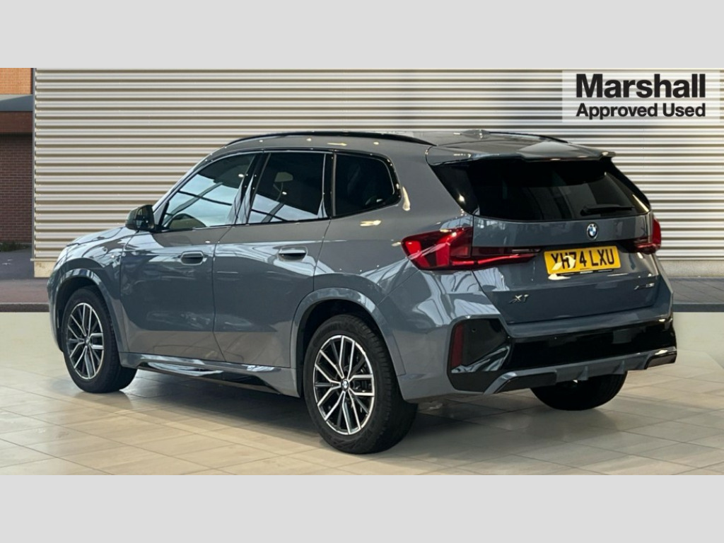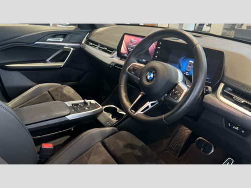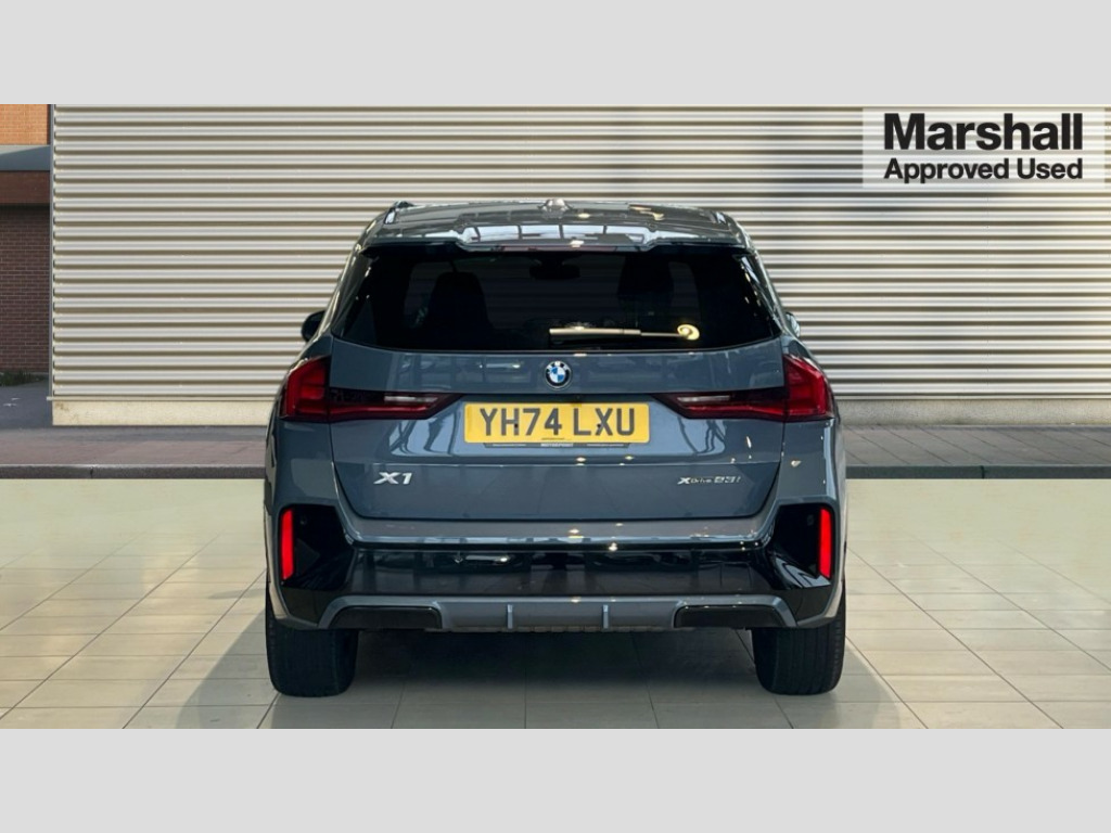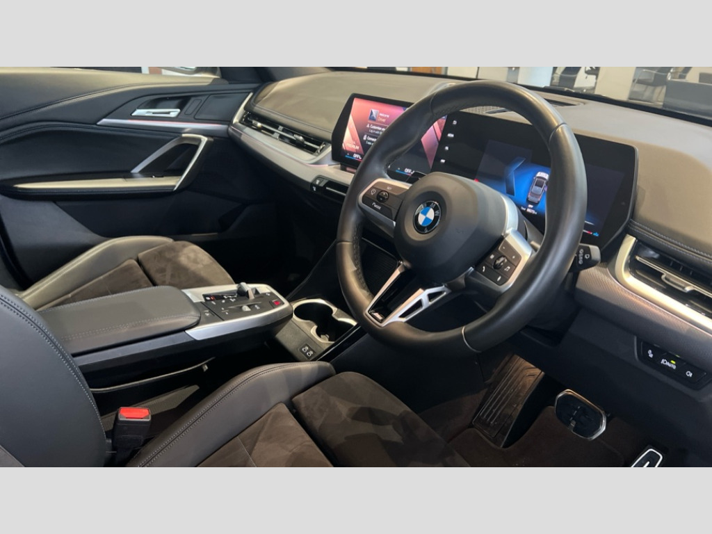 BMW X1 xDrive 23i MHT M Sport 5dr Step Auto Attentiveness assist, Automatic start/stop function, BMW Live Cockpit Plus with 10.25" instrument cluster and 10.7" display, BMW Operating system 9 with BMW Maps, real-time traffic information, in-car experiences, remote services and smartphone integration, BMW Teleservices, Brake pad wear indicator, Condition based service, Connected eDrive Services, Drive off assistant, Electrically opening/closing tailgate with opening/closing with remote control and contactless opening and closing, iDrive controller, Language version English, My Modes, Parking Assistant with Reversing Assistant, active PDC, Lateral Parking Aid, Rear View Camera and Park Distance Control, Personal Profile - automatic lock when driving away selectable, Servotronic PAS, Tyre puncture warning system, Widescreen display, EU6 emissions management, Larger Fuel Tank, M Adaptive suspension, Performance Control, Petrol Particulate Filter, Steptronic transmission with double clutch and gear shift paddles, xDrive intelligent four wheel drive system, BMW Personal eSim, DAB Digital radio, Badge on engine compartment lid and tailgate, Dynamic brake lights, Electric adjustable heated door mirrors, Electric windows - front and rear, with open/close fingertip control, anti-trap facility and comfort closing, Folding door handles integrated flush with surface, Follow me home headlights, Front and rear bumper panel with M specific design, in body colour with inserts in black high gloss, Front door exit lights, Front entry sills aluminium inserts with M inscription, Heated rear window, High gloss shadowline, Invisible exhaust tailpipe, Key with M identification, LED 3rd brake light integrated in rear spoiler, LED daytime running lights, LED number plate light, M identification on the sides, M roof rails high gloss shadow line, M specific radiator grille in satinated aluminium, Matt black roof strips, Rain sensor including auto headlights activation, Rear side wing doors, Rear wiper, Side sill covers with M specific design in body colour, Trailer stabilisation logic, Windscreen washer nozzle for rear view camera, Windscreen wipers front with heated washer nozzles, 12V - Power sockets with front centre console and luggage compartment, 2 bag hooks in luggage compartment, 2 cup holders in front, 2 x USB Type C ports for charging in front centre console + 2 x USB Type C ports for charging in rear centre console, 3 rear headrests, 3 seat bench in 2nd row, 3 upper retaining strap clips integrated into rear panels of seat backrests, 40:20:40 split folding rear seats, Ambient interior lighting, Anthracite headlining, Anthracite Velour front and rear floormats, Bottle trays in all doors, Child seat ISOFIX attachment for two outer rear seats and front passenger seat with anchorage points, Clothes hook rear, Driver and front passenger heated seats, Dual zone automatic air conditioning, Front and rear door pockets, Front centre console storage compartment, Front/rear adjustable head restraints, Glove compartment, Light on right in luggage compartment, M sport leather steering wheel, Manual steering column height and depth adjustment, Middle centre console storage compartment, One piece parcel shelf opens together with tailgate and removable, Rear armrest in door trim panel, Single front passenger seat, Sport leather multifunction steering wheel with thumbrests and operation of instrument display, audio, telephone and driver assistance, Storage compartment net in left side trim panel, Storage compartment with folding cover under centre console armrest cushion, Storage tray in right side trim panel, Tilt adjustment incl. cargo function of 2nd row of seats, ABS/EBD, Automatic hold function, Automatic Stability Control (ASC), BMW emergency call, Braking readiness, Cornering brake control (CBC), Crash Sensor - activates hazard/interior lighting + unlocks doors, Driver/Front Passenger airbags, Driver/front passenger side airbags, Dry braking, Dynamic brake control, Dynamic stability control + (DSC+), Electromechanical parking brake, Energy recovery system, First aid kit, Front and rear brake discs, Front and rear head airbags, Front passenger airbag deactivation, Integrated brake system, PC iBrake PostCrash approach control warning with light braking function, Rear door child safety locks, Three point seat belts in all seats, Tyre pressure monitor, Warning triangle, Alarm system with tilt sensor, monitoring doors, bonnet interior and tailgate, Closing system with central locking, Locking wheel bolts, Luxury instrument panel, Tyre repair kit (including Tyre sealant and 12V Compressor)