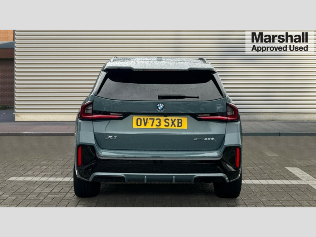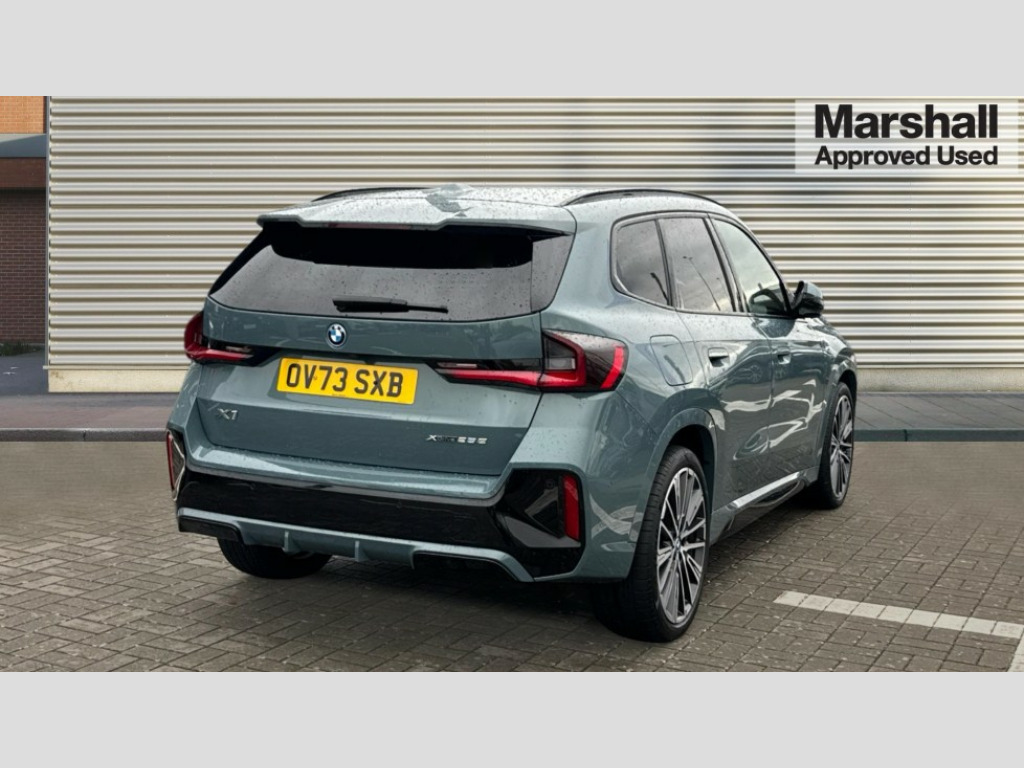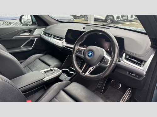 BMW X1 xDrive 25e M Sport 5dr Step Auto Attentiveness assist, Automatic start/stop function, BMW Live Cockpit Plus with 10.25" instrument cluster and 10.7" display, BMW Operating system 9 with BMW Maps, real-time traffic information, in-car experiences, remote services and smartphone integration, BMW Teleservices, Brake pad wear indicator, Condition based service, Connected eDrive Services, Drive off assistant, Electrically opening/closing tailgate with opening/closing with remote control and contactless opening and closing, iDrive controller, Language version English, My Modes, Parking Assistant with Reversing Assistant, active PDC, Lateral Parking Aid, Rear View Camera and Park Distance Control, Personal Profile - automatic lock when driving away selectable, Servotronic PAS, Tyre puncture warning system, Widescreen display, 45 Litre fuel tank, eDrive exterior sound, EU6 emissions management, Fast charging cable professional mode 3 for public charging, M Adaptive suspension, Performance Control, Petrol Particulate Filter, Steptronic transmission with double clutch and gear shift paddles, xDrive intelligent four wheel drive system, DAB Digital radio, Badge on engine compartment lid and tailgate, Dynamic brake lights, Electric adjustable heated door mirrors, Electric windows - front and rear, with open/close fingertip control, anti-trap facility and comfort closing, Folding door handles integrated flush with surface, Follow me home headlights, Front and rear bumper panel with M specific design, in body colour with inserts in black high gloss, Front door exit lights, Front entry sills aluminium inserts with M inscription, Heated rear window, High gloss shadow line incl A/B/C-pillar panel/window frame/recess finish strip/window rail front door/mirror frame/cover panel in high gloss black, Invisible exhaust tailpipe, Key with M identification, LED 3rd brake light integrated in rear spoiler, LED daytime running lights, LED number plate light, M identification on the sides, M roof rails high gloss shadow line, M specific radiator grille in satinated aluminium, Matt black roof strips, Rain sensor including auto headlights activation, Rear side wing doors, Rear wiper, Side sill covers with M specific design in body colour, Trailer stabilisation logic, Windscreen washer nozzle for rear view camera, Windscreen wipers front with heated washer nozzles, 12V - Power sockets with front centre console and luggage compartment, 2 bag hooks in luggage compartment, 2 cup holders in front, 2 x USB Type C ports for charging and data transmission (front centre console) and 2 x USB Type C ports for charging (rear centre console), 3 rear headrests, 3 seat bench in 2nd row, 3 upper retaining strap clips integrated into rear panels of seat backrests, 40:20:40 split folding rear seats, Ambient interior lighting, Anthracite headlining, Anthracite Velour front and rear floormats, Bottle trays in all doors, Child seat ISOFIX attachment for two outer rear seats and front passenger seat with anchorage points, Clothes hook rear, Driver and front passenger heated seats, Dual zone automatic air conditioning, Front and rear door pockets, Front centre console storage compartment, Front/rear adjustable head restraints, Glove compartment, Light on right in luggage compartment, M sport leather steering wheel, Manual steering column height and depth adjustment, Map pockets, Middle centre console storage compartment, One piece parcel shelf opens together with tailgate and removable, Rear armrest in door trim panel, Single front passenger seat, Sport leather multifunction steering wheel with thumbrests and operation of instrument display, audio, telephone and driver assistance, Storage compartment net in left side trim panel, Storage compartment with folding cover under centre console armrest cushion, Storage tray in right side trim panel, Tilt adjustment incl. cargo function of 2nd row of seats, ABS/EBD, Automatic hold function, Automatic Stability Control (ASC), BMW emergency call, Braking readiness, Cornering brake control (CBC), Crash Sensor - activates hazard/interior lighting + unlocks doors, Driver/Front Passenger airbags, Driver/front passenger side airbags, Dry braking, Dynamic brake control, Dynamic stability control + (DSC+), Electromechanical parking brake, Energy recovery system, First aid kit, Front and rear brake discs, Front and rear head airbags, Front passenger airbag deactivation, Integrated brake system, PC iBrake PostCrash approach control warning with light braking function, Rear door child safety locks, Three point seat belts in all seats, Tyre pressure monitor, Warning triangle, Alarm system with tilt sensor, monitoring doors, bonnet interior and tailgate, Closing system with central locking, Locking wheel bolts, Luxury instrument panel, Tyre repair kit (including Tyre sealant and 12V Compressor)