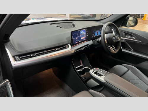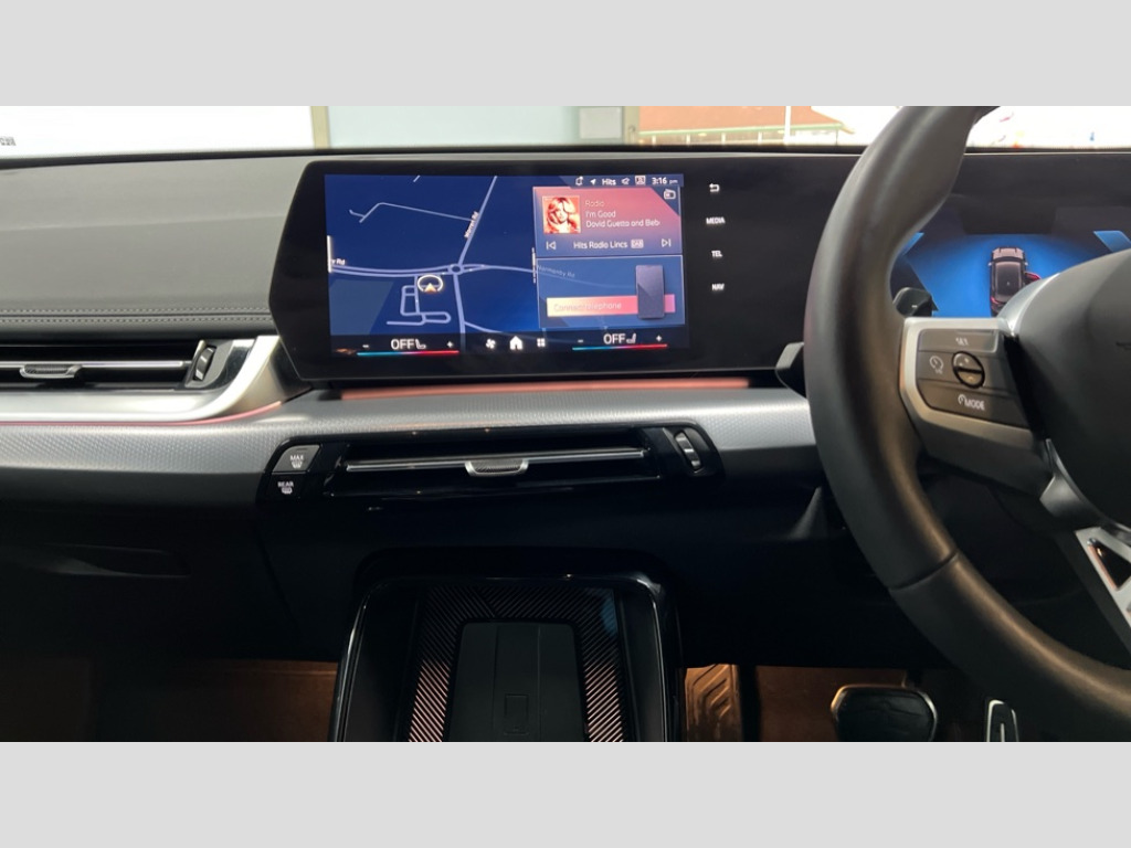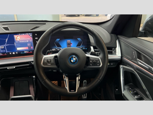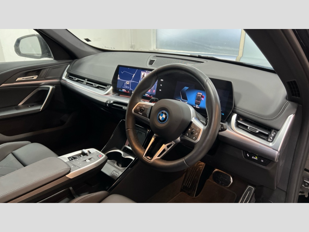 BMW X1 xDrive 25e M Sport 5dr Step Auto Attentiveness assist, Automatic start/stop function, BMW Live Cockpit Plus with 10.25" instrument cluster and 10.7" display, BMW Operating system 9 with BMW Maps, real-time traffic information, in-car experiences, remote services and smartphone integration, BMW Teleservices, Brake pad wear indicator, Condition based service, Connected eDrive Services, Drive off assistant, Electrically opening/closing tailgate with opening/closing with remote control and contactless opening and closing, iDrive controller, Language version English, My Modes, Parking Assistant with Reversing Assistant, active PDC, Lateral Parking Aid, Rear View Camera and Park Distance Control, Personal Profile - automatic lock when driving away selectable, Servotronic PAS, Tyre puncture warning system, Widescreen display, 11 kW AC charging power, eDrive exterior sound, EU6 emissions management, Fast charging cable professional mode 3 for public charging, M Adaptive suspension, Performance Control, Petrol Particulate Filter, Steptronic transmission with double clutch and gear shift paddles, xDrive intelligent four wheel drive system, BMW Personal eSim, DAB Digital radio, Badge on engine compartment lid and tailgate, Body colour door mirrors, Dynamic brake lights, Electric adjustable heated door mirrors, Electric windows - front and rear, with open/close fingertip control, anti-trap facility and comfort closing, Folding door handles integrated flush with surface, Follow me home headlights, Front and rear bumper panel with M specific design, in body colour with inserts in black high gloss, Front door exit lights, Heated rear window, High gloss shadowline, Invisible exhaust tailpipe, Key with M identification, LED 3rd brake light integrated in rear spoiler, LED daytime running lights, LED number plate light, M identification on the sides, M roof rails high gloss shadow line, M specific radiator grille in satinated aluminium, Matt black roof strips, Model inscription on right tailgate, Rain sensor including auto headlights activation, Rear side wing doors, Rear wiper, Sill cover in body colour, Trailer stabilisation logic, Windscreen washer nozzle for rear view camera, Windscreen wipers front with heated washer nozzles, 12V - Power sockets with front centre console and luggage compartment, 2 bag hooks in luggage compartment, 2 cup holders in front, 2 x USB Type C ports for charging in front centre console + 2 x USB Type C ports for charging in rear centre console, 3 rear headrests, 3 seat bench in 2nd row, 3 upper retaining strap clips integrated into rear panels of seat backrests, 4 grab handles, 40:20:40 split folding rear seats, Ambient interior lighting, Anthracite headlining, Anthracite Velour front and rear floormats, Bottle trays in all doors, Child seat ISOFIX attachment for two outer rear seats and front passenger seat with anchorage points, Clothes hook rear, Driver and front passenger heated seats, Dual zone automatic air conditioning, Front and rear door pockets, Front and rear footwell lighting, Front centre console storage compartment, Front/rear adjustable head restraints, Glove compartment, Interior door handle recess light on all doors, Light on right in luggage compartment, M sport leather steering wheel, Manual steering column height and depth adjustment, Middle centre console storage compartment, One piece parcel shelf opens together with tailgate and removable, Rear armrest in door trim panel, Single front passenger seat, Sport leather multifunction steering wheel with thumbrests and operation of instrument display, audio, telephone and driver assistance, Storage compartment net in left side trim panel, Storage compartment with folding cover under centre console armrest cushion, Storage tray in right side trim panel, Tilt adjustment incl. cargo function of 2nd row of seats, Vanity mirror lights, ABS/EBD, Automatic hold function, Automatic Stability Control (ASC), BMW emergency call, Braking readiness, Cornering brake control (CBC), Crash Sensor - activates hazard/interior lighting + unlocks doors, Driver/Front Passenger airbags, Driver/front passenger side airbags, Dry braking, Dynamic brake control, Dynamic stability control + (DSC+), Electromechanical parking brake, Energy recovery system, First aid kit, Front and rear brake discs, Front and rear head airbags, Front passenger airbag deactivation, Integrated brake system, PC iBrake PostCrash approach control warning with light braking function, Rear door child safety locks, Three point seat belts in all seats, Tyre pressure monitor, Warning triangle, Alarm system with tilt sensor, monitoring doors, bonnet interior and tailgate, Closing system with central locking, Locking wheel bolts, Luxury instrument panel, Tyre repair kit plus