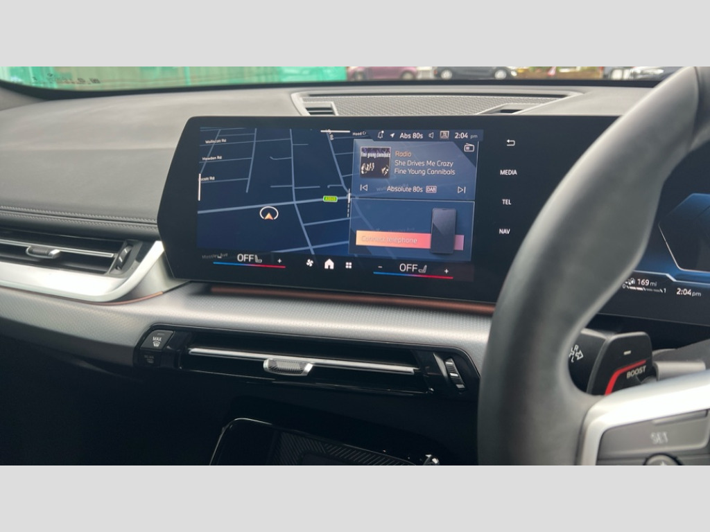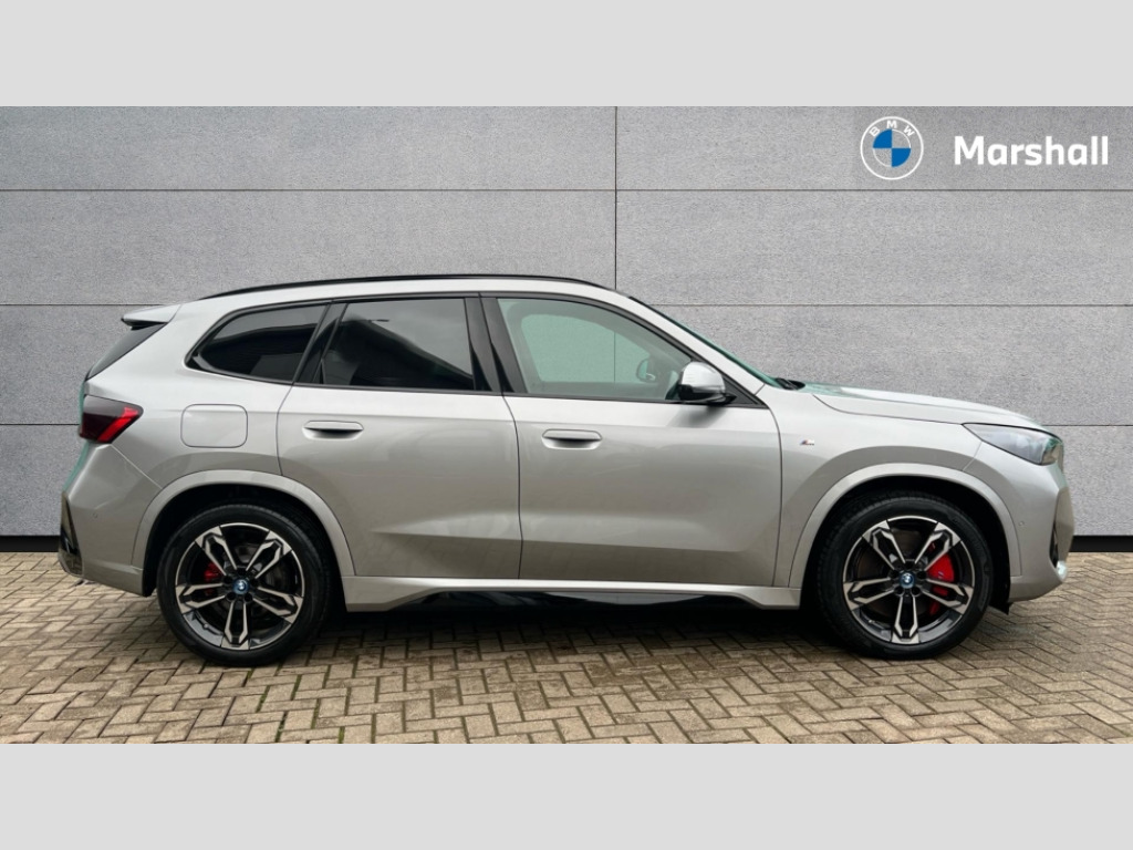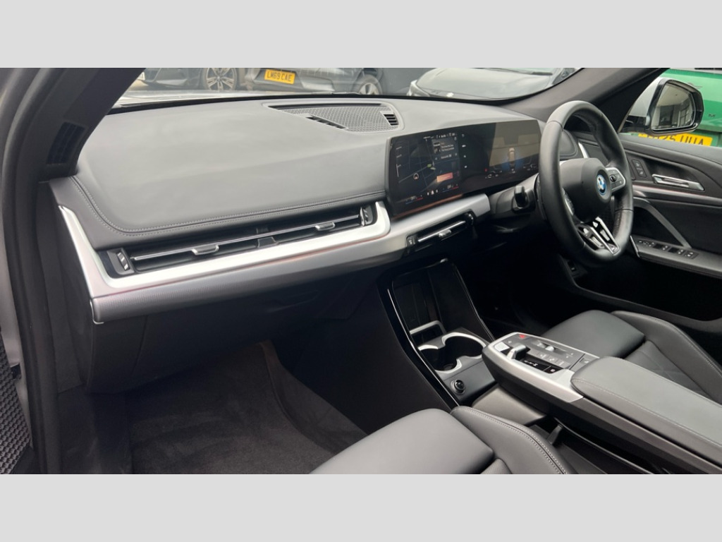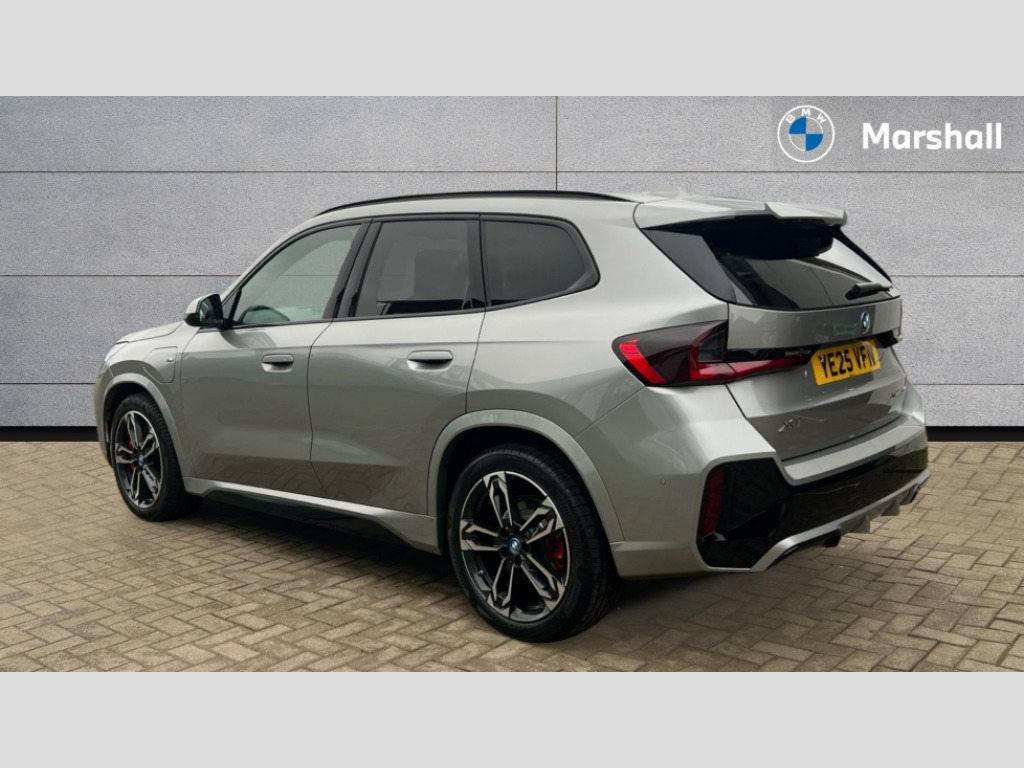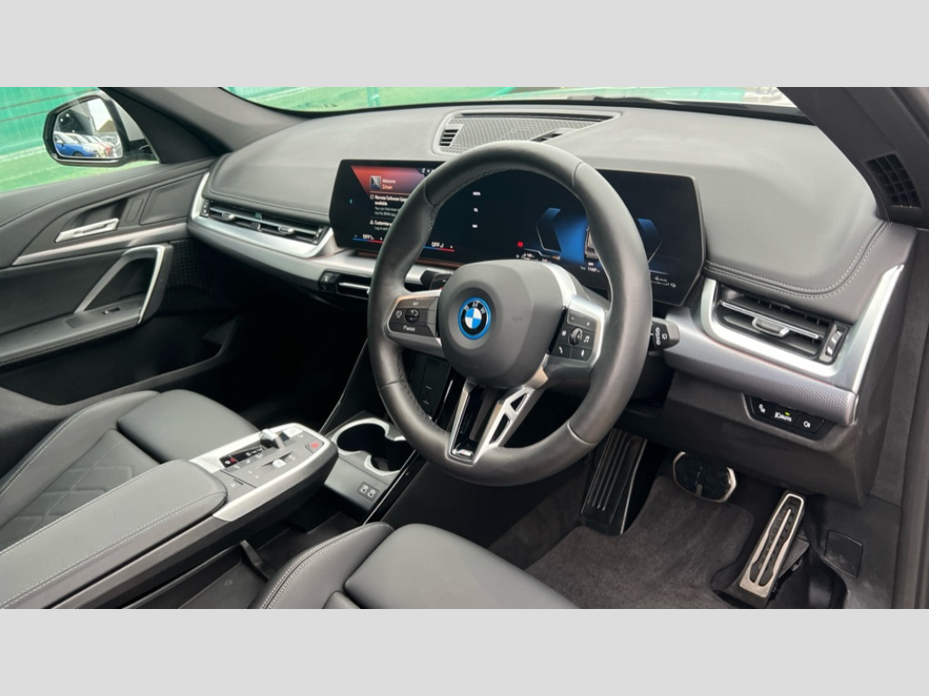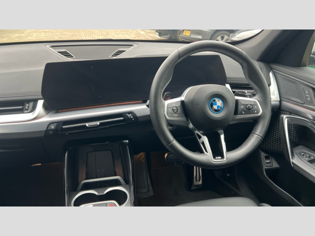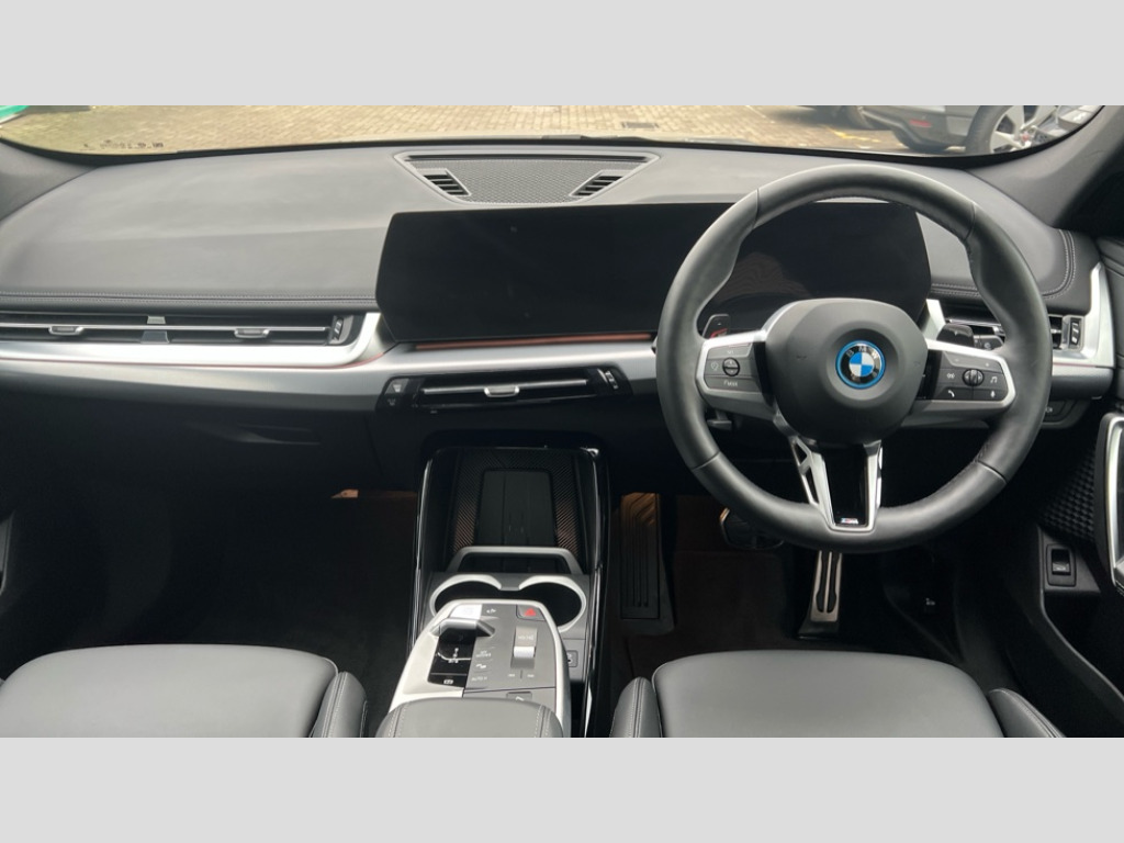 BMW X1 xDrive 25e M Sport 5dr Step Auto Attentiveness assist, Automatic start/stop function, BMW Operating system 9 with BMW Maps, real-time traffic information, in-car experiences, remote services and smartphone integration, BMW Teleservices, Brake pad wear indicator, Condition based service, Connected eDrive Services, Drive off assistant, Electrically opening/closing tailgate with opening/closing with remote control and contactless opening and closing, iDrive controller, Language version English, My Modes, Personal Profile - automatic lock when driving away selectable, Servotronic PAS, Tyre puncture warning system, Widescreen display, 11 kW AC charging power, eDrive exterior sound, EU6 emissions management, Fast charging cable professional mode 3 for public charging, M Adaptive suspension, Performance Control, Petrol Particulate Filter, Steptronic transmission with double clutch and gear shift paddles, xDrive intelligent four wheel drive system, BMW Personal eSim, DAB Digital radio, Badge on engine compartment lid and tailgate, Body colour door mirrors, Dynamic brake lights, Electric adjustable heated door mirrors, Electric windows - front and rear, with open/close fingertip control, anti-trap facility and comfort closing, Folding door handles integrated flush with surface, Follow me home headlights, Front and rear bumper panel with M specific design, in body colour with inserts in black high gloss, Front door exit lights, Heated rear window, High gloss shadowline, Invisible exhaust tailpipe, Key with M identification, LED 3rd brake light integrated in rear spoiler, LED daytime running lights, LED number plate light, M Extended high gloss shadowline exterior trim, M identification on the sides, M lights shadowline, M roof rails high gloss shadow line, M specific radiator grille in satinated aluminium, M spoiler in black high gloss, Matt black roof strips, Model inscription on right tailgate, Rain sensor including auto headlights activation, Rear side wing doors, Rear wiper, Sill cover in body colour, Trailer stabilisation logic, Windscreen washer nozzle for rear view camera, Windscreen wipers front with heated washer nozzles, 12V - Power sockets with front centre console and luggage compartment, 2 bag hooks in luggage compartment, 2 cup holders in front, 2 x USB Type C ports for charging in front centre console + 2 x USB Type C ports for charging in rear centre console, 3 rear headrests, 3 seat bench in 2nd row, 3 upper retaining strap clips integrated into rear panels of seat backrests, 4 grab handles, 40:20:40 split folding rear seats, Ambient interior lighting, Anthracite headlining, Anthracite Velour front and rear floormats, Bottle trays in all doors, Child seat ISOFIX attachment for two outer rear seats and front passenger seat with anchorage points, Clothes hook rear, Driver and front passenger heated seats, Dual zone automatic air conditioning, Front and rear door pockets, Front and rear footwell lighting, Front centre console storage compartment, Front/rear adjustable head restraints, Glove compartment, Interior door handle recess light on all doors, Light on right in luggage compartment, M sport leather steering wheel, Manual steering column height and depth adjustment, Middle centre console storage compartment, One piece parcel shelf opens together with tailgate and removable, Rear armrest in door trim panel, Single front passenger seat, Sport leather multifunction steering wheel with thumbrests and operation of instrument display, audio, telephone and driver assistance, Storage compartment net in left side trim panel, Storage compartment with folding cover under centre console armrest cushion, Storage tray in right side trim panel, Tilt adjustment incl. cargo function of 2nd row of seats, Vanity mirror lights, ABS/EBD, Automatic hold function, Automatic Stability Control (ASC), BMW emergency call, Braking readiness, Cornering brake control (CBC), Crash Sensor - activates hazard/interior lighting + unlocks doors, Driver/Front Passenger airbags, Driver/front passenger side airbags, Dry braking, Dynamic brake control, Dynamic stability control + (DSC+), Electromechanical parking brake, Energy recovery system, First aid kit, Front and rear brake discs, Front and rear head airbags, Front passenger airbag deactivation, Integrated brake system, M Seatbelts, PC iBrake PostCrash approach control warning with light braking function, Rear door child safety locks, Three point seat belts in all seats, Tyre pressure monitor, Warning triangle, Alarm system with tilt sensor, monitoring doors, bonnet interior and tailgate, Closing system with central locking, Locking wheel bolts, Luxury instrument panel, Tyre repair kit plus