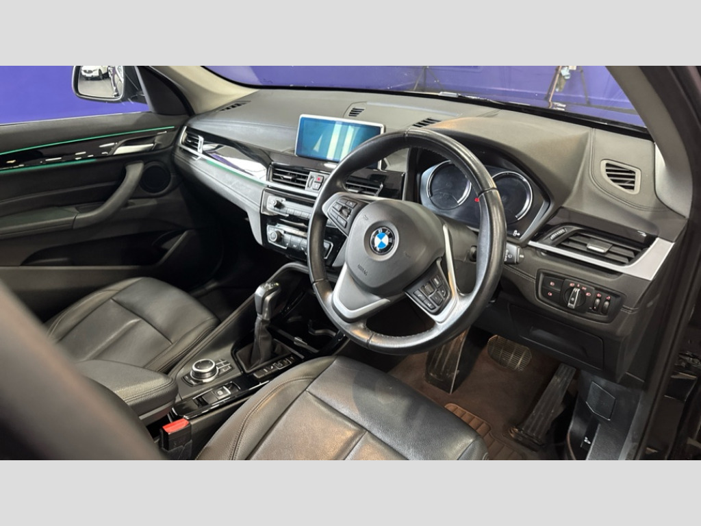 BMW X1 xDrive 25e xLine 5dr Auto Ambient temperature display, Apple CarPlay, Arrow pointers, north up, direction of travel and perspective map displays, Attentiveness assist, Automatic tailgate opening, BMW Online services, BMW Teleservices, Brake pad wear indicator in front and rear, Characteristic map controlled oil pump system, Connected eDrive Services, eDrive button activates auto eDrive, max eDrive and save battery modes, eDrive specific displays in instrument cluster and CID, Electro hydraulically controlled multi plate clutch in rear axle, Energy efficient operating strategy, Front/rear park distance control (PDC), Instrument cluster with speedometer with miles per hour read out, tachometer and fuel gauge, Integrated hard drive with map data updates via USB interface, Lights on warning by audio warning signal when ignition is switched off, On board computer, Optimum shift indicator, Outside temperature gauge, Park assist system, Personal Profile - automatic lock when driving away selectable, Real time traffic information, Rigidly mounted rear subframe - Multi link construction with separate spring / damper configuration and excellent driving characteristics, Service interval indicator, Servotronic PAS, Tyre puncture warning system, Variable and stepless distribution of drive torque between front and rear axle, 12V compressor with integrated sealant injection bottle and hose, 5 metre standard charge cable, 6 speed automatic transmission, AC Fast charge cable, Aluminium lightweight construction including crankcase, Anti-roll bars, Balancer shaft, Double VANOS, Drive performance control with ECO PRO comfort + sport mode, eDrive exterior sound, Electric engine installed under rear seats driving the rear wheels, High precision injection, Lithium-ion high voltage battery (10.0 kWh) fitted under rear seats, Performance Control, Standard suspension, Stop/start function, Transmission of power to rear axle via front axle differential and two-part cardan shaft, Turbocharger with Valvetronic, Twin tube gas filled shock absorbers with degressive characteristic curve, xDrive electric drive, after activation of the electric motor and common drive via all four wheels, BMW professional radio includes amplifier power 100w, Two mide range speakers in door trims and two woofers as central bass speaker under front seats, DAB Digital radio, Adjustable headlights, Aero curtain, Automatically dimming rear view mirror, Blue ring around BMW roundel on wheel hub/tailgate/bonnet/steering wheel, BMW Icon design LED daytime driving lights, Body colour bumpers, Body colour door handles, Body colour door mirrors, Direction indicator side lights integrated exterior mirrors, Dynamic brake lights, Electric windows - front and rear, with open/close fingertip control, anti-trap facility and comfort closing, Electrically adjustable door mirrors with aspheric on driver side, convex on passenger side with integrated indicators, Exclusive front door sill finishers with BMW designation, Exterior mirrors - electrically folding with anti-dazzle, Follow me home headlights, Front air guide finished in black silver, Front air inlets in matt black with silver finisher matt, Front and rear bumper system, Front bumper underbody protection in silver matt, Green tinted heat protection glazing glass, Headlight beam throw control, Heated door mirrors, Heated windscreen washer jets, High level third brake light, Kidney grille with 14 chrome matt aluminium fronted with black matt sides vertical bars, LED direction indicator lights in headlight eyebrow, LED front fog lights, Lightweight engineering, Model designation, Rain sensor including auto headlights activation, Rear bumper underbody protection in black silver with silver matt insert, Rear fog lights, Rear window aerial, Rear window wash/wipe, Reversing light in rear light cluster, Roof mouldings in matt black, Shark fin antenna, Side Panel Inscription, Sill cover matt black with matt silver insert, Single chrome exhaust tailpipe, Two eye face design on light, Visible VIN plate, Welcome lighting, 12v power point in centre console, 2 cup holders in front, 3 rear headrests, 3 spoke sport leather steering wheel, 40:20:40 split folding rear bench seat, Black door sill finishers with BMW designation, Boot light, Centre armrest in 20 degree part rear seat backrest, Child seat ISOFIX attachment for two outer rear seats and front passenger seat with anchorage points, Conditioned based service, Dakota leather upholstery with perforation and contrast stitching, Driver and front passenger heated seats, Driver/front passenger seat backrest back with luggage net, Driver/passenger sunvisors with ticket holders, Dual zone automatic air conditioning, Four grab handles integrated in roof linings, Front and rear side armrests integrated into door trim, Front centre armrest/sliding cover, Front centre interior light over interior mirror and rear centre automatic interior light when door is opened/ignition switched off or via remote key, Front/rear adjustable head restraints, Illuminated charging socket with visual display of charge status, Illuminated glovebox, Leather gearknob/gaiter/handbrake grip, Luggage area underfloor compartment, Luggage compartment access via recessed handle below tailgate, Luggage compartment lighting, Luggage compartment loading edge with stainless steel insert, Manually adjustment steering wheel column, Multifunction steering wheel, Pre-conditioning of battery for optimum operating temperature, Pre-conditioning of interior via BMW Remote app, Rear coded belt buckles, Standing free front adjustable armrest and fixed in different positions, Steering wheel gearshift paddles, Velour floor carpets, Extended lights pack - X1, Extended storage package - X1, ABS/EBD, Audio/visual collision warning system, Automatic Stability Control (ASC), Battery safety cut-off, BMW emergency call, Brake drying, Brake energy regeneration, Braking readiness, Cornering brake control (CBC), Crash S