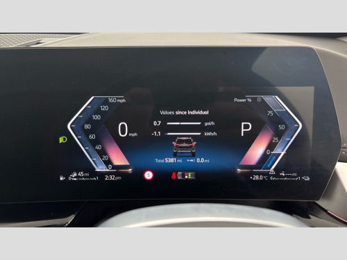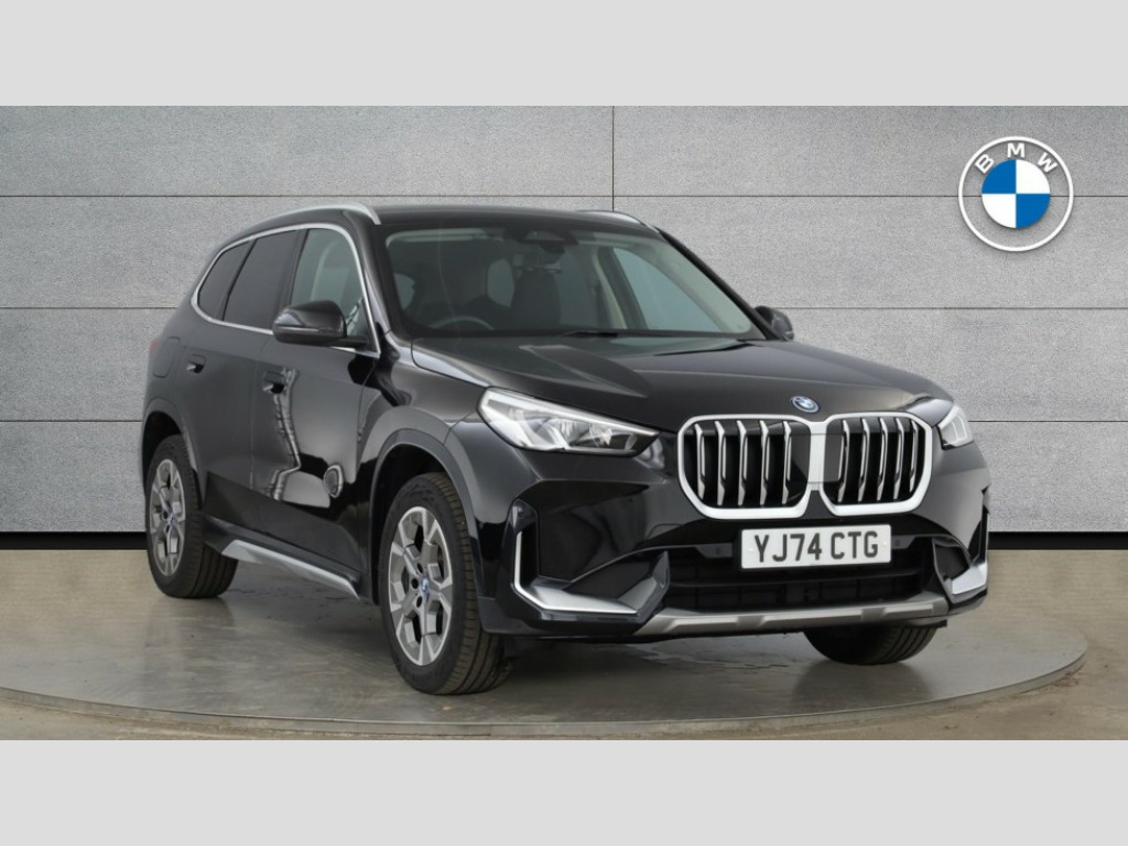 BMW X1 xDrive 25e xLine 5dr Step Auto Attentiveness assist, Automatic start/stop function, BMW Live Cockpit Plus with 10.25" instrument cluster and 10.7" display, BMW Operating system 9 with BMW Maps, real-time traffic information, in-car experiences, remote services and smartphone integration, BMW Teleservices, Brake pad wear indicator, Condition based service, Connected eDrive Services, Drive off assistant, Electrically opening/closing tailgate with opening/closing with remote control and contactless opening and closing, iDrive controller, Language version English, My Modes, Parking Assistant with Reversing Assistant, active PDC, Lateral Parking Aid, Rear View Camera and Park Distance Control, Personal Profile - automatic lock when driving away selectable, Servotronic PAS, Tyre puncture warning system, Widescreen display, eDrive exterior sound, EU6 emissions management, Fast charging cable professional mode 3 for public charging, Performance Control, Petrol Particulate Filter, Standard suspension, Steptronic transmission with double clutch, xDrive intelligent four wheel drive system, BMW Personal eSim, DAB Digital radio, Aluminium satinated roof rails, Badge on engine compartment lid and tailgate, BMW Individual aluminium satinated exterior line, Dynamic brake lights, Electric adjustable heated door mirrors, Electric windows - front and rear, with open/close fingertip control, anti-trap facility and comfort closing, Folding door handles integrated flush with surface, Follow me home headlights, Front bumper panel with air inlet in matt black, Front door exit lights, Front entry sills aluminium inserts with BMW inscription, Heated rear window, Invisible exhaust tailpipe, LED 3rd brake light integrated in rear spoiler, LED daytime running lights, LED number plate light, Mirror caps painted in contrasting colour dark grey, Radiator grille frame in aluminium matt, Radiator grille struts in aluminium matt, Rain sensor including auto headlights activation, Rear bumper panel with two L-shaped trims In pearl chrome, Rear side wing doors, Rear wiper, Roof trim strips painted in body colour, Sill cover in body colour, Trailer stabilisation logic, Windscreen washer nozzle for rear view camera, Windscreen wipers front with heated washer nozzles, 12V - Power sockets with front centre console and luggage compartment, 2 bag hooks in luggage compartment, 2 cup holders in front, 2 x USB Type C ports for charging in front centre console + 2 x USB Type C ports for charging in rear centre console, 3 rear headrests, 3 seat bench in 2nd row, 3 upper retaining strap clips integrated into rear panels of seat backrests, 40:20:40 split folding rear seats, Ambient interior lighting, Anthracite Velour front and rear floormats, Bottle trays in all doors, Child seat ISOFIX attachment for two outer rear seats and front passenger seat with anchorage points, Clothes hook rear, Driver and front passenger heated seats, Dual zone automatic air conditioning, Front and rear door pockets, Front centre console storage compartment, Front/rear adjustable head restraints, Glove compartment, Light on right in luggage compartment, Manual steering column height and depth adjustment, Middle centre console storage compartment, One piece parcel shelf opens together with tailgate and removable, Rear armrest in door trim panel, Single front passenger seat, Sport leather multifunction steering wheel with thumbrests and operation of instrument display, audio, telephone and driver assistance, Storage compartment net in left side trim panel, Storage compartment with folding cover under centre console armrest cushion, Storage tray in right side trim panel, Tilt adjustment incl. cargo function of 2nd row of seats, Trim elements on steering wheel spokes in pearl chrome, ABS/EBD, Automatic hold function, Automatic Stability Control (ASC), Black belt painted in contrasting colour dark grey, BMW emergency call, Braking readiness, Cornering brake control (CBC), Crash Sensor - activates hazard/interior lighting + unlocks doors, Driver/Front Passenger airbags, Driver/front passenger side airbags, Dry braking, Dynamic brake control, Dynamic stability control + (DSC+), Electromechanical parking brake, Energy recovery system, First aid kit, Front and rear brake discs, Front and rear head airbags, Front passenger airbag deactivation, Integrated brake system, PC iBrake PostCrash approach control warning with light braking function, Rear door child safety locks, Three point seat belts in all seats, Tyre pressure monitor, Warning triangle, Alarm system with tilt sensor, monitoring doors, bonnet interior and tailgate, Closing system with central locking, Locking wheel bolts, Luxury instrument panel, Tyre repair kit (including Tyre sealant and 12V Compressor)