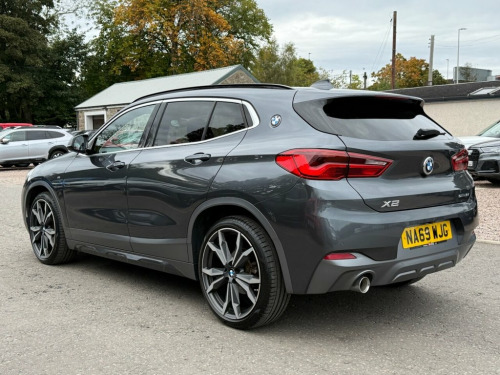 The 2019 BMW X2 1.5 18i M Sport X is a sleek and sporty compact premium SUV, designed to stand out with bold styling and engaging driving dynamics. Powered by a 1.5-litre turbocharged petrol engine producing 140 bhp, paired with a DCT automatic gearbox and sDrive (front-wheel drive), it delivers smooth, efficient performance with economy of around 45–47 mpg combined. The M Sport X trim adds a distinctive and athletic edge to the X2, featuring unique body styling with contrasting exterior details, upgraded alloy wheels, M Sport suspension, sports seats, and an M leather steering wheel. Inside, you'll find a premium cabin with BMW's iDrive infotainment system, Apple CarPlay (subscription-based on some models), navigation, dual-zone climate control, and ambient lighting. As a 5-door SUV, the X2 balances practicality with style, offering comfortable seating for passengers, a versatile boot, and a higher driving position than a hatchback while retaining a coupe-inspired design. Rivals include the Audi Q2, Mercedes-Benz GLA, Volvo XC40, and MINI Countryman, but the BMW X2 M Sport X stands out for its dynamic styling, premium build quality, and sporty driving feel. Tech Pack, 12V Power Socket in Centre Console Front, 19in Alloy Wheels - M Light Y Spoke - 72, 40-20-40 Split Folding Rear Seats with T, Active Guard, Aero Curtain, Air Conditioning Automatic with Two-Zone, Airbags, Alarm System Thatcham Category 1 with Re, Anti Roll Bars - Front and Rear, Armrest Front - Free Standing and can be, Automatic Tailgate Operation, Automatically Dimming Rear View Mirror, BMW Badge on Bonnet - Electric Bootlid w, BMW ConnectedDrive, BMW ConnectedDrive Online Services, BMW Emergency Call, BMW Navigation, BMW Professional Radio with Single CD Pl, BMW TeleServices, Battery Safety Cut Off, Bluetooth Hands Free with USB Audio Inte, Brake Energy Regeneration, Brake Pad