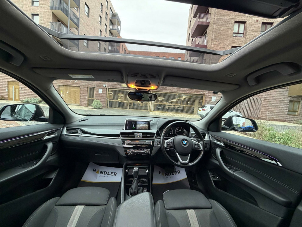 This 2021 BMW X2 25e Sport presents an exceptional opportunity with its remarkably low mileage of just 24,994 miles. This four wheel drive, Euro 6 compliant plug in hybrid model combines a 1.5 litre petrol engine with electric power, offering an efficient and dynamic driving experience. The Sport trim level enhances its appeal, while the inclusion of a panoramic glass sunroof, a heated steering wheel, and comfortable memory seats from the Comfort Pack II ensure a premium feel.Further enhancing this X2's desirability are the features found within the Technology Pack I, including LED headlights for improved visibility, a rear camera and front and rear parking sensors for effortless manoeuvring, and the convenience of Bluetooth connectivity and wireless phone charging. These carefully selected features, alongside the advanced PDC system, demonstrate a level of specification that sets this vehicle apart from others in its class, providing a refined and technologically advanced ownership experience.. 12V Power Socket in Centre Console Front with Blanking Plug, 18in Alloy Wheels - Double-Spoke Style 578, 40-20-40 Split Folding Rear Seats with Two Tilt Positions for Backrest, Active Guard, Aero Curtain, Air Conditioning Automatic with Two-Zone Control, Airbags, Alarm System Thatcham Category 1 with Remote Control and Engine Immobiliser - EWS IV, Anti Roll Bars - Front and Rear, Apple CarPlay, Armrest Front - Free Standing and can be Fixed in Five Positions, Automatic Tailgate Operation, Automatically Dimming Rear View Mirror, BMW Badge on Bonnet - Electric Bootlid with Integrated Electric Bootlid - C Pillars Both Sides, BMW ConnectedDrive, BMW ConnectedDrive Online Services, BMW Emergency Call, BMW Mobility Tyre Sealing System, BMW Navigation, BMW Professional Radio, BMW TeleServices, Battery Safety Cut Off, Bluetooth Hands Free with USB Audio Interface, Brake Pad Wear Indicator - Front and Rear, Bumper System Front and Rear - Replaceable Deformation Elements for Impacts Up to 9mph, Central Locking Switch - Doors - Fuel Filler Cap - Luggage Compartment, Check Control Warning System for Monitoring of Lights and Door-Luggage Compartment Open Warning, Child Proof Locking System - Rear Doors, Child Seat ISOFIX Attachment for the Two Outer Rear Seats and Front Passenger Seat with Anchorage Points, Condition Based Service, Connected eDrive Service, Contrast Stitching on Centre Console - Mid Section of Dashboard to Match Upholstery Seam, Crash Sensor, Cruise Control with Brake Function, Cup Holders - Two in Front Centre Console - Two in Rear, DAB Digital Radio, DSC - Dynamic Stability Control Plus, Dash Top Finished in Black with Decorative Stitching Line on Upper Section, Direction Indicator Lights - Clear Lenses, Direction Indicator Side Lights Integrated in Exterior Mirrors - LED, Door Sill Finishers - BMW Designation - Front - Black, Drive Performance Control with ECO PRO - Comfort and Sport Modes, Dynamic Brake Lights, EDLC - Electronic Differential Lock Control, Electric Windows - Front and Rear with Open-Close Fingertip Control - Anti-Trap Facility and Rear Window Child Lock, Electrically Operated Parking Brake with Automatic Drive Release, Engine Designation on Tailgate - Right, Exhaust Tailpipe 90mm - Chrome Twin - Round - Left and Right - Split, Extended Storage, Exterior Bodystyling, Exterior Mirrors - Heated - Electrically Adjustable, Exterior Parts in Body Colour, Exterior Trim - High-Gloss Shadowline, First Aid Kit and Warning Triangle, Floor Mats with Contrasting Surround to Match Stitching on Dashboard and Centre Console, Glove Box with Light, Heat Protection Glazing with Green Tint, Heated Windscreen Washer Jets, High Gloss Black Centre Console Trim, High Level Third Brake Light, Incorrect Fuelling Protection System, Instrument Cluster with Black Optic Display - 5.7in Colour Display, Interior Lighting - Front Centre Over Interior Mirror and Rear Centre, Interior Trim - High-Gloss Black with Pearl Chrome Finisher, Kidney Grille - Chrome with 16 High Gloss Black Vertical Bars, LED Contour Line in Upper Door Trim - with 6 Switchable Colours, LED Headlights with Extended Contents, Lights-On Warning by Audio Warning Signal When Ignition is Switched Off, Locking Wheel Bolts, Luggage Compartment - Light, Luggage Compartment Loading Edge with Stainless Steel Insert, Luggage Compartment Underfloor Storage and Four Lashing Eyes, Model Designation on Tailgate - Left, Multi Collision Braking System, Multifunction Controls for Steering Wheel, OBC - On-Board Computer, Optimum Shift Indicator, PDC - Park Distance Control - Front and Rear, Park Assist, Performance Control, Personal Profile, Power Steering - Electric, Rain Sensor with Automatic Headlight Activation, Real Time Traffic Information, Rear Fog Light, Rear Seat Headrests - Three, Rear Taillights - LED - 3D Icon Design, Rear Window Aerial, Rear Window Wiper with Wash-Wipe System, Remote Control Including Integrated Key - 2, Reversing Light in Rear Light Clusters, Seat Bel. Full service history