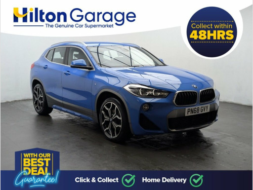 Navigation, Heated seats, Apple CarPlay, Cruise control and Bluetooth. Last service done on 34165 miles on 27/09/2024. This 2018 BMW X2 18d M Sport X presents an exceptional opportunity with its remarkably low mileage of just 41,373 miles. As a Euro 6 compliant model, this 2.0L diesel engine offers an impressive fuel economy of 50 mpg, making it an economical choice. The vehicle boasts a clear history check, assuring you of its sound provenance. Inside, you'll find the refined M Sport X trim, featuring perforated Dakota leather upholstery in black with striking grey stitching, complemented by a sleek black interior. Further enhancing your driving experience, this BMW X2 includes practical features such as rear Park Distance Control with parking assistance, ensuring effortless manoeuvring. Automatic dual zone climate control and a rain sensor with automatic headlight activation provide added comfort and convenience. Stay connected on the go with the integrated Bluetooth hands free system and USB audio interface. The low CO2 emissions further highlight this X2's efficiency, setting it apart from many other vehicles in its class. 12V Power Socket - Passenger Footwell, 12V Power Socket in Centre Console Rear , 19in Alloy Wheels - M Light Y Spoke - 72, 40-20-40 Split Folding Rear Seats with T, Active Guard, Aero Curtain, Air Conditioning Automatic with Two-Zone, Airbags, Alarm System Thatcham Category 1 with Re, Anti Roll Bars - Front and Rear, Armrest Front - Free Standing and can be, Automatic Tailgate Operation, Battery Safety Cut Off, Bluetooth Hands Free with USB Audio Inte, BMW Badge on Bonnet - Electric Bootlid w, BMW ConnectedDrive, BMW ConnectedDrive Online Services, BMW Emergency Call, BMW Navigation, BMW Professional Radio with Single CD Pl, BMW TeleServices, Brake Pad Wear Indicator - Front and Rea, Bumper