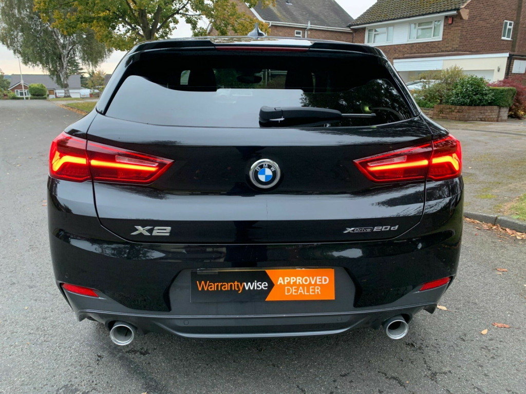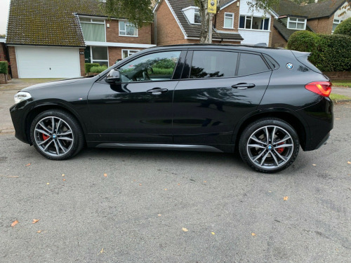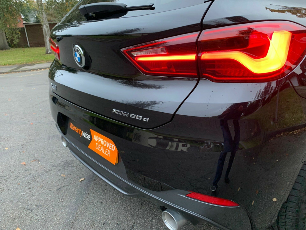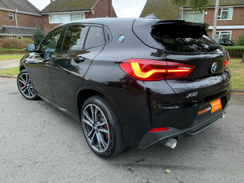 This 2018 BMW X2 20d M Sport is presented in excellent condition, having had only one owner from new and boasting a full dealership service history. This Euro 6 compliant model features a powerful yet efficient 2.0L diesel engine paired with BMW's renowned four wheel drive system, ensuring confident handling in all conditions. The M Sport trim enhances its sporty appeal, complemented by 19 inch M Light Double Spoke 715M alloy wheels fitted with performance tyres. For your peace of mind, the vehicle history check is clear and it comes with a 12 month warranty.Experience a superior drive with the included Tech Pack, which offers convenient Bluetooth connectivity, an informative Head Up Display, and wireless phone charging. The M Sport Plus Pack adds a premium branded sound system for an enhanced audio experience, while the M Sports steering and adaptive suspension contribute to its dynamic driving characteristics. This BMW X2 achieves an impressive fuel economy of 49 miles per gallon and boasts low CO2 emissions. Its acceleration is also noteworthy, reaching 0 to 62 miles per hour in just 7.7 seconds, demonstrating its strong performance capabilities compared to similar vehicles. ple carplay, tech pack, interior trim - aluminium hexagon anthracite, m sport plus pack, m sports steering, adaptive suspension, sun protection glazing, 19in alloy wheels - m light double spoke - 715m with performance tyres, 12v power socket in centre console front with blanking plug, 19in alloy wheels - m light double spoke - 715m with run flat tyres, 40-20-40 split folding rear seats with two tilt positions for backrest, active guard, aero curtain, air conditioning automatic with two-zone control, airbags, alarm system thatcham category 1 with remote control and engine immobiliser - ews iv, anti roll bars - front and rear, armrest front - free standing and can be fixed in five positions, automatic tailgate, bmw badge on bonnet - tailgate with integrated tailgate release - c pillars both sides, bmw connecteddrive, bmw emergency call, bmw navigation, bmw online services, bmw professional radio with single cd player - with mp3 playback compatibility, bmw teleservices, battery safety cut off, bluetooth hands free with usb audio interface, brake pad wear indicator - front and rear, bumper system front and rear - replaceable deformation elements for impacts up to 9mph, central locking switch - doors - fuel filler cap - luggage compartment, check control warning system for monitoring of lights and door-luggage compartment open warning, child proof locking system - rear doors, child seat isofix attachment for the two outer rear seats and front passenger seat with anchorage points, condition based service, contrast stitching on centre console - mid section of dashboard to match upholstery seam, crash sensor, cruise control with brake function, cup holders - two in front centre console - two in rear, dab digital radio, dsc - dynamic stability control plus, dash top finished in black with decorative stitching line on upper section, direction indicator lights - clear lenses, direction indicator side lights integrated in exterior mirrors - led, door sill finishers - m designation - front, drive performance control - eco pro - comfort - sport - sport plus modes, dynamic brake lights, edlc - electronic differential lock control, electric windows - front and rear with open-close fingertip control - anti-trap facility and rear window child lock, electrically operated parking brake with automatic drive release, engine designation on tailgate - right, exhaust tailpipe 90mm - chrome twin - round - left and right - split, extended storage, exterior mirrors - heated - electrically adjustable, exterior parts in body colour, exterior trim - high-gloss shadowline, first aid kit and warning triangle, floor mats - velour, floor mats with contrasting surround to match stitching on dashboard and centre console, glove box with light, headlining - anthracite, heat protection glazing with green tint, heated windscreen washer jets, high gloss black centre console trim, high level third brake light, incorrect fuelling protection system, instrument cluster with black optic display - 5.7in colour display, interior lighting - front centre over interior mirror and rear centre, interior trim - aluminium hexagon with estoril blue finisher, kidney grille - chrome with 16 high gloss black vertical bars, led ambient lighting in upper door trim and dashboard trim, led fog lights - front, led headlights with extended contents, launch control, lights-on warning by audio warning signal when ignition is switched off, locking wheel bolts, luggage compartment - light, luggage compartment loading edge with stainless steel insert, luggage compartment underfloor storage and four lashing eyes, m logo designation chrome - side, m rear spoiler, m sport aerodynamic package, m sport steering wheel, model designation on tailgate - left, multi collision braking system, multifunction controls for steering wheel, obc - on-board computer, optimum shift indicator, pdc - park distance control - rear, performance control, personal profile, power steering - electric, rain sensor with automatic headlight activation, real time traffic information, rear fog light, rear seat headrests - three, rear taillights - led - 3d icon design, rear window aerial, rear window wiper with wash-wipe system, remote control with integrated key with m specific highlight, remote services, reversing light in rear light clusters, seat belt security check for driver and front passenger, seat heating for driver and front passenger, seats - front - manual height adjustment, servotronic, shark fin, side armrests - front and rear integrated into door trim, side impact protection, sport seats - front, start-stop button with comfort go keyless engine start and auto start-stop deactivation button, steering column with manual reach and rake adjustment, steering wheel - gearshift paddles, sun visors with vanity 