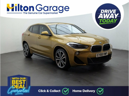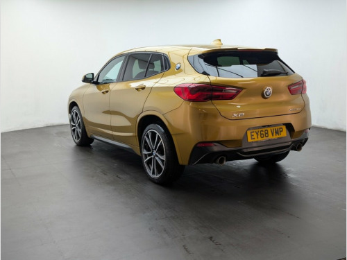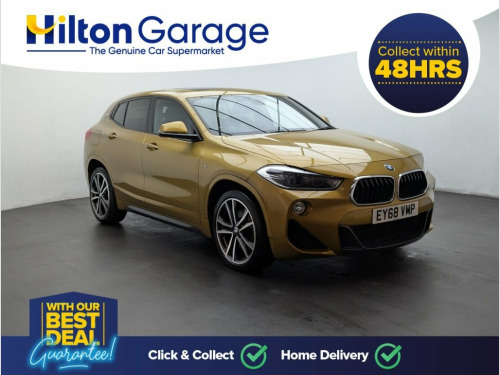 Stylish BMW X2 in Gold with Galvanic Gold - Panoramic Roof - Sun Protection Glazing - Perforated Dakota Leather - Black with Grey Stitching with Black Interior - Driver Pack - Tech Pack - PDC - Park Distance Control - Front and Rear - Seat Heating for Driver and Front Passenger 4 Services, last serviced 09/10/2025 at 55k This 2018 BMW X2 20d M Sport boasts an MOT valid until October 2026, offering excellent peace of mind for the new owner. This stylish M Sport variant features a powerful yet efficient 2.0L diesel engine, paired with a smooth four wheel drive system for confident handling in all conditions. As a Euro 6 compliant vehicle, it meets stringent emission standards, contributing to a cleaner environment. Experience impressive performance with a 0-60mph acceleration time of just 7.7 seconds, demonstrating the X2's dynamic capabilities. This model also achieves an excellent fuel economy of 48 mpg, making it a cost effective choice for both city driving and longer journeys. Its low CO2 emissions further enhance its appeal as an economical and environmentally conscious option within its class. 12V Power Socket in Centre Console Front, 19in Alloy Wheels - M Light Double Spoke, 40-20-40 Split Folding Rear Seats with T, Active Guard, Aero Curtain, Air Conditioning Automatic with Two-Zone, Airbags, Alarm System Thatcham Category 1 with Re, Anti Roll Bars - Front and Rear, Armrest Front - Free Standing and can be, Automatic Tailgate Operation, Battery Safety Cut Off, Bluetooth Hands Free with USB Audio Inte, BMW Badge on Bonnet - Electric Bootlid w, BMW ConnectedDrive, BMW ConnectedDrive Online Services, BMW Emergency Call, BMW Navigation, BMW Professional Radio with Single CD Pl, BMW TeleServices, Brake Pad Wear Indicator - Front and Rea, Bumper System Front and Rear - Replaceab, Cent