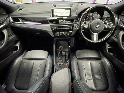 Driven Of York Are Proud To Present This 2018 18 BMW X2 20d X-Drive M-Sport Presented In Stunning Misano Blue With Complimenting Black Dakota Leather Interior With Blue Stitching. This Hi Spec Example Features Over £5K Worth Of Optional Extras Including The M-Sport Plus Package With 20" M-Sport Alloy Wheels, M Sport Aerodynamic Body Styling, High-Gloss Shadowline Exterior Trim, M Sport-Steering Wheel And M-Sport Suspension. This Amazing Vehicle Also Features A Wider 8-inch Touchscreen With WIFI Hotspot, SAT NAV, Bluetooth And USB Connectivity. A Harman/Kardon Sound System, Automatic LED Headlights With Daytime Running, Front And Rear Parking Sensors, Air Conditioning With Dual Zone Climate Control And Front Heated Seats, Keyless GO! Power Tailgate, Multifunction Steering Wheel With Automatic F1 Style Paddleshift Gearbox, Cruise Control With Limiter And Colour Adaptive Ambient Lighting! This Stunning Example Also Comes With Great Service History! Reserve Now For Just £149! 12V Power Socket - Passenger Footwell, 12V Power Socket in Centre Console Rear , 19in Alloy Wheels - M Light Double Spoke, 40-20-40 Split Folding Rear Seats with T, Active Guard, Aero Curtain, Air Conditioning Automatic with Two-Zone, Airbags, Alarm System Thatcham Category 1 with Re, Anti Roll Bars - Front and Rear, Armrest Front - Free Standing and can be, Automatic Tailgate Operation, BMW Badge on Bonnet - Electric Bootlid w, BMW ConnectedDrive, BMW ConnectedDrive Online Services, BMW Emergency Call, BMW Navigation, BMW Professional Radio with Single CD Pl, BMW TeleServices, Battery Safety Cut Off, Bluetooth Hands Free with USB Audio Inte, Brake Pad Wear Indicator - Front and Rea, Bumper