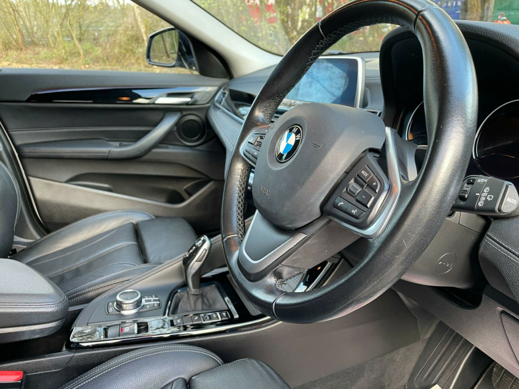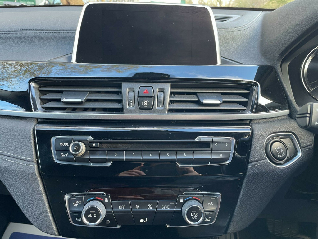 THIS STUNNING BMW X2 COMES WITH FEATURES INCLUDING FRONT AND REAR PARKING SENSORS, SATELLITE NAVIGATION, CRUISE CONTROL, DUAL ZONE CLIMATE CONTROL, DAB RADIO, BLUETOOTH, AN ELECTRIC TAILGATE, ELECTRIC FRONT AND REAR WINDOWS, ELECTRIC DOOR MIRRORS AND A FULL LEATHER INTERIOR WITH FRONT AND REAR ISOFIX.. 12V Power Socket - Passenger Footwell, 12V Power Socket in Centre Console Rear with Blanking Plug, 18in Alloy Wheels - Light Double Spoke Style 567, 40-20-40 Split Folding Rear Seats with Two Tilt Positions for Backrest, Active Guard, Aero Curtain, Air Conditioning Automatic with Two-Zone Control, Airbags, Alarm System Thatcham Category 1 with Remote Control and Engine Immobiliser - EWS IV, Anti Roll Bars - Front and Rear, Armrest Front - Free Standing and can be Fixed in Five Positions, Automatic Tailgate Operation, BMW Badge on Bonnet - Electric Bootlid with Integrated Electric Bootlid - C Pillars Both Sides, BMW ConnectedDrive, BMW ConnectedDrive Online Services, BMW Emergency Call, BMW Mobility Tyre Sealing System, BMW Navigation, BMW Professional Radio with Single CD Player - with MP3 Playback Compatibility, BMW TeleServices, Battery Safety Cut Off, Bluetooth Hands Free with USB Audio Interface, Brake Pad Wear Indicator - Front and Rear, Bumper System Front and Rear - Replaceable Deformation Elements for Impacts Up to 9mph, Central Locking Switch for All Doors - Fuel Filler Cap - Luggage Compartment, Check Control Warning System for Monitoring of Lights and Door-Luggage Compartment Open Warning, Child Proof Locking System - Rear Doors, Child Seat ISOFIX Attachment for the Two Outer Rear Seats and Front Passenger Seat with Anchorage Points, Condition Based Service, Contrast Stitching on Centre Console - Mid Section of Dashboard to Match Upholstery Seam, Crash Sensor, Cruise Control with Brake Function, Cup Holders - Two in Front Centre Console - Two in Rear, DAB Digital Radio, DSC - Dynamic Stability Control Plus, Dash Top Finished in Black with Decorative Stitching Line on Upper Section, Direction Indicator Lights - Clear Lenses, Direction Indicator Side Lights Integrated in Exterior Mirrors - LED, Door Sill Finishers - BMW Designation - Front - Black, Drive Performance Control - ECO PRO - Comfort - Sport - Sport Plus, Dynamic Brake Lights, ECO PRO Mode, EDLC - Electronic Differential Lock Control, Electric Windows - Front and Rear with Fingertip Control - Anti Trap - Child Lock, Electrically Operated Parking Brake with Automatic Drive Release, Engine Designation on Tailgate - Right, Exhaust Tailpipe 90mm - Chrome Twin - Round - Left and Right - Split, Extended Storage, Exterior Bodystyling, Exterior Mirrors - Heated - Electrically Adjustable, Exterior Parts in Body Colour, Exterior Trim - High-Gloss Shadowline, First Aid Kit and Warning Triangle, Floor Mats - Velour, Floor Mats with Contrasting Surround to Match Stitching on Dashboard and Centre Console, Glove Box with Light, HDC - Hill Descent Control, Heat Protection Glazing with Green Tint, Heated Windscreen Washer Jets, High Gloss Black Centre Console Trim, High Level Third Brake Light, Incorrect Fuelling Protection System, Instrument Cluster with Black Optic Display - 5.7in Colour Display, Interior Lighting - Front Centre Over Interior Mirror and Rear Centre, Interior Trim - High-Gloss Black with Pearl Chrome Finisher, Kidney Grille - Chrome with 16 High Gloss Black Vertical Bars, LED Ambient Lighting in Upper Door Trim and Dashboard Trim, LED Fog Lights - Front, LED Headlights with Extended Contents, Launch Control, Lights-On Warning by Audio Warning Signal When Ignition is Switched Off, Locking Wheel Bolts, Luggage Compartment - Light, Luggage Compartment Underfloor Storage and Four Lashing Eyes, Model Designation on Tailgate - Left, Multi Collision Braking System, Multifunction Controls for Steering Wheel, OBC - On-Board Computer, Optimum Shift Indicator, PDC - Park Distance Control - Rear, Performance Control, Personal Profile, Rain Sensor with Automatic Headlight Activation, Real Time Traffic Information, Rear Fog Light, Rear Seat Headrests - Three, Rear Taillights - LED - 3D Icon Design, Rear Window Aerial, Rear Window Wiper with Wash-Wipe System, Remote Control Including Integrated Key - 2, Remote Services, Reversing Light in Rear Light Clusters, Seat Belt Se.