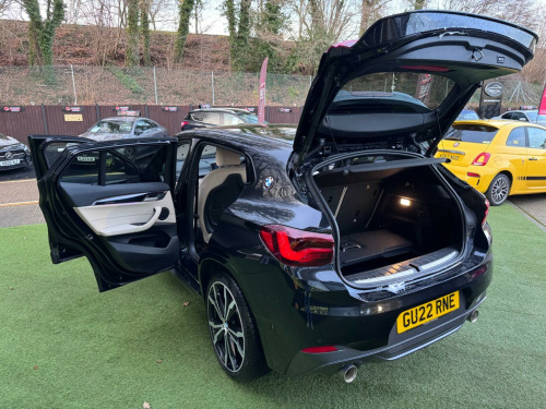 6 months or 12 months warranty available on this car. Finance available subject to status. One Former KeeperHeated Front SeatsRear CameraWireless Phone ChargerBluetooth & AudioCruise Control & Speed LimiterTouch ScreenPro NavSelectable Interior Ambient LightingFlappy PaddlesDigital Dual Zone Climate Controlled Air ConFront & Rear Parking SensorsKeyless StartSelectable Driving ModesVehicle Tracking - Connected DrivePower BootImmobiliserAlarmAuto BMW LED HeadlightsIsofixSpeed Limit Assist - Speed WarningMulti Functional Steering WheelDAB/FM RadioPASRear SpoilerAuto WipersTraction ControlDriver's Electric Memory SeatElectric & Power Folding Door MirrorsChain No Cambelt16VUsb InTwin Air BagsSide Air BagsAuto Dim Rear View MirrorAero WipersRemote Central LockingRear HeadrestsAuxiliary VentilationElectric WindowsFront FogsFront Centre ArmrestRun Flat Tyres This 2022 BMW X2 20i M Sport presents a remarkable opportunity with its exceptionally low mileage of just 21,732 miles. This Euro 6 compliant model boasts a powerful 2.0 litre petrol engine, delivering an impressive 0-62mph acceleration in only 7.6 seconds. The M Sport trim enhances its dynamic appeal, complemented by striking 20 inch M Light Double Spoke 716M alloy wheels fitted with run flat tyres.Further enhancing your driving experience, this X2 is equipped with the Comfort Pack II, which includes keyless entry, memory seats, and a heated steering wheel for ultimate convenience. The Technology Pack I adds seamless Bluetooth connectivity, advanced LED headlights, a rear-view parking camera, and wireless phone charging. Enjoy a consistently comfortable cabin thanks to the automatic two zone climate control, and further enhance those cold mornings with the front heated seats. These features collectively demonstrate how this BMW X2 offers a superior driving experience compared to other vehicles in its class.. One Former Keeper, Heated Front Seats, Rear Camera, Wireless Phone Charger, Bluetooth & Audio, Cruise Control & Speed Limiter, Touch Screen, Pro Nav, Selectable Interior Ambient Lighting, Flappy Paddles, Digital Dual Zone Climate Controlled Air Con, Front & Rear Parking Sensors, Keyless Start, Selectable Driving Modes, Vehicle Tracking - Connected Drive, Power Boot, Immobiliser, Alarm, Auto BMW LED Headlights, Isofix, Speed Limit Assist - Speed Warning, Multi Functional Steering Wheel, DAB/FM Radio, PAS, Rear Spoiler, Auto Wipers, Traction Control, Driver's Electric Memory Seat, Electric & Power Folding Door Mirrors, Chain No Cambelt, 16V, Usb In, Twin Air Bags, Side Air Bags, Auto Dim Rear View Mirror, Aero Wipers, Remote Central Locking, Rear Headrests, Auxiliary Ventilation, Electric Windows, Front Fogs, Front Centre Armrest, Run Flat Tyres, 20in Alloy Wheels - M Light Double Spoke - 716M with Run Flat Tyres, Perforated Dakota Leather - Oyster with Grey Stitching with Black Interior, Technology Pack I, Comfort Pack II, Interior Trim - High-Gloss Black with Pearl Chrome Finisher, Sun Protection Glazing.